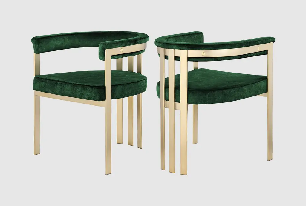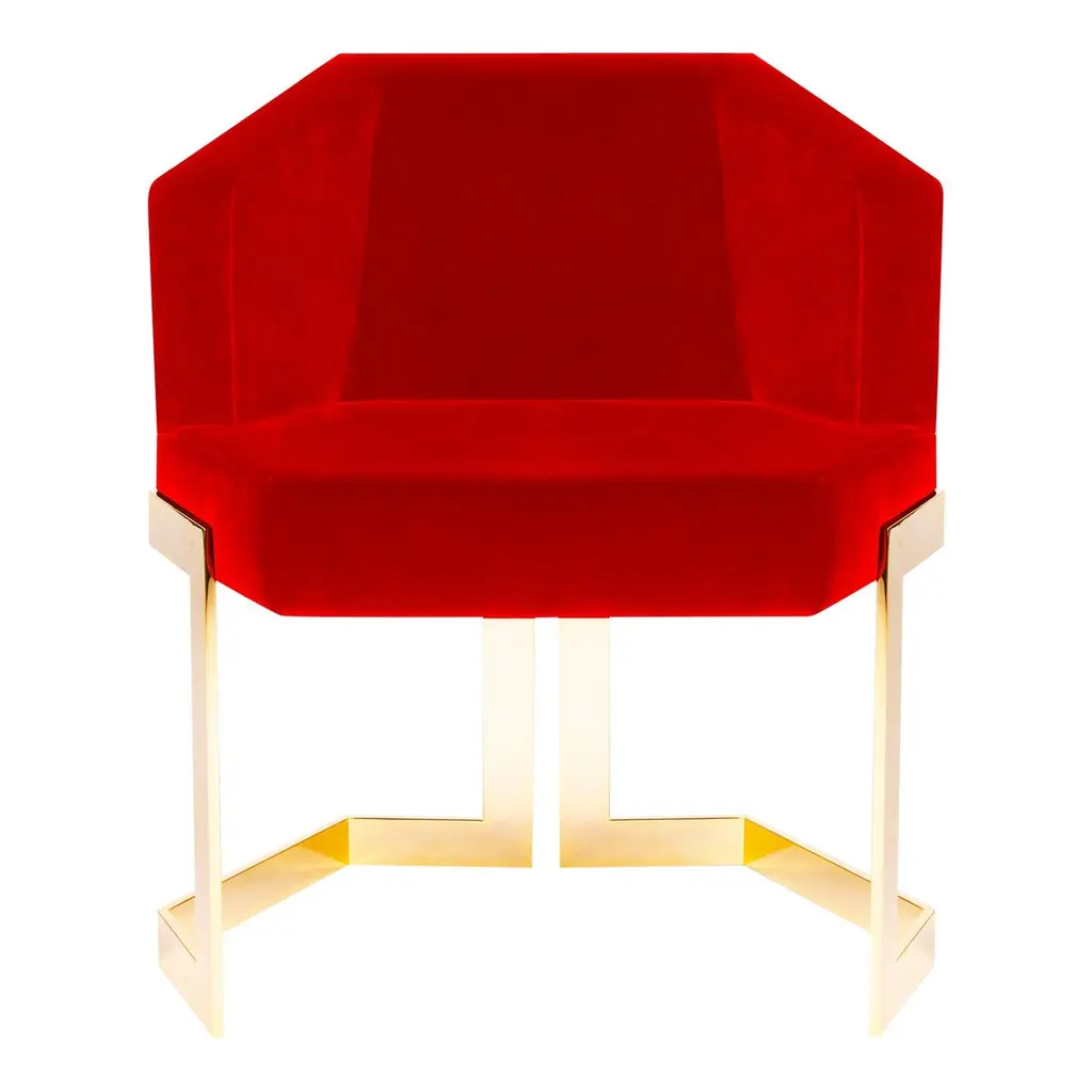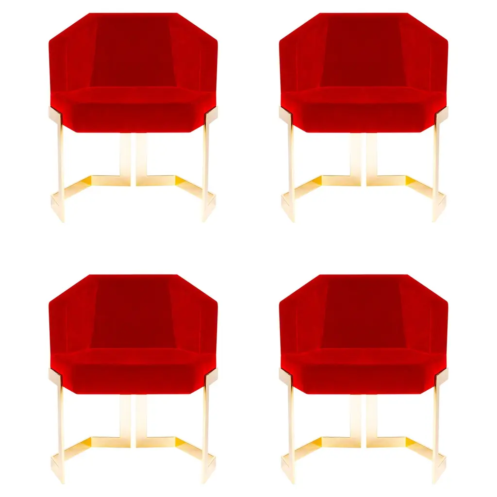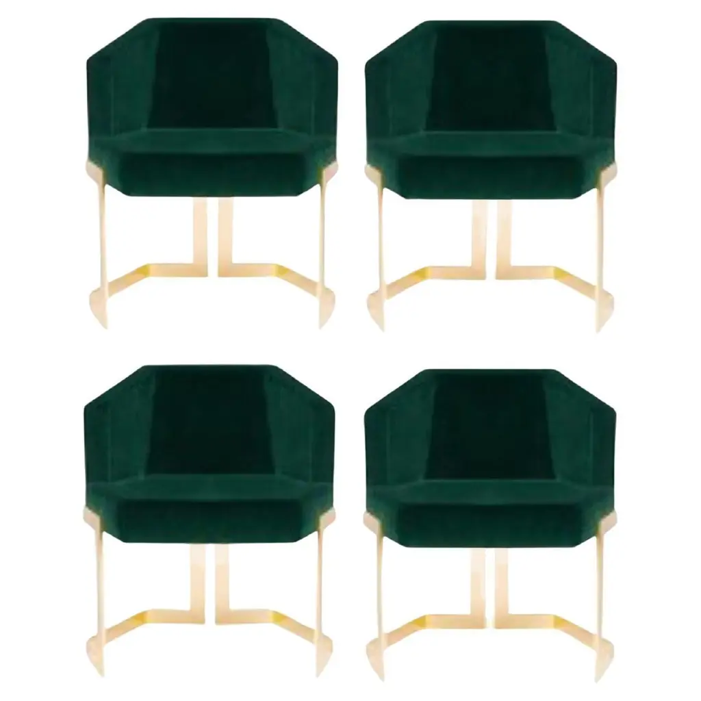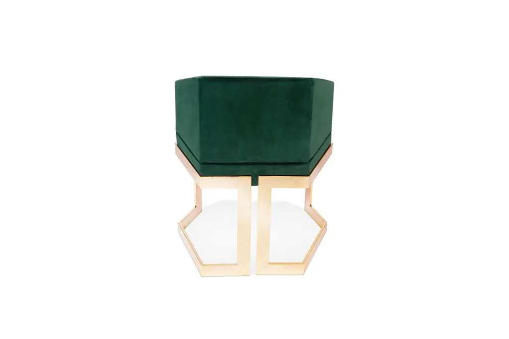 Set of 2 The hive dining chairs, Royal StrangerDimensions: 65.5 x 55 x 79 cm.Materials: Velvet. Legs polished brass.A chair with an extremely luxurious vision. The Hive chair, as the name implies, is strong and robust in nature, its hexagonal shape gives it a unique and clear design that is simple but careful and very attentive to detail.Royal Stranger is an exclusive furniture brand determined to bring you the best unique pieces of art and design.Fusing design, art and the best craftsmanship, they strive to deliver the best state of the handmade art furniture. The design team works every day to create meaningful products that represent values such as passion, function, aesthetics and know-how. Values that are meant to represent Royal Stranger’s DNA. This dedication is present at all stages of production and the combination of craftsmanship and innovative design contributes toour final purpose: to produce certified high-quality products, made with passion and expertise and using royal materials such as gold leaf, rich woods and high quality lacquers.It was in 2013, as an architects, that Sofia Santos & Rui Santos started to push the boundaries of innovation in several retail design concepts for some of the best stores in Portugal. This will has always been present in their work, and that’s how the brand was born.