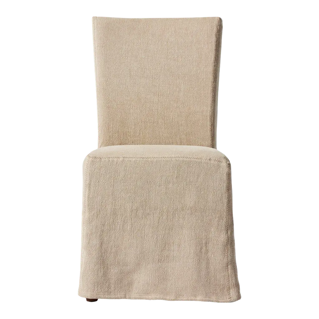 Set Of 2 Upholstered Skirted Parson Dining Side Chairs, Light Khaki