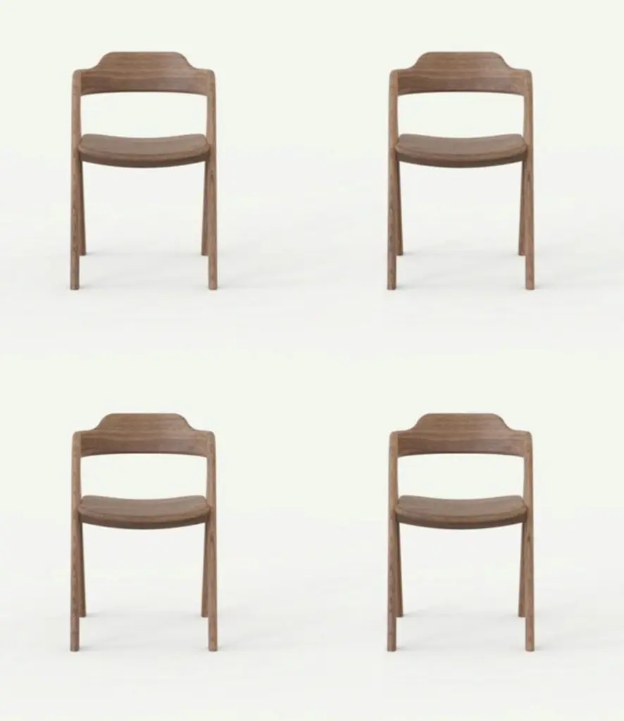 Set of 4 balance chairs by Sebastián AngelesMaterial: WalnutDimensions: W 40 x D 40 x 100 cmAlso available: Other colors availableThe love of processes, the properties of materials, details and concepts make Dorica Taller a study not only of products, but of experiences.We have the need to create unique pieces worked in detail, Dórica are Sebastián Angeles (Founding Partner) dedicated to creative direction and product design, and Sergio Morales (Founding Partner) in charge of manufacturing processes and product development, together they achieve a team that creates objects with a strong conceptual backgroundEach piece of the sensible collection is designed under the following manifesto, with the main idea that aesthetics is not a science but a sensation.Sebastián AngelesMexican Industrial Designer graduated from Universidad Anáhuac Mexico, currently serves as Creative Director of Dórica (Mexican Furniture Firm), but has collaborated with important brands and companies. His professional development began prematurely, so his career seems to be advanced for his age (26). Sebastián is currently the youngest designer to collaborate with Breuer (Trasiego 2020) and the Mexican brand Pirwi, (Desierto Collection, Nominated for Iconos del Diseño 2019 by Architectural Digest) and is signaled as a design promise by media such as Excélsior, Archdaily and Reforma.His work as a designer has led the brand Dórica to national and international exhibitions such as Designweek Mexico, AMD and Wanted Design in New York. Sebastián is part of Mass Collective (a creative union dedicated to experimentation), which has exhibited his work at the Tamayo Museum and at Ventura Futura in Milan. In his stage as a student Sebastian, was part of different calls, reaching the podiums of the most important competitions in the country. Dimueble 2016 (finalist) Dimueble 2017 (first place) A! Furniture Design (Silver) Ahec Design Awards Chair (2nd place). Sebastian’s design philosophy is very clear, and his products are characterized by having a strong conceptual background.