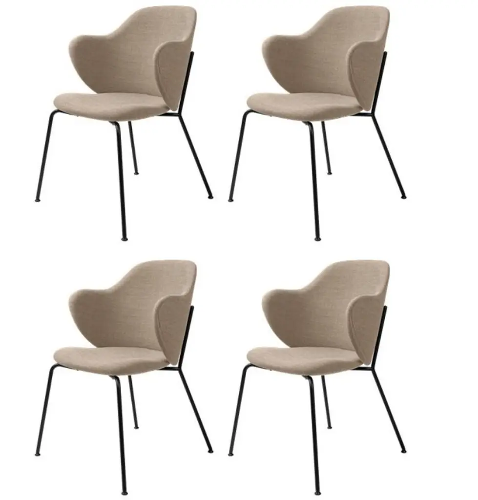 Set of 4 beige Fiord Lassen chairs by LassenDimensions: W 58 x D 60 x H 88 cm Materials: textileThe Lassen chair by Flemming Lassen, Magnus Sangild and Marianne Viktor was launched in 2018 as an ode to Flemming Lassen’s uncompromising approach and special feel for detail, aesthetics, quality and form. The upholstered seat and back is placed on a geometric frame in powder-coated black metal and the dining chair embraces one’s body, letting you sit comfortably for hours on end.By Lassen is a Danish design brand focused on iconic designs created by Mogens and Flemming Lassen, founded by Lassens’ relatives in 2008. Brothers Mogens (1901-1987) and Flemming (1902-1984) Lassen are known as two of Denmark’s greatest architects and designers. Both were renowned pioneers of Danish functionalism and modernist architecture, honoured with numerous prestigious medals and awards. Headed by Mogens Lassen’s grandson Søren Lassen, By Lassen carries on the brothers’ design philosophy by manufacturing their iconic designs as well as products by other designers that complement the Lassen’s functionalist style. The company’s mission is to continue the tradition of timelessness, functionality and quality, and to introduce the Lassen’s design heritage to new generations.