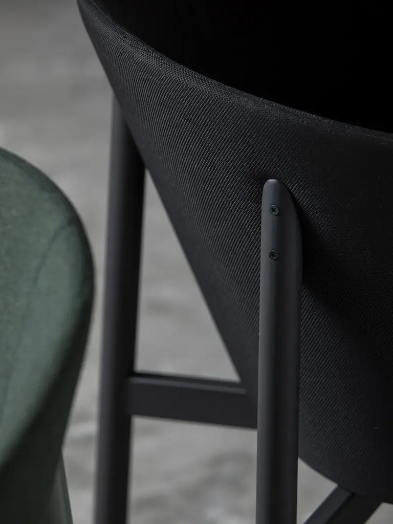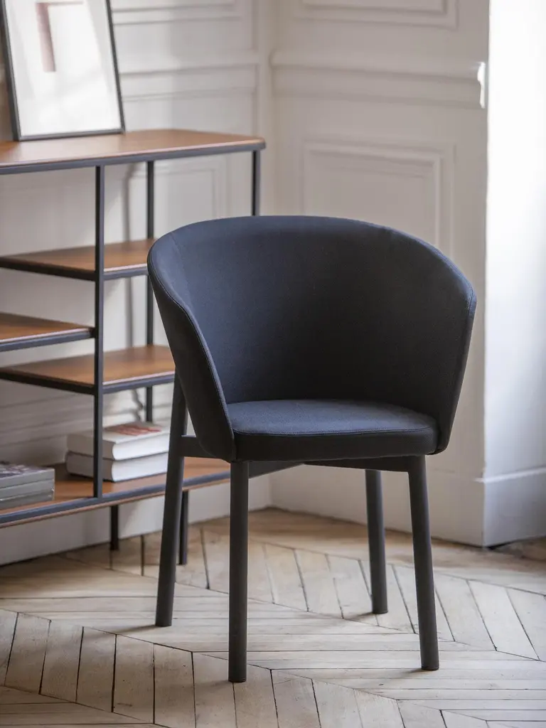 Set of 4 Black Residence Bridge Armchair by Kann DesignDimensions: D 52 x W 59.5 x H 80 cm.Materials: Steel tube, HR foam, fabric upholstery Kvadrat Relate 191 (100% Trevira).Available in other fabrics.All of the Residence seats were created by designer Jean Couvreur. They were all initially designed for the refitting of the workshops of the Ministry of Culture at the Cité Internationale des Arts.With its enveloping shape and generous seating, the Bridge armchair offers great comfort.Founded in 2010, Kann Design is a furniture-making brand that brings together the know-how of the Kanaan workshop and the talents of independent designers. Kann’s adventure is above all a family story: what distinguishes it from the rest is the skilled work of the craftsmen of Kanaan, a collective founded in 1958 in Beit Chabab, Lebanon, by the father of Houssam, the founder of Kann Design, himself a cabinetmaker.Since its creation, the studio has shown and gained great skills in cabinetmaking, painting, tapestry, and welding, and since 2017, thanks to Houssam’s brother, Samer Kanaan, the workshops have been modernized and expanded to accommodate Kann’s ever-more ambitious projects, particularly customized orders for specific projects carried out in collaboration with architects.
