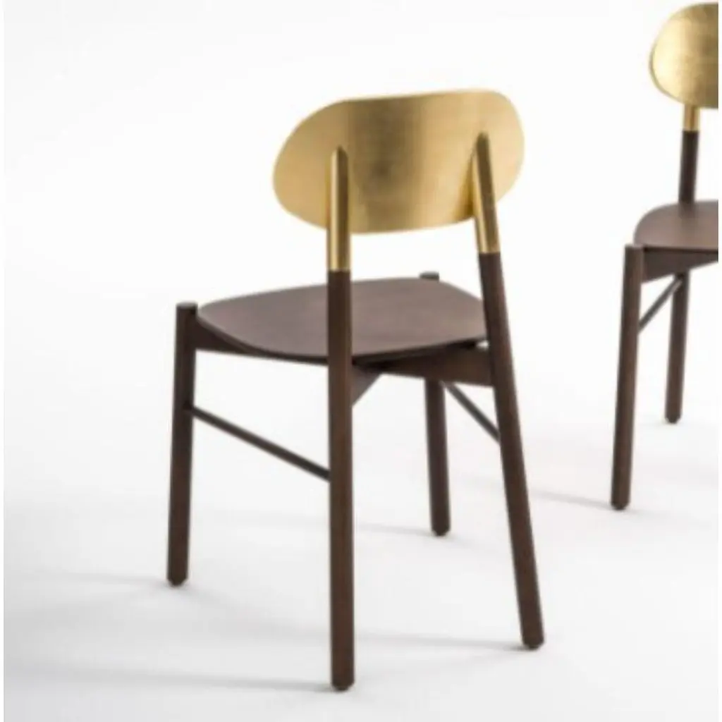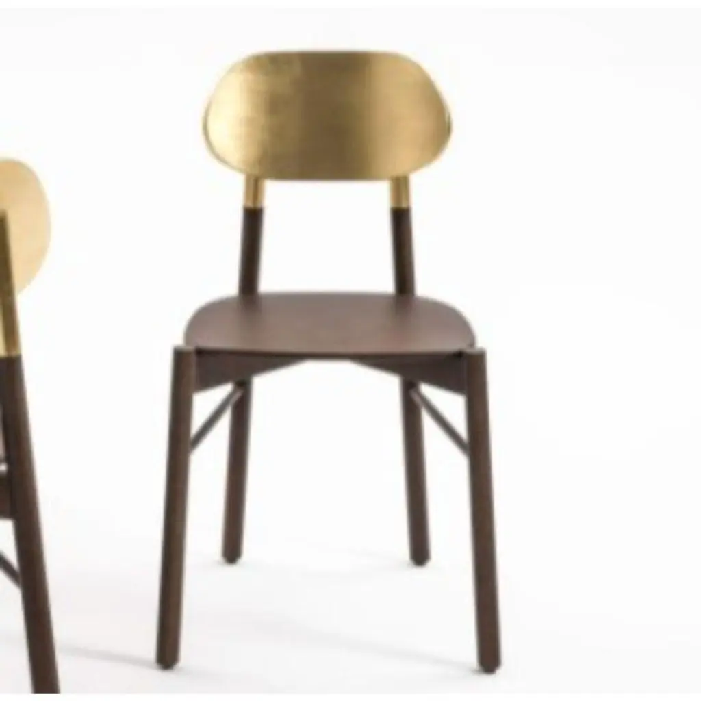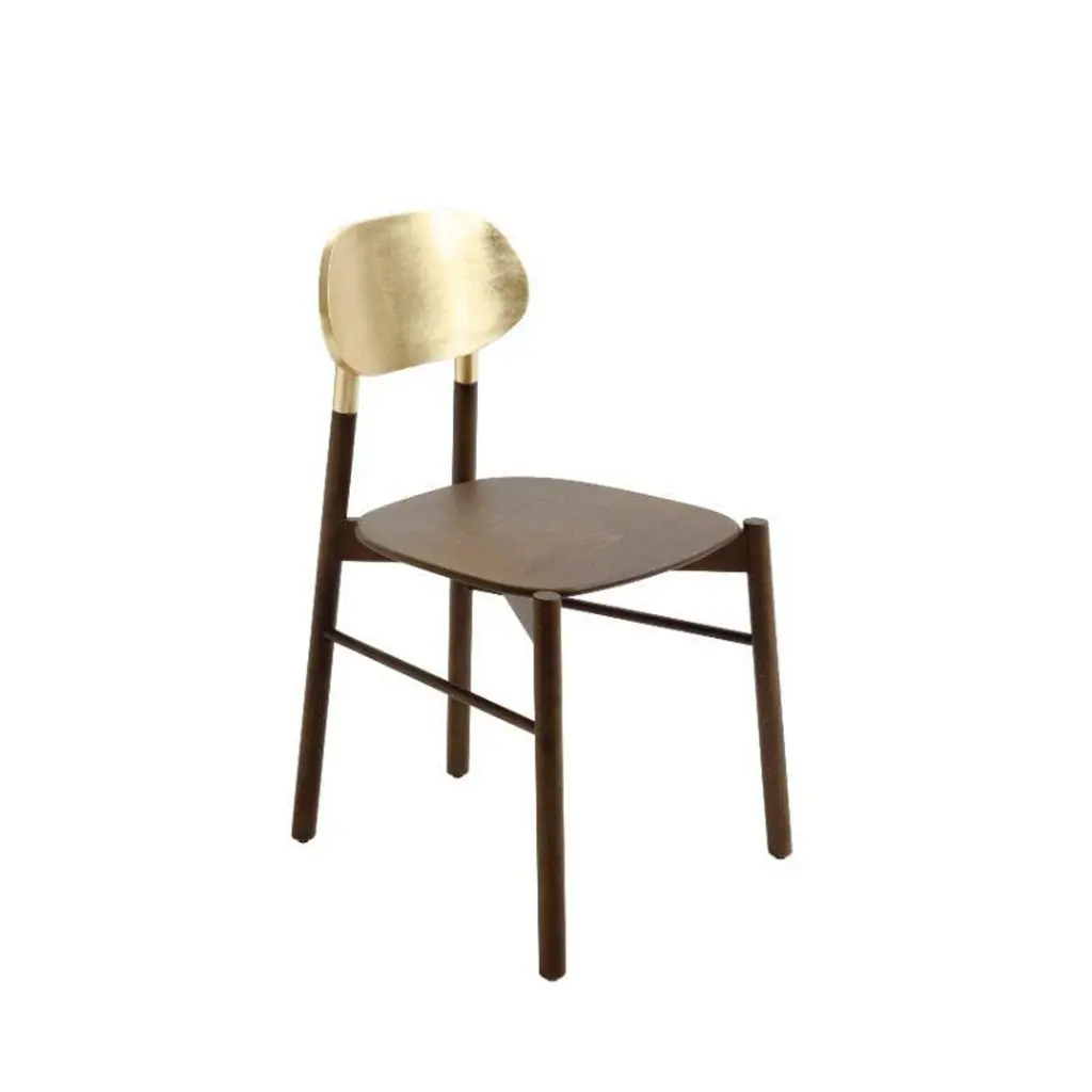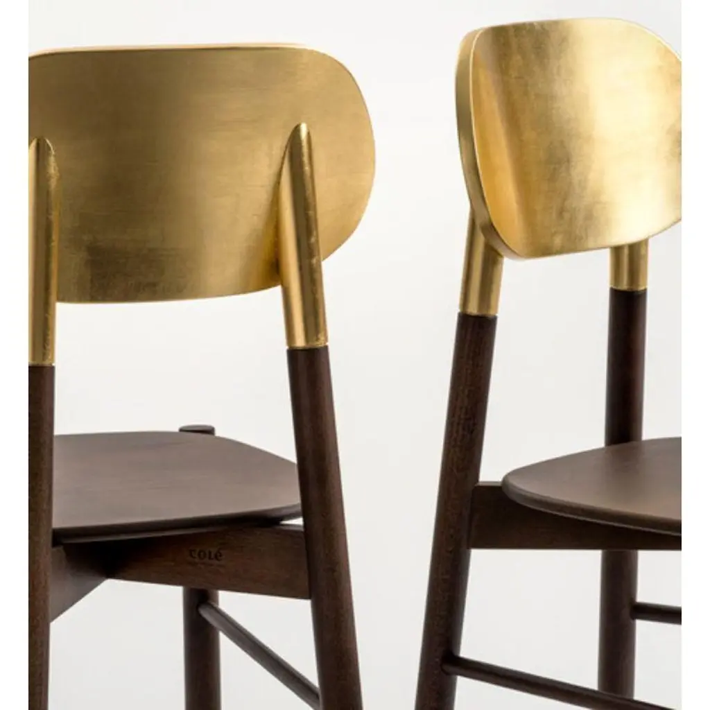 Set of 4 Bokken chair, beech structure stained, Gold Leaf Back by Colé Italia with Bellavista/PicciniDimensions: H 81.7, D 49, W 53.5 cmMaterials: Beech Structure Stained, Gold or Silver leaf back Also Available: Natural Beech Structure; Lacquered Back, Natural beech structure; Gold or Silver leaf back, Beechwood stained, Beech Structure Stained; Lacquered Back, Beech Structure Stained; Gold or Silver leaf back.An essential chair in the form yet precious in colors. Tapered and elongated, the legs of the seat are inspired by the bokken, a wooden replica of the Japanese sword used in the training of the Japanese martial art of Aikido and Kendo. Bokken chair is characterized by the backrest in precious colors: blue aquamarine, ruby red off-white, anthracite, and authentic gold or silver leaf, to match the structure of natural or walnut dyed beech wood. These chairs are customizable like all the brand’s products to meet the specific demands of the contract sector.Colé is a young Italian design brand, with a high-end production 100% made in Italy. Born from the experience of Matteo De Ponti, architect, who grew up in one of the most outstanding Milanese design families, and the artistic sensibility of Laura Macagno, degree in Economics and passionate of art and design. Our mission is to create design icons, beautiful and comfortable pieces that can stand the test of time, furnishing houses of international and sophisticated clients, and realized with craftsmanship, thus unique. “We love objects which own deep roots, excellent quality, and a strong evocative power. Archetypal forms dressed with new beauty without losing their classical composure”.Our expressive research is inspired by the utopian force of Italian eminences grises architects and designers of the ’50s, the Scandinavian design, the Bauhaus, ethnic handcraft and houses of famous writers of the XX century, all different as a style but united by the intense soul of those who worked and lived there.