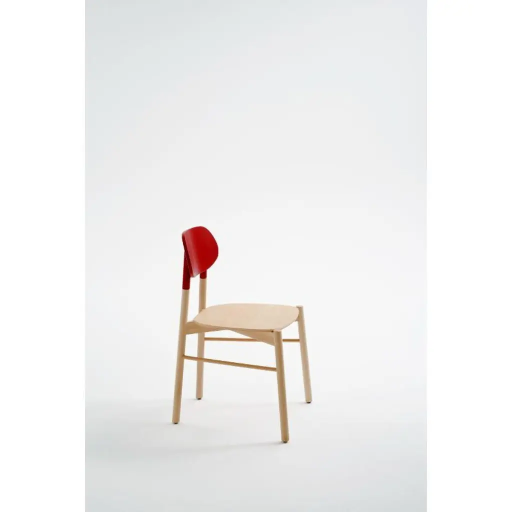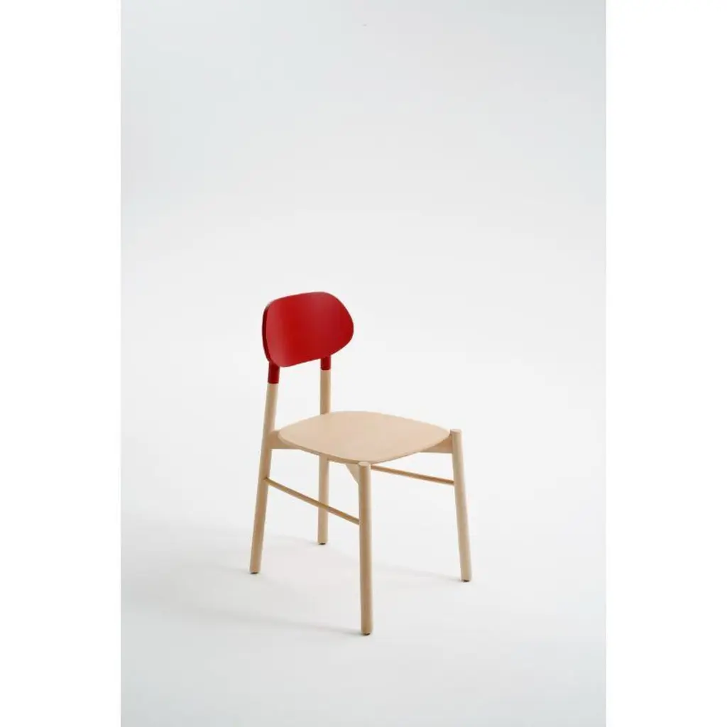 Set of 4, bokken chair, natural Beech, red by Colé Italia with Bellavista/PicciniDimensions: H. 81,7 D. 49 W. 53,5 cmMaterials: Solid Beech Wood Structure, Plywood Lacquered Back Panel Also Available: Natural Beech Structure; Lacquered Back, Natural beech structure; Gold or Silver leaf back, Beechwood stained, Beech Structure Stained; Lacquered Back, Beech Structure Stained; Gold or Silver leaf back.An essential chair in the form yet precious in colors. Tapered and elongated, the legs of the seat are inspired by the bokken, a wooden replica of the Japanese sword used in the training of the Japanese martial art of Aikido and Kendo. Bokken chair is characterized by the backrest in precious colors: blue aquamarine, ruby red off-white, anthracite, and authentic gold or silver leaf, to match the structure of natural or walnut dyed beech wood. These chairs are customizable like all the brand’s products to meet the specific demands of the contract sector.Colé is a young Italian design brand, with a high-end production 100% made in Italy. Born from the experience of Matteo De Ponti, architect, who grew up in one of the most outstanding Milanese design families, and the artistic sensibility of Laura Macagno, degree in Economics and passionate of art and design. Our Mission is to create design icons, beautiful and comfortable pieces that can Stand the test of time, furnishing houses of international and sophisticated clients, and realized with craftsmanship, thus unique. “We love objects which own deep roots, excellent quality, and a strong evocative power. Archetypal forms dressed with new beauty without losing their classical composure”.Our expressive research is inspired by the utopian force of Italian eminences grises architects and designers of the ’50s, the Scandinavian design, the Bauhaus, ethnic handcraft and houses of famous writers of the XX century, all different as a style but united by the intense soul of those who worked and lived there.