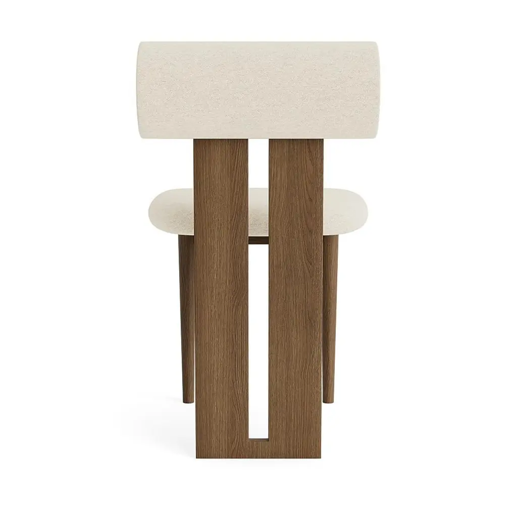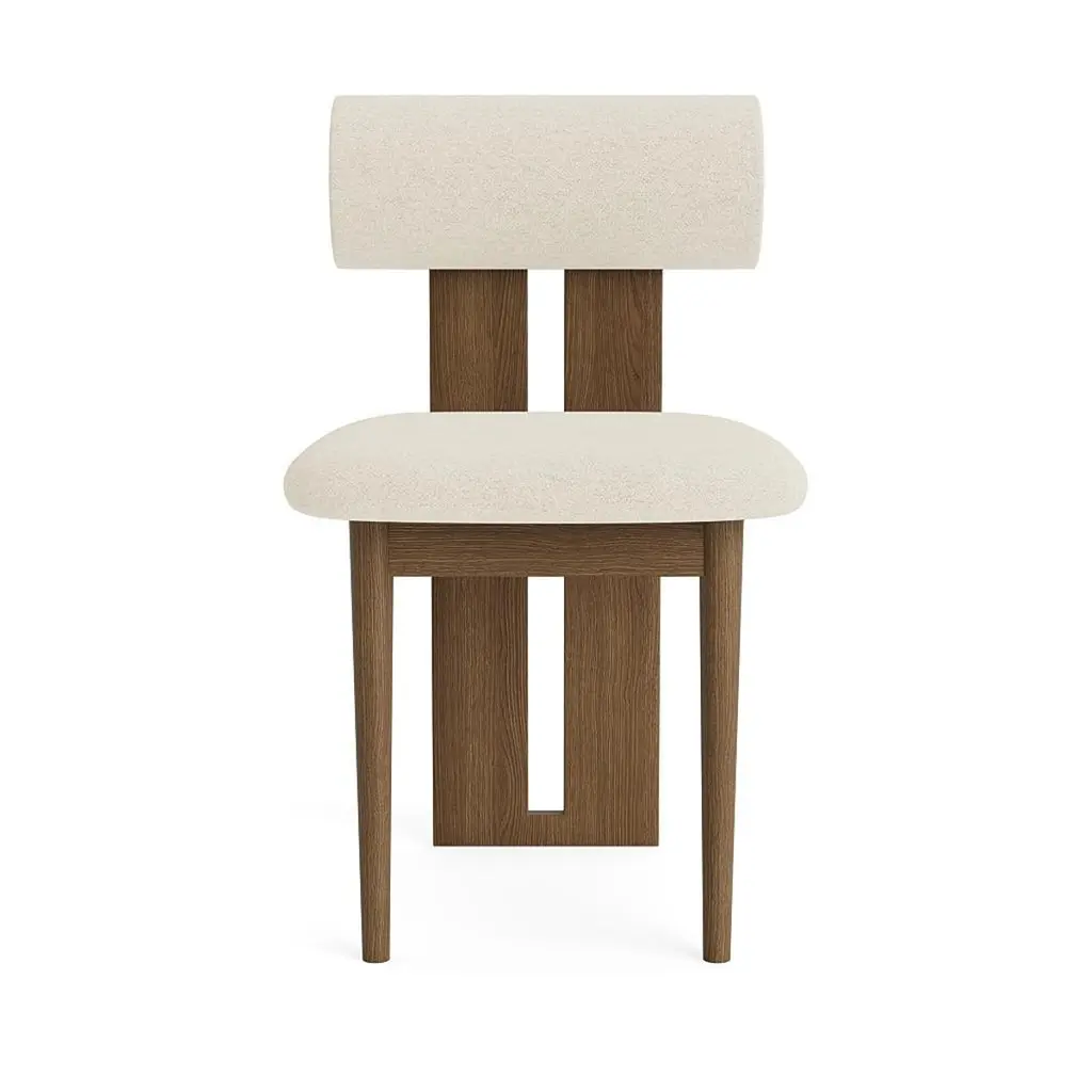 HIPPO 4 ChairsSigned by Kristian Sofus Hansen and Tommy Hyldahl for Norr11. Model shown on the picture:Wood: Light Smoked OakFabric: Barnum Bouclé 024Wood types available: natural oak / light smoked oak / dark smoked oak / black oakFabric: large variety available (contact us to check the catalog)Soft, playful shapes characterise this family of upholstered pieces, the Hippo makes a stylish statement in any interior setting. The Hippo Chair stands on two sturdy legs and a wooden profile connecting the seat and back which in stark contrast to the soft shapes is hard-lined and strong. The Hippo series is influenced by the Hippopotamus mammal drawing upon its barrel-shaped torsos. The characteristic wooden leg profile comes in four different oak finishes; natural, light smoked, dark smoked and black and the seat and back come in a variety of upholstery options.NORR11's entire range of wooden furniture is produced with water-based lacquer. Using water-based lacquers instead of standard lacquers reduces the emission of harmful substances significantly, improving indoor and external climates while making for better working conditions in the production phase.