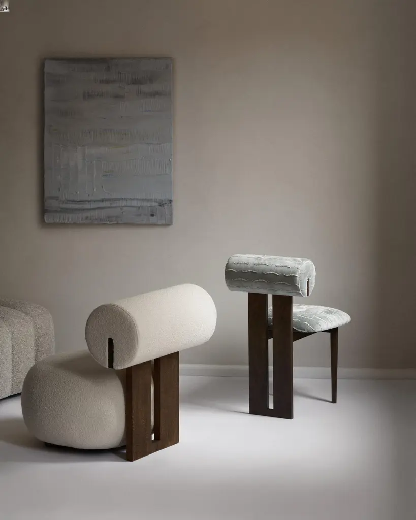 Set Of 4 Chairs 'Hippo' By Norr11, Light Smoked Oak, Barnum Bouclé Col.24