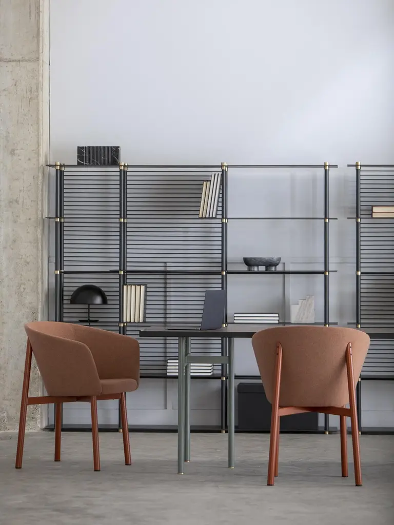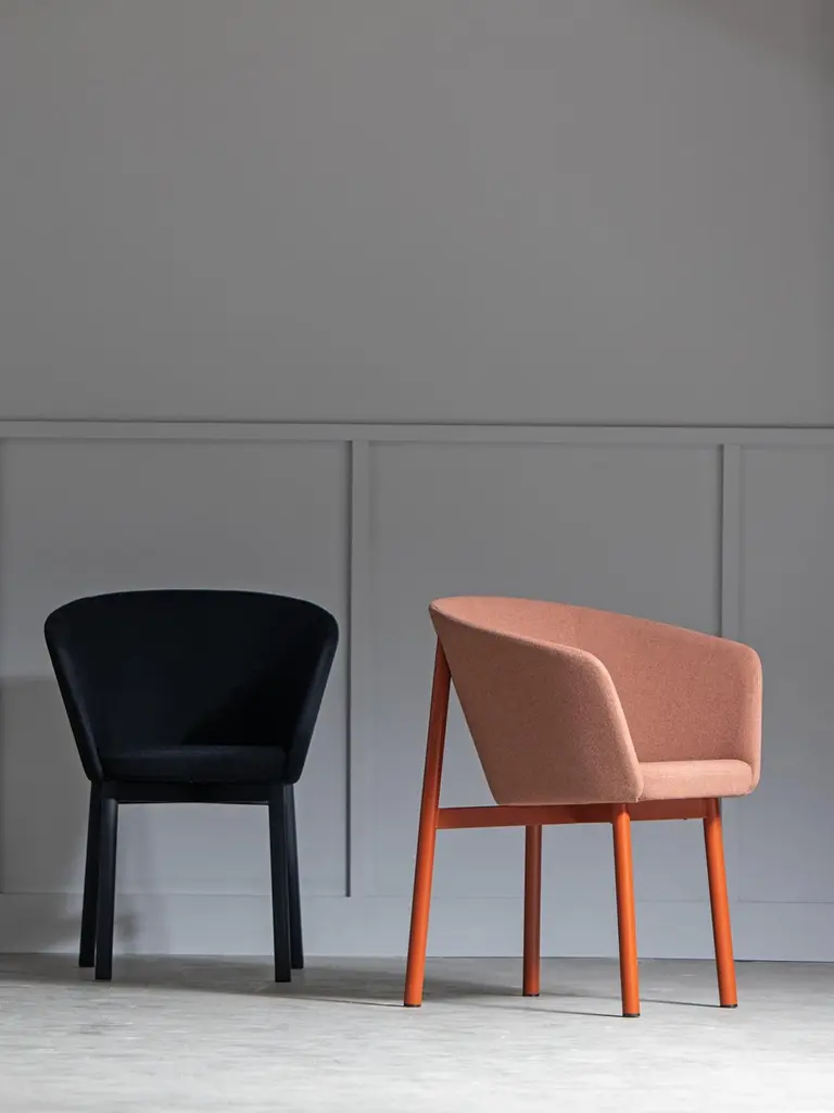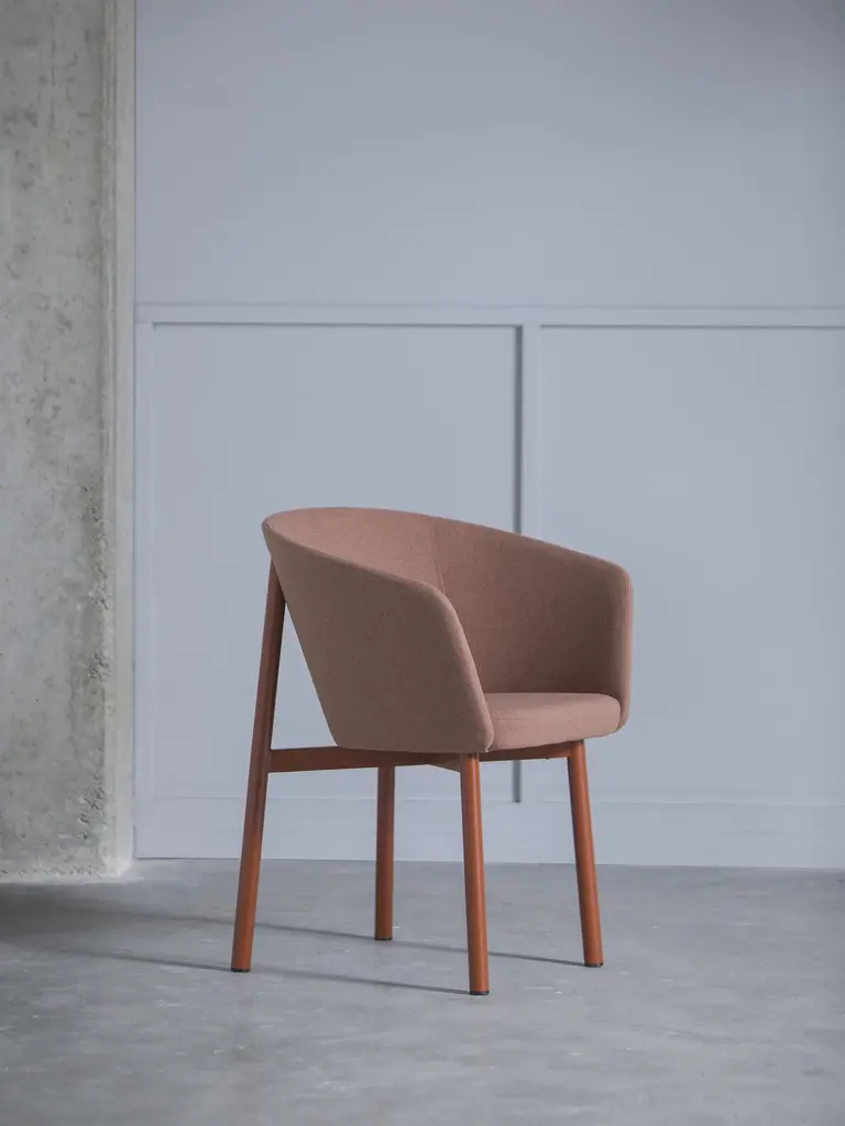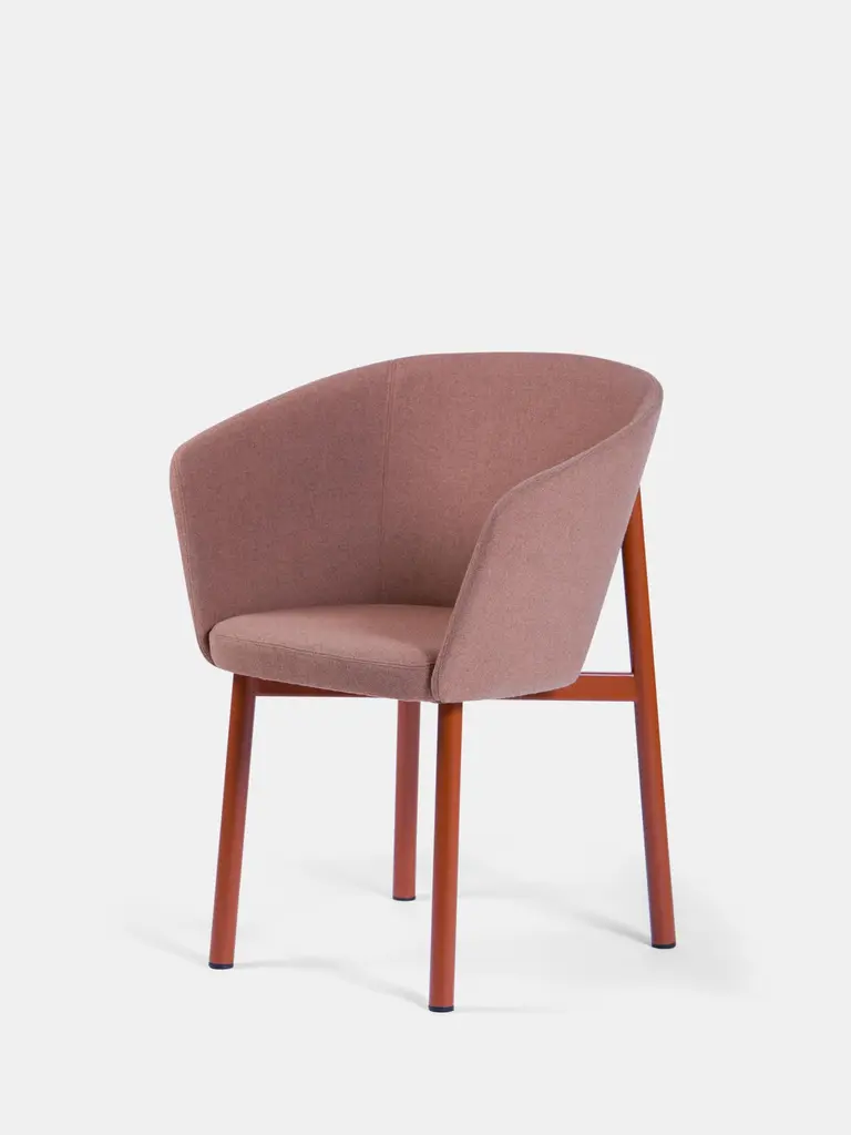 Set of 4 Dusty Pink Residence Bridge Armchair by Kann DesignDimensions: D 52 x W 59.5 x H 80 cm.Materials: Steel tube, HR foam, fabric upholstery Kvadrat Tonica 523 (100% wool).Available in other fabrics.All of the Residence seats were created by designer Jean Couvreur. They were all initially designed for the refitting of the workshops of the Ministry of Culture at the Cité Internationale des Arts.With its enveloping shape and generous seating, the Bridge armchair offers great comfort.Founded in 2010, Kann Design is a furniture-making brand that brings together the know-how of the Kanaan workshop and the talents of independent designers. Kann’s adventure is above all a family story: what distinguishes it from the rest is the skilled work of the craftsmen of Kanaan, a collective founded in 1958 in Beit Chabab, Lebanon, by the father of Houssam, the founder of Kann Design, himself a cabinetmaker.Since its creation, the studio has shown and gained great skills in cabinetmaking, painting, tapestry, and welding, and since 2017, thanks to Houssam’s brother, Samer Kanaan, the workshops have been modernized and expanded to accommodate Kann’s ever-more ambitious projects, particularly customized orders for specific projects carried out in collaboration with architects.