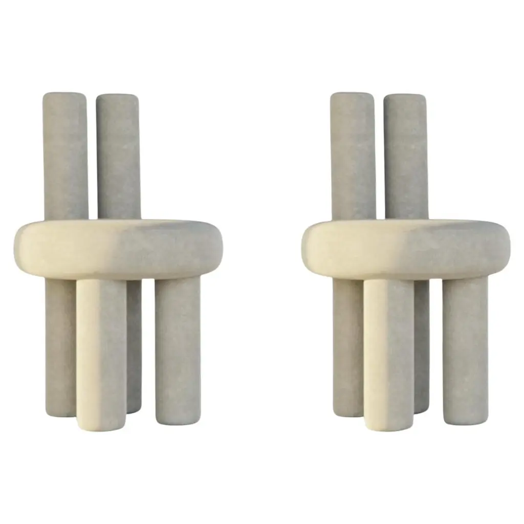 Set of 4 glazy chairs, Gentle 133 by Royal StrangerDimensions: W 58 D 58 H 85 cm SH 50 SD 46 cmMaterials: UpholsteryAlso available: Upholstery in all Royal Stranger’s fabric collection, & COM (Client’s Own Material). Base Available lacquered in all NCS/RAL colors, or in gold, copper and silver leaf, with glossy or matte finishStep into a world of eye candy furniture with Glazy Chair. There is a groovy feeling to the rounded lines defining its round seat, and biscuit-shaped backrest and legs. An irresistible furniture piece where velvety upholstery playfully meets a glazed back finishing. Glazy Chair is the icing on the cake of your interior designs.Royal Stranger is an exclusive furniture brand determined to bring you the best unique pieces of art and design.Fusing design, art, and the best craftsmanship, they strive to deliver the best state of handmade art furniture. The design team works every day to create meaningful products that represent values such as passion, function, aesthetics, and know-how. Values that are meant to represent Royal Stranger’s DNA. This dedication is present at all stages of production and the combination of craftsmanship and innovative design contributes toour final purpose: To produce certified high-quality products, made with passion and expertise and using royal materials such as gold leaves, rich woods, and high-quality lacquers.It was in 2013, as architects, that Sofia Santos & Rui Santos started to push the boundaries of innovation in several retail design concepts for some of the best stores in Portugal. This resolution has always been present in their work, and that’s how the brand was born.