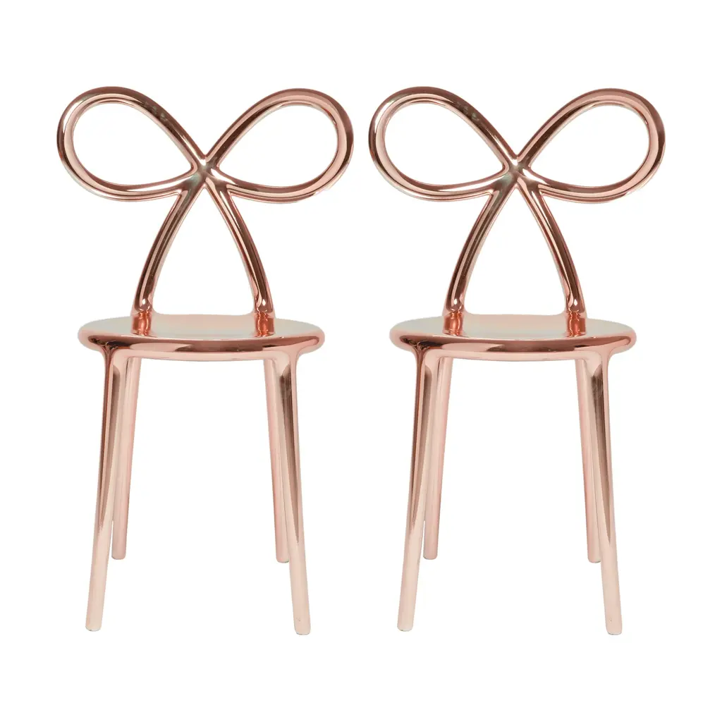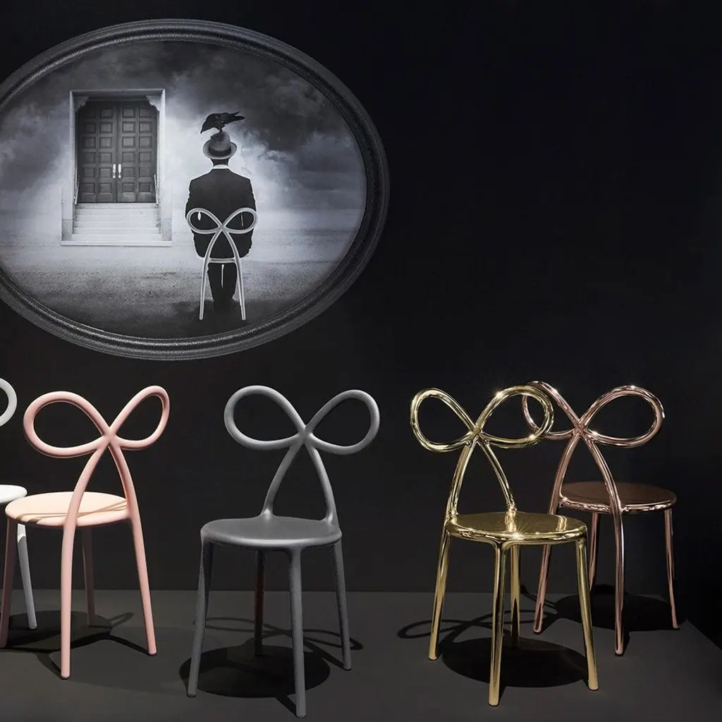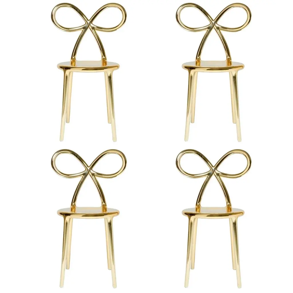 Scroll down and click "view all from Seller" to see more than 400 other unique products. (2.2)Set of 4 gold metallic ribbon chairsThe Ribbon chair is the object that expresses the female language of Nika Zupanc with a strong and essential icon. The Ribbon chair is an object whose identity expresses feeling and empathy selecting immediately its own audience. The ribbon is graceful and astonishing, an expression of a gift or an event.Designed by Nika ZupancMade in Italy:Made in Italy furniture means design, quality, style and sophistication.The typical elegance of Italian design can be found in this piece. No wonder that the world famous designers like Philippe Starck, Karim Rashid, Piero Lissoni, Rodolfo Dordoni and many others put their signature next to Made in Italy.