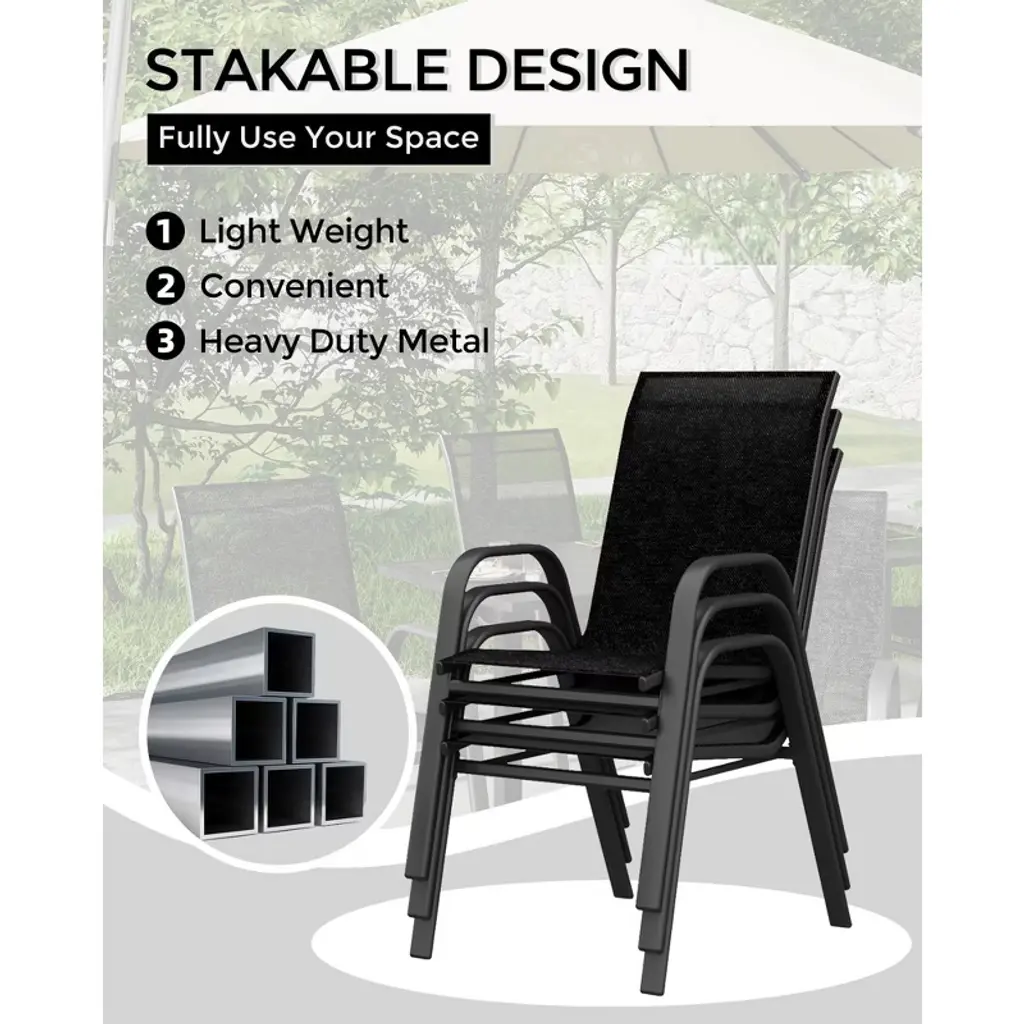 Set Of 4 Outdoor Stackable Patio Chairs - High-back Metal Frame With Durable Textilene Fabric - Perfect For Lawn, Backyard, Deck