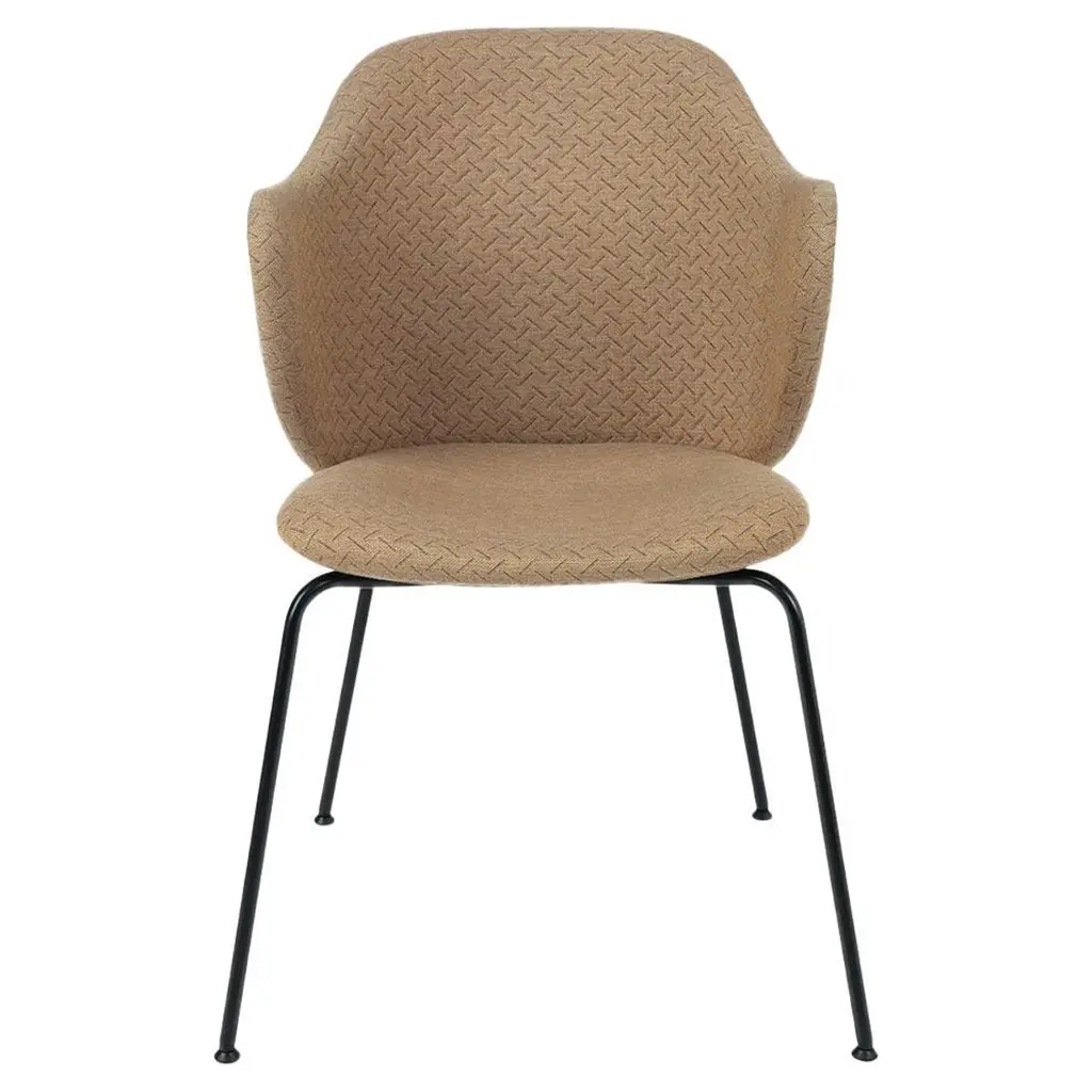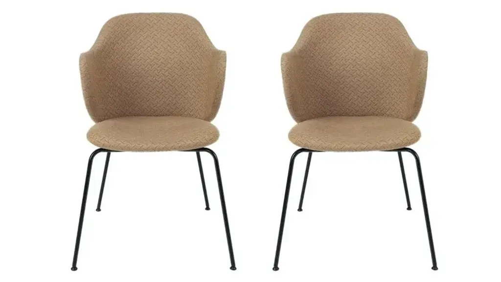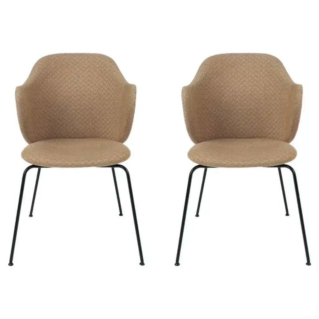 Set of 2 brown Jupiter Lassen chairs by Lassen. Dimensions: W 58 x D 60 x H 88 cm. Materials: Textile. The Lassen Chair by Flemming Lassen, Magnus Sangild and Marianne Viktor was launched in 2018 as an ode to Flemming Lassen’s uncompromising approach and special feel for detail, aesthetics, quality and form. The upholstered seat and back is placed on a geometric frame in powder-coated black metal and the dining chair embraces one’s body, letting you sit comfortably for hours on end.