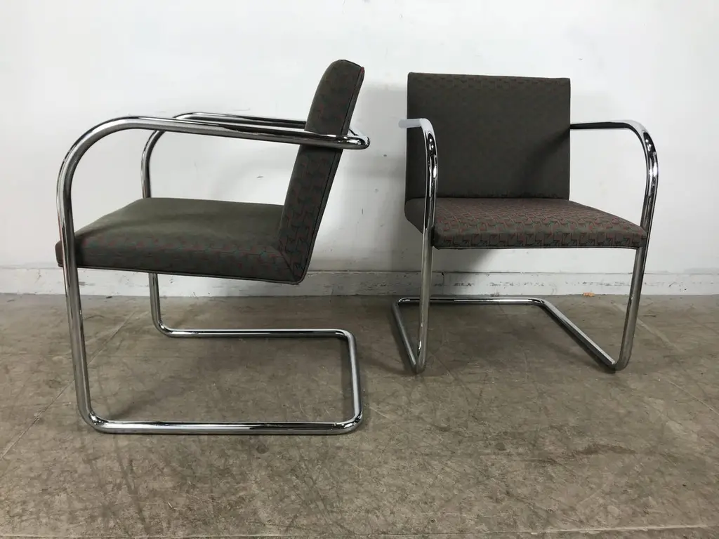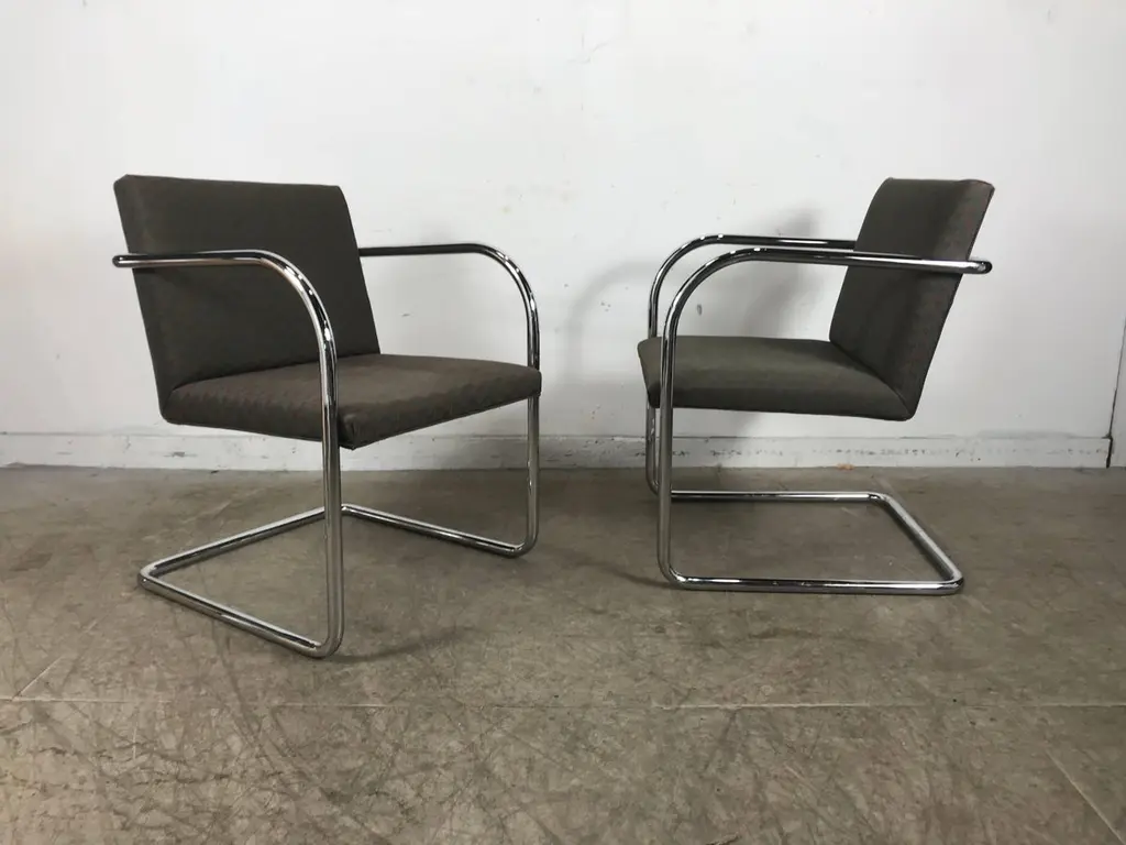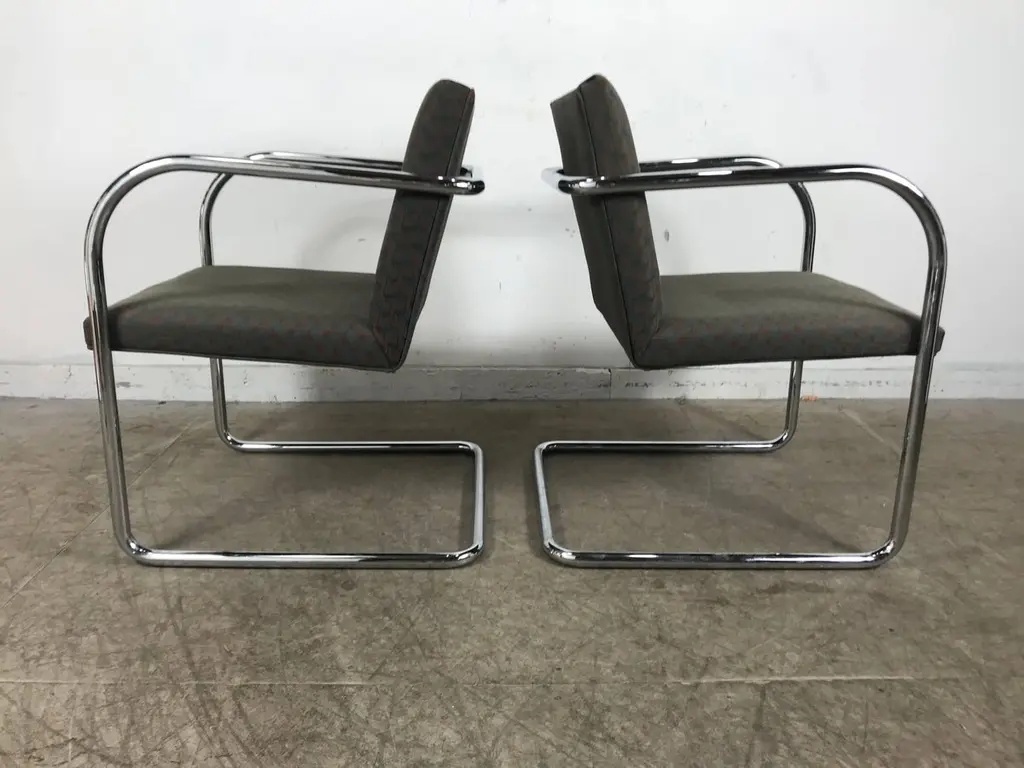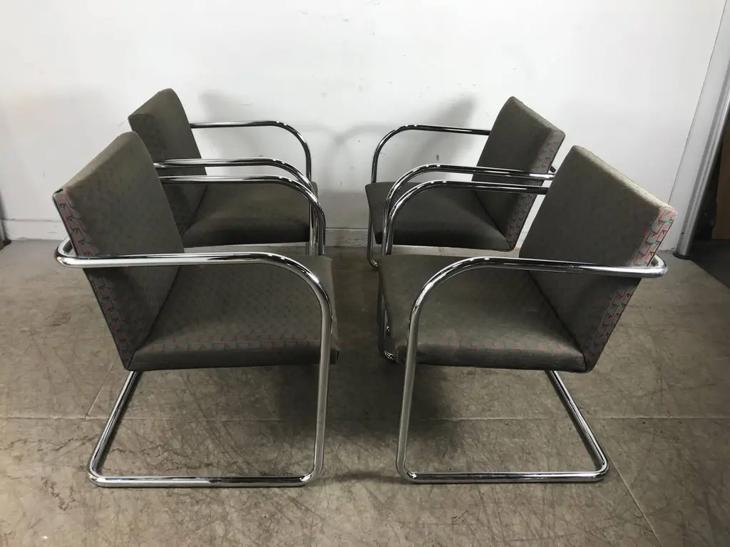 Set of eight chrome Brno chairs by Mies Van Der Rohe for Thonet, classic Bauhaus design, nice original condition, hand delivery avail to New York City or anywhere en route from Buffalo NY.