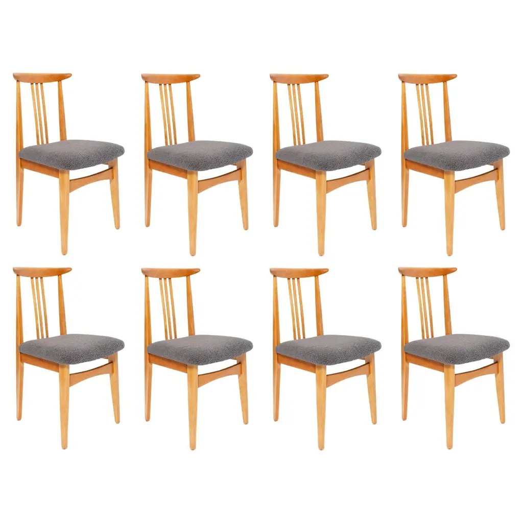 Set Of Eight Mid-Century Linen Boucle Chairs, By M. Zielinski, Europe, 1960s