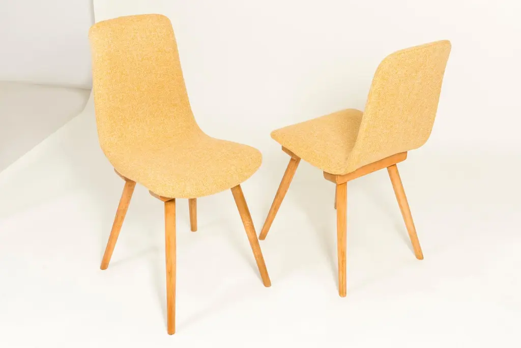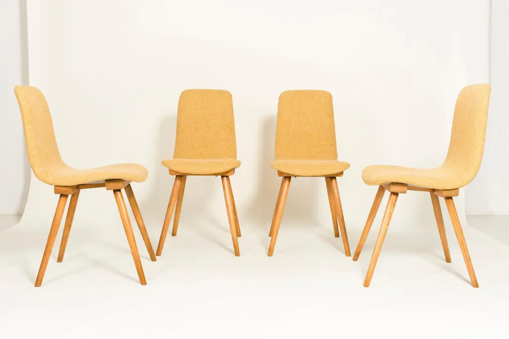 Set Of Four 20th Century Fameg Yellow Vintage Chairs, 1960s, Poland