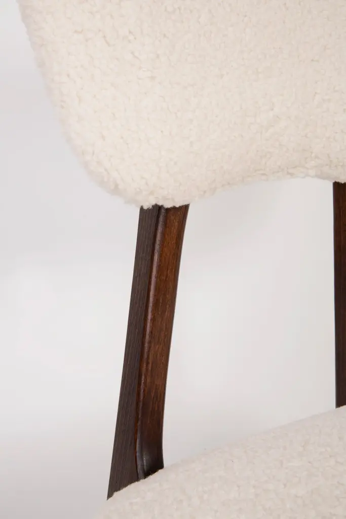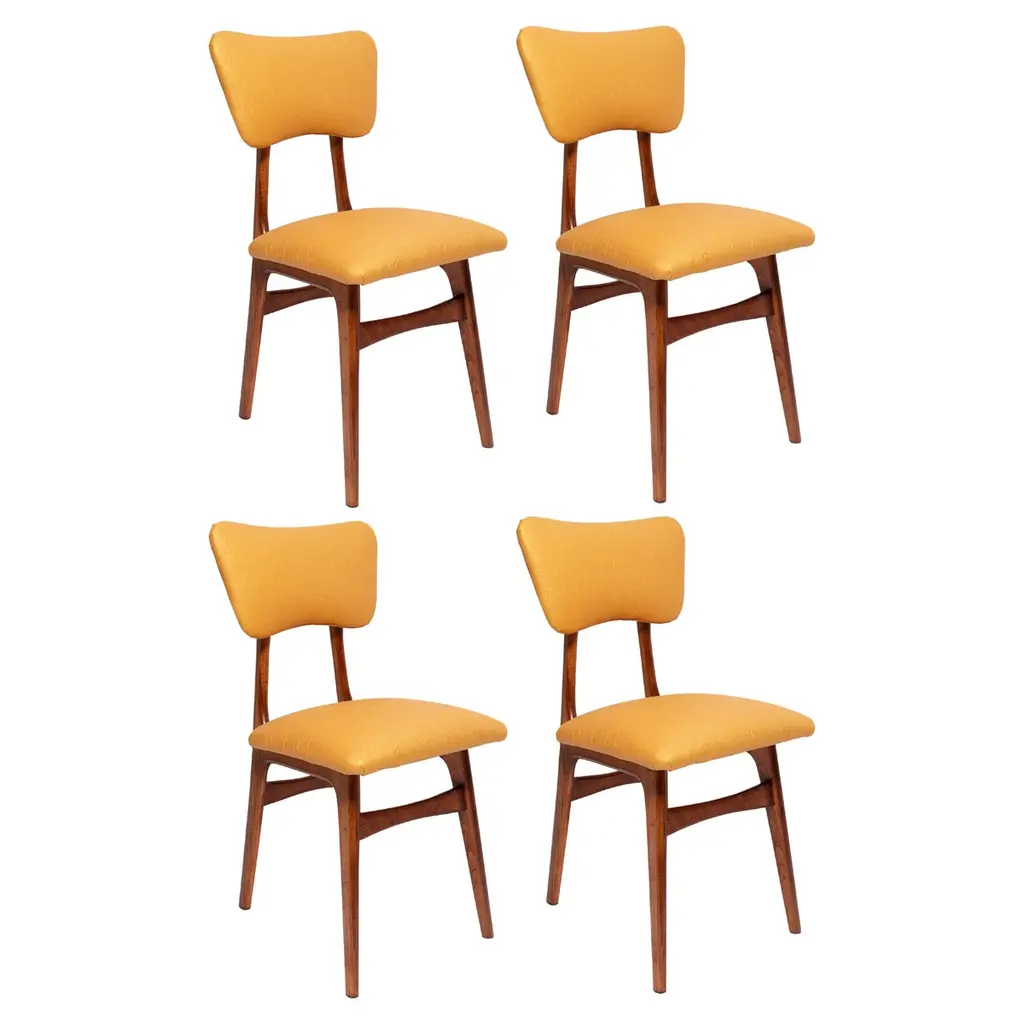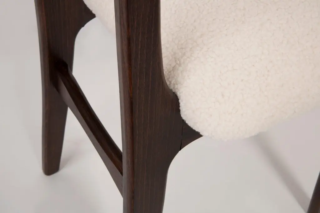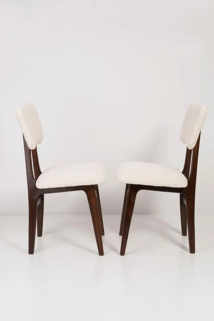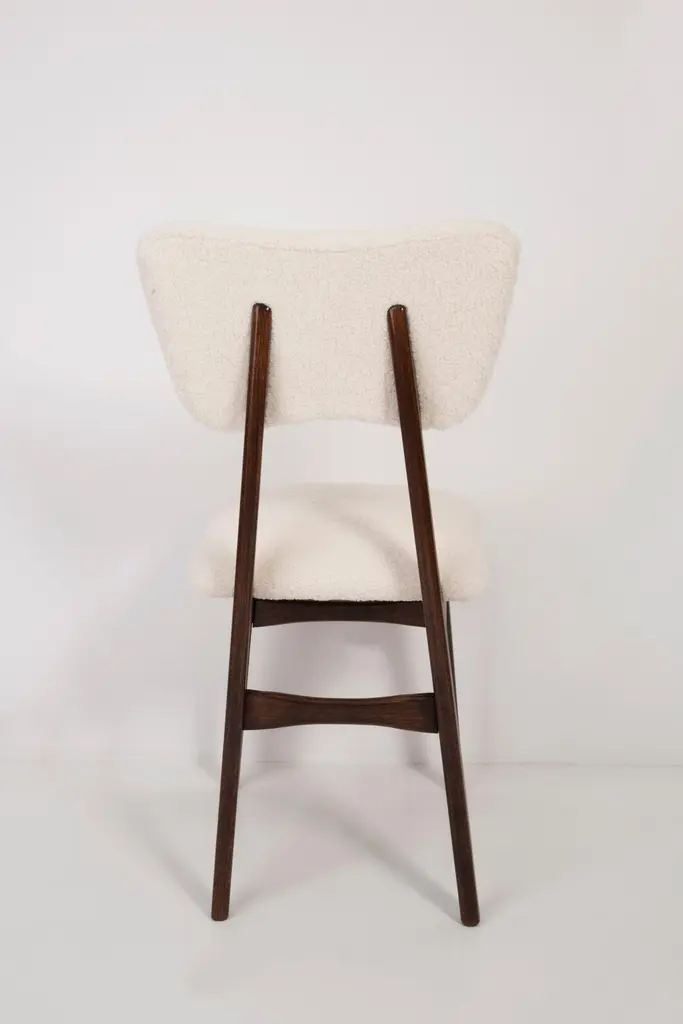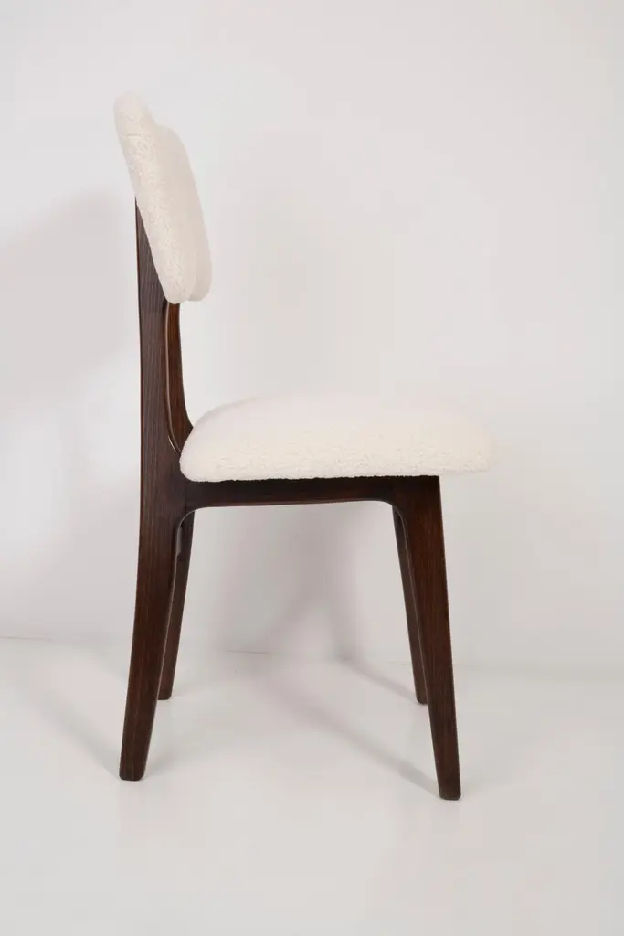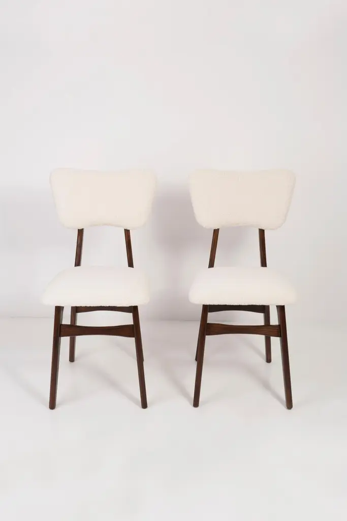 Chairs designed by Prof. Rajmund Halas. Made of beechwood. Chair is after a complete upholstery renovation, the woodwork has been refreshed. Seat and back is dressed in crème, durable and pleasant to the touch boucle fabric. Chair is stable and very shapely. They was produced in former furniture factory in Goleniów in the 1960s. We can prepare this set in every color of wood and fabric. Please check the last picture with boucle color samples.