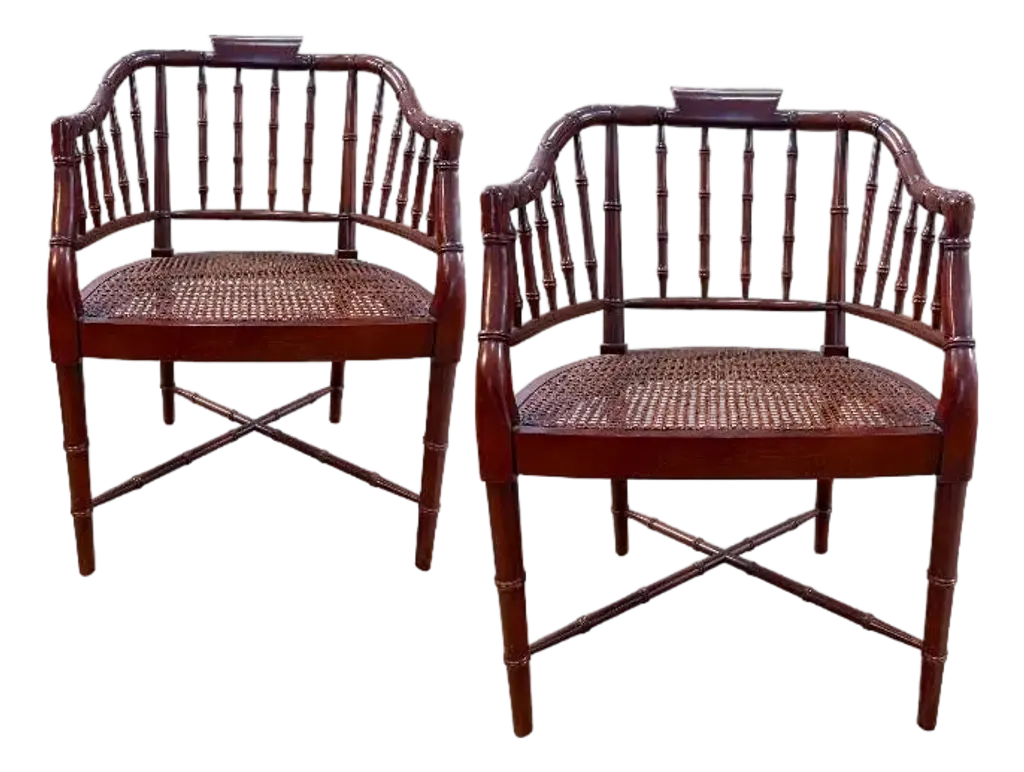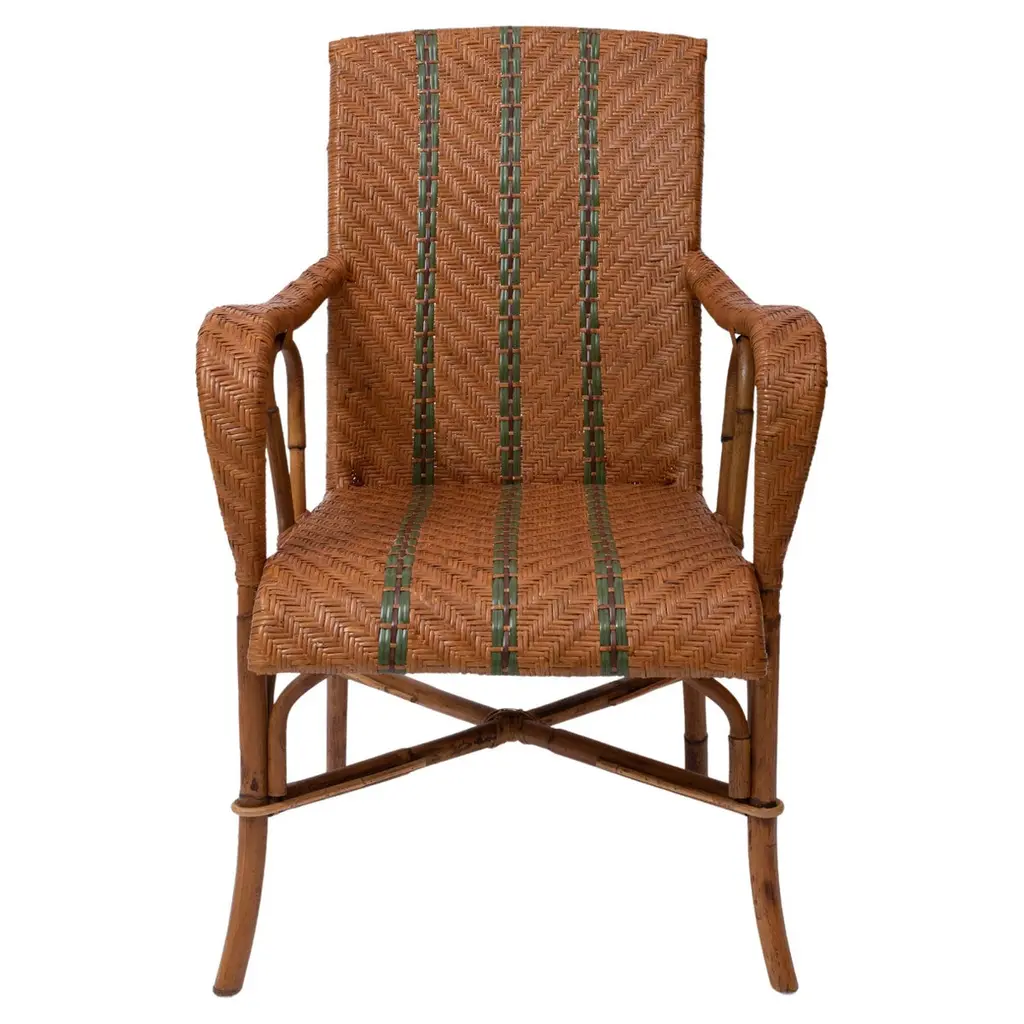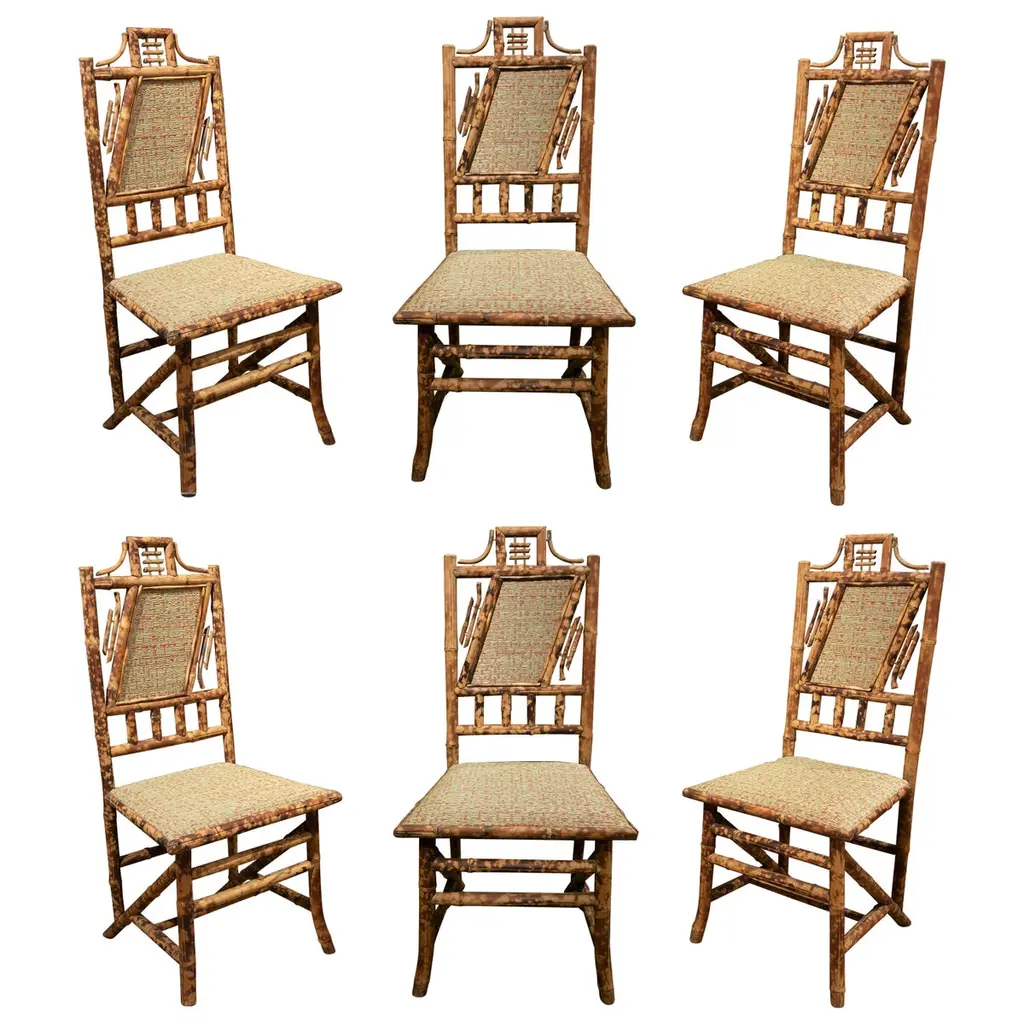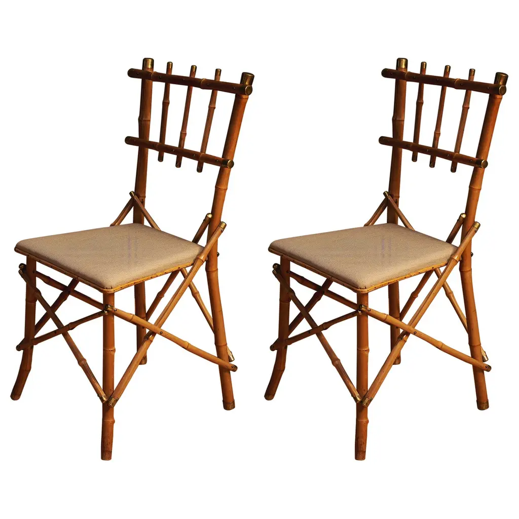 Set Of Four Burnt Bamboo Tortoise Folding Chairs