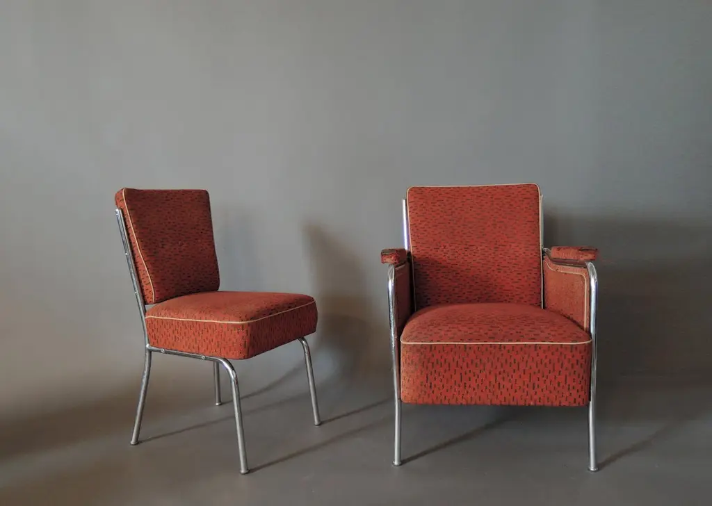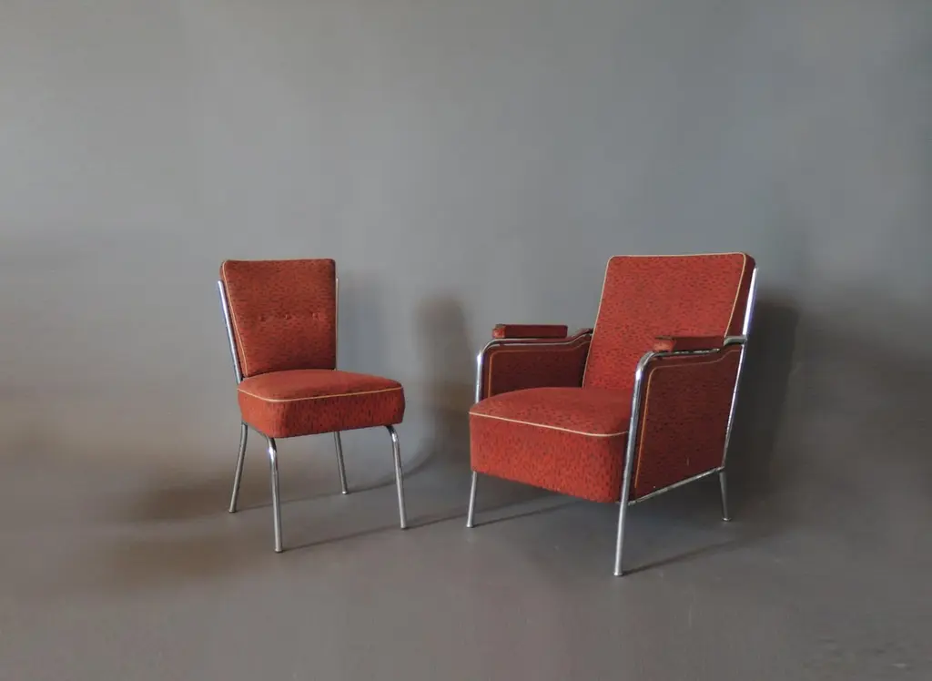 Set Of Four Czech 1930s Tubular Chrome Chairs