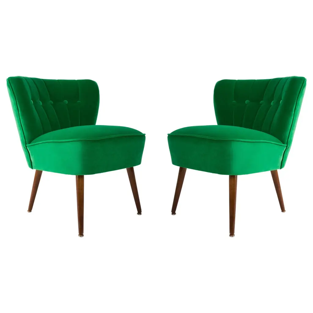 Set Of Four Dark Green Velvet 'Shell' Chairs, Europe, 1960s