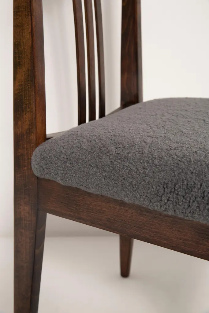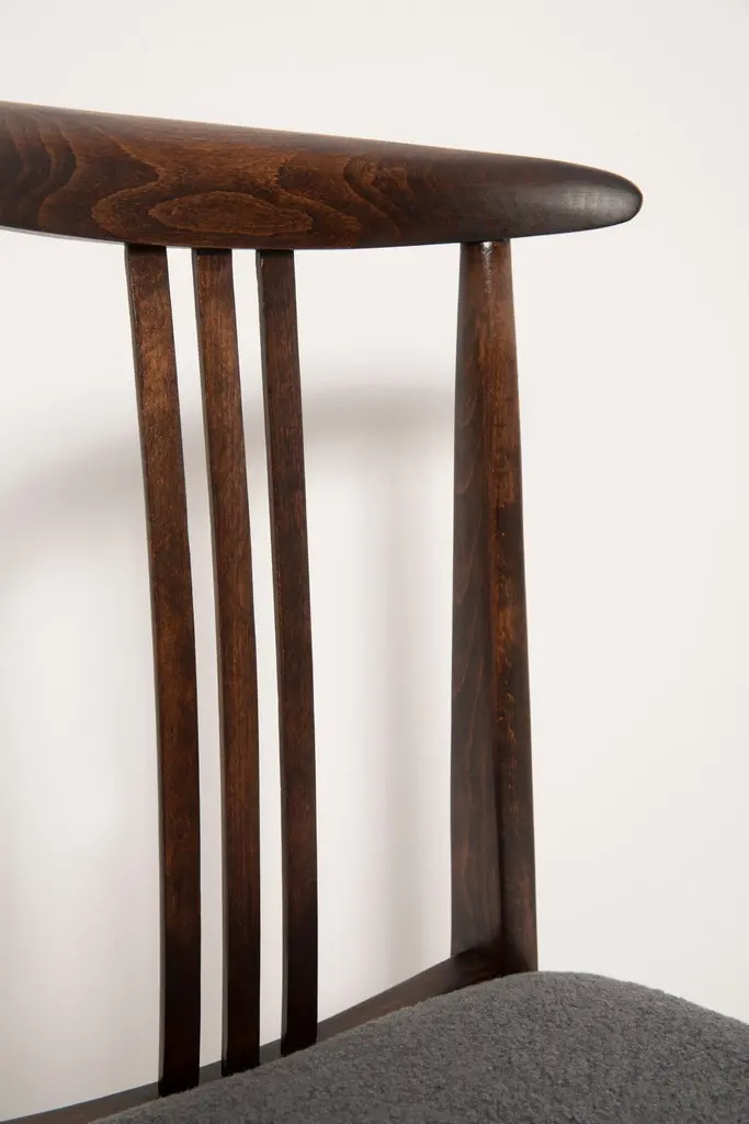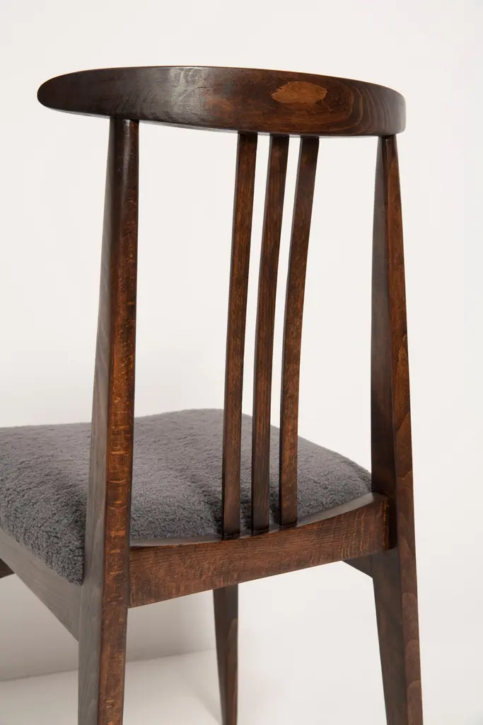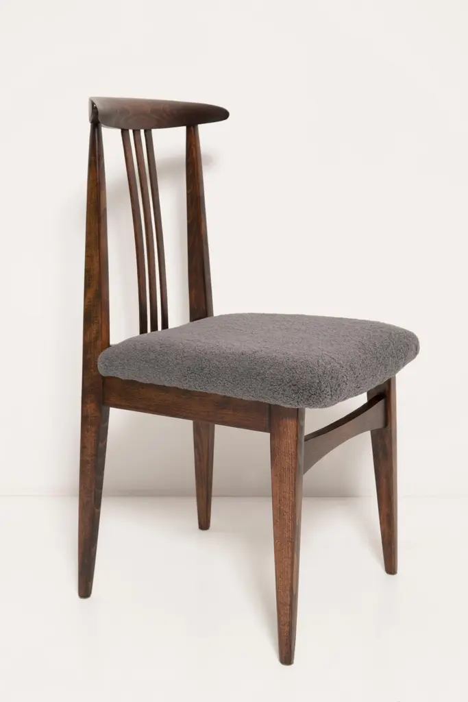Set of four beech chairs designed by M. Zielinski, type 200 / 100B. Manufactured by the Opole Furniture Industry Center at the end of the 1960s in Poland. The chairs have undergone a complete carpentry and upholstery renovation. Seats covered with high-quality italian gray boucle (color 07). If you want this set in another wood or fabric color please check the last picture. We can prepare also smaller and bigger sets.