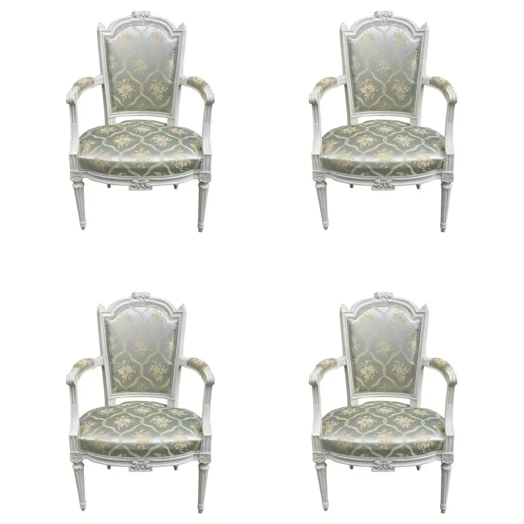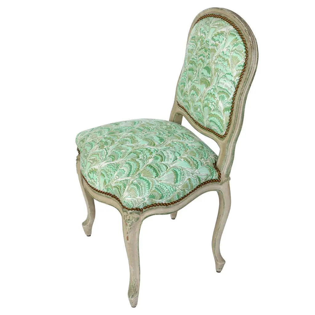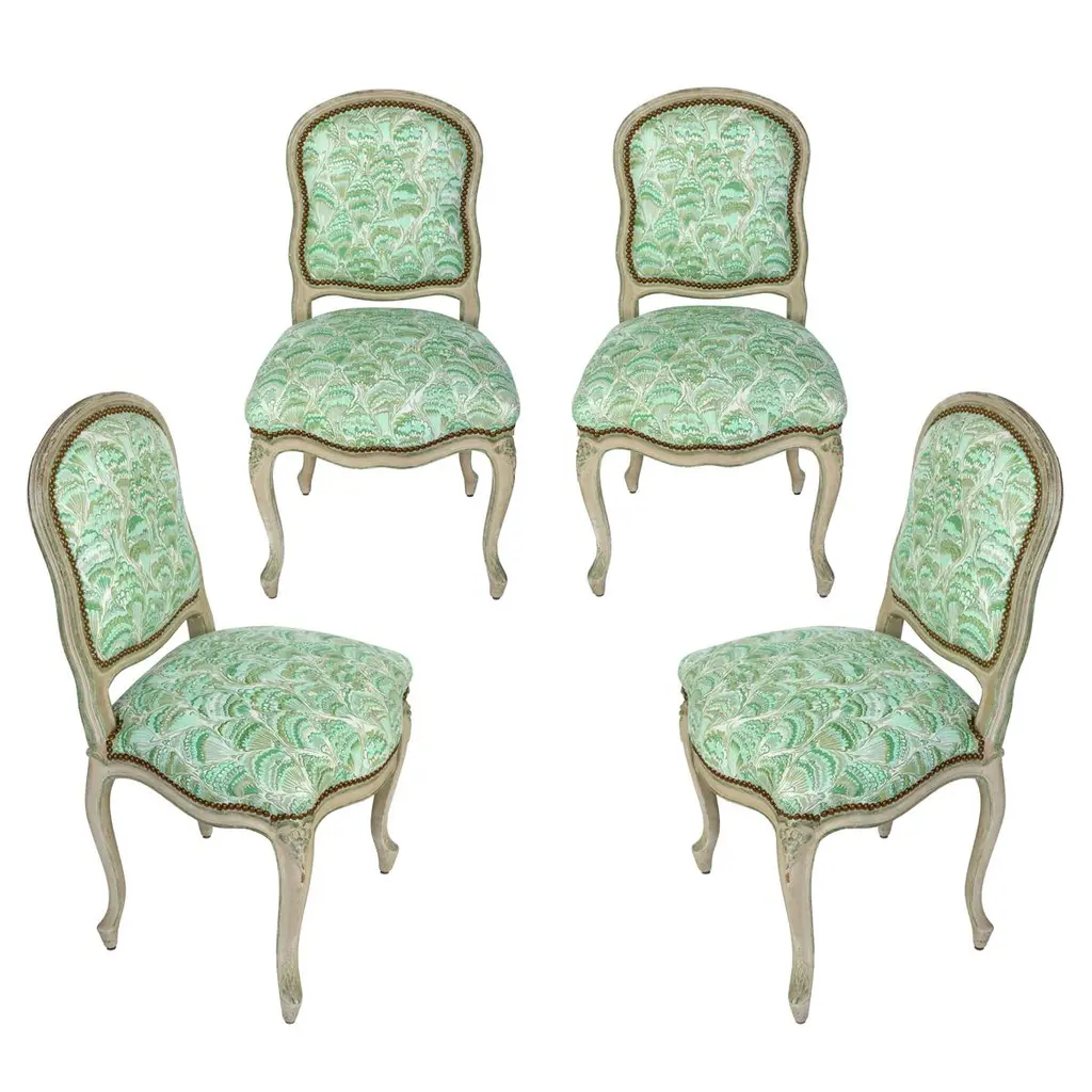 Set Of Four Louis Xv Chairs With Minty Green Cockleshells Fabric
