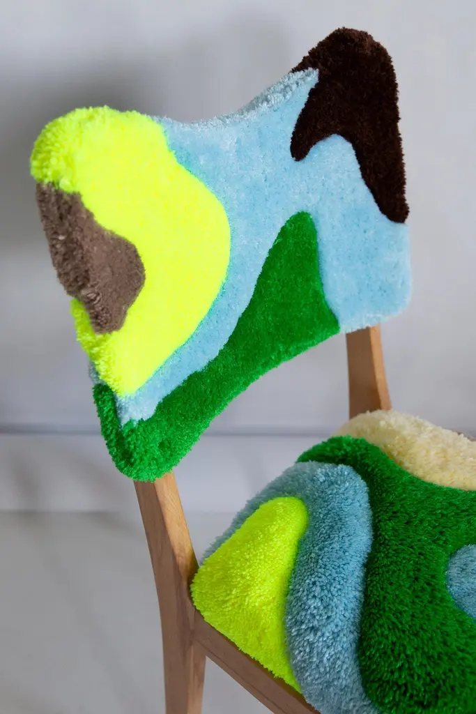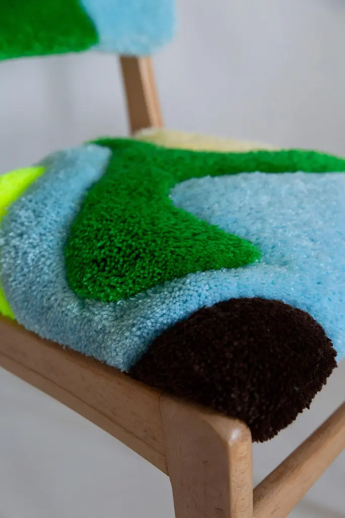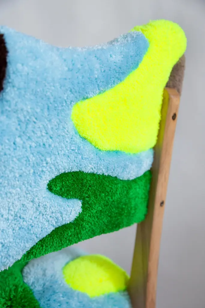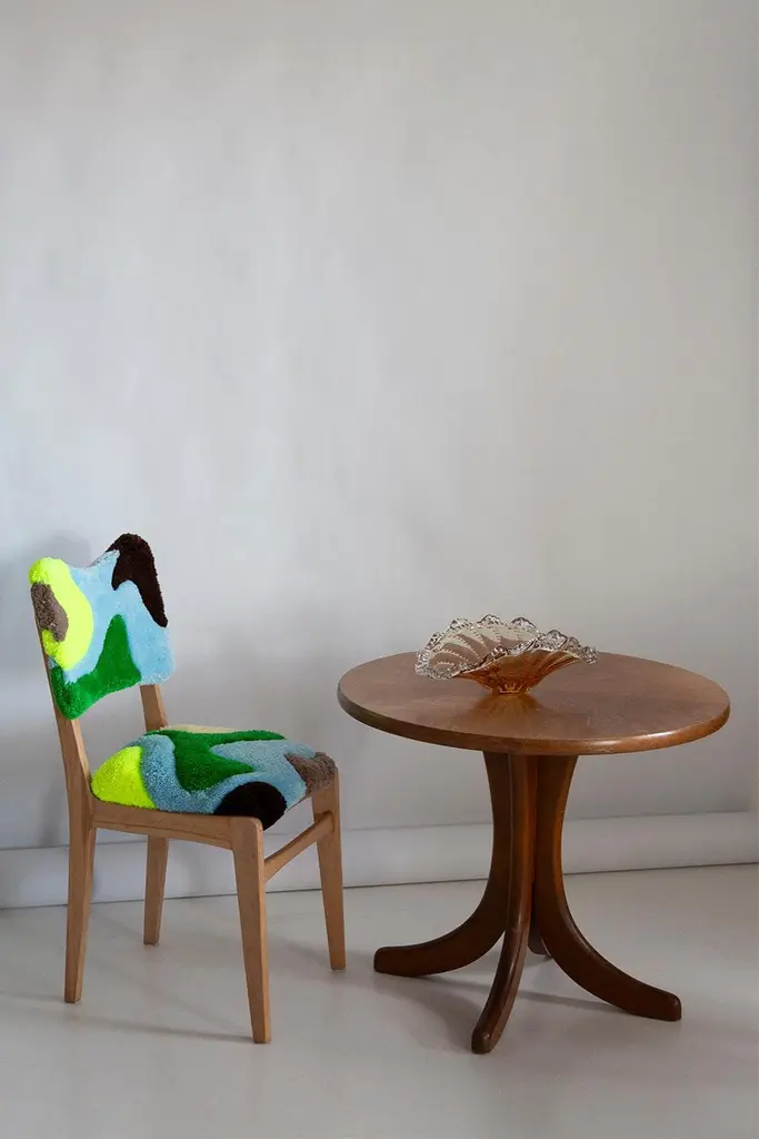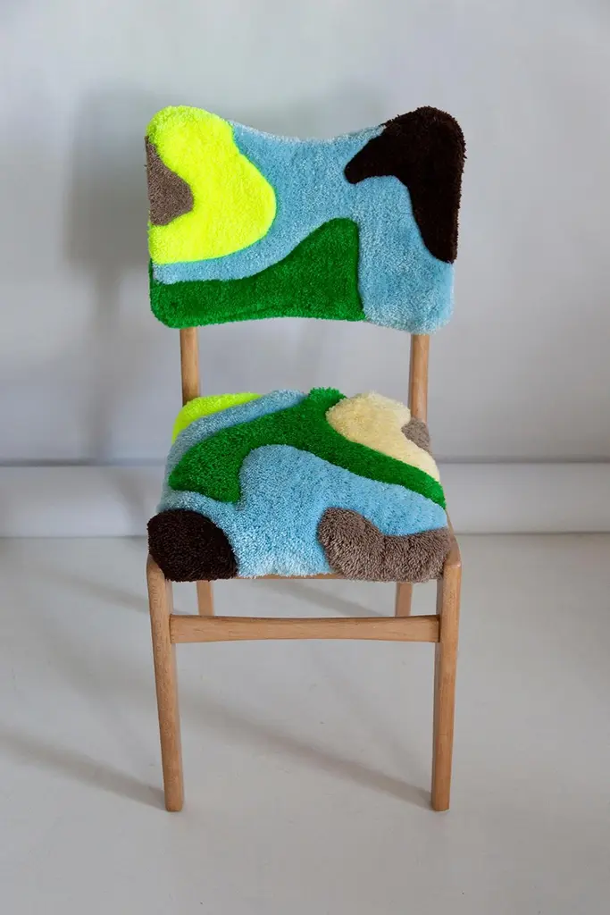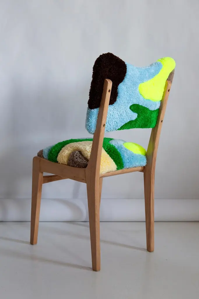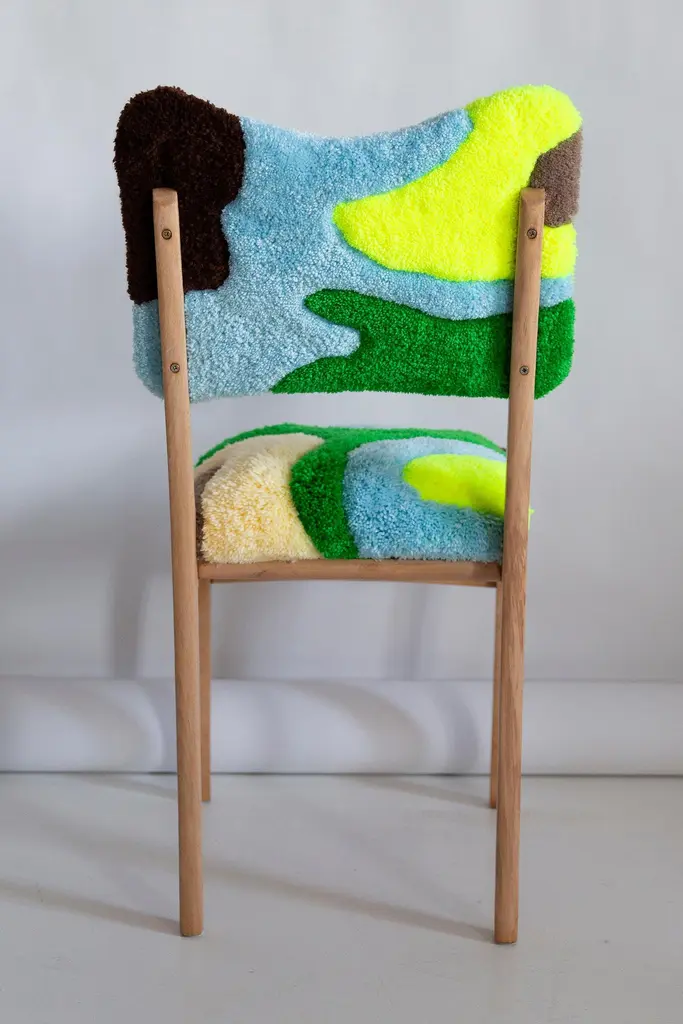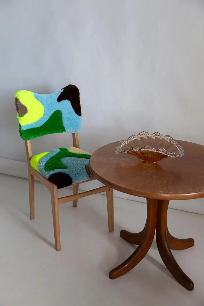 Chair designed by Prof. Rajmund Halas. Made of beechwood. Chair is after a complete upholstery renovation, the woodwork has been refreshed. Seat is hand tufting multicolor wool. Absolutely hand made technic. Every chair is unique and can be a bit different. Chair is stable and very shapely. They was produced in former furniture factory in Goleniów in the 1960s. We can prepare this chair in every color of wood and fabric also in bigger sets. Please ask for more informations. Set of four chair is available here.