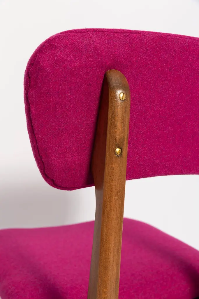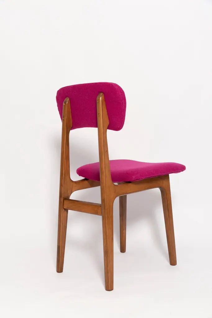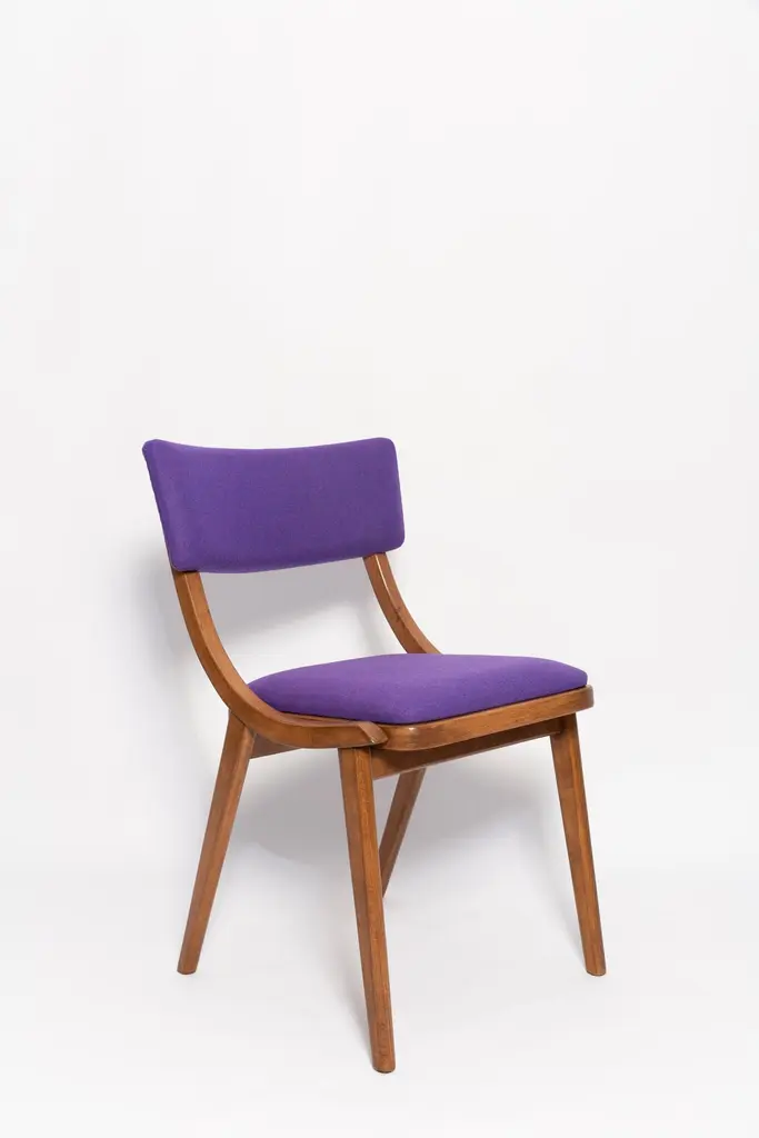 Chair designed by Prof. Rajmund Halas. Made of beechwood. Chair is after a complete upholstery renovation, the woodwork has been refreshed. Seat is dressed in leopard, durable and pleasant to the touch unique italian wool fabric. Chair is stable and very shapely. They was produced in former furniture factory in Goleniów in the 1960s. We can prepare this chair in every color of wood and fabric also in bigger sets. Please check the last pictures with color samples. Here set of four chairs is available.