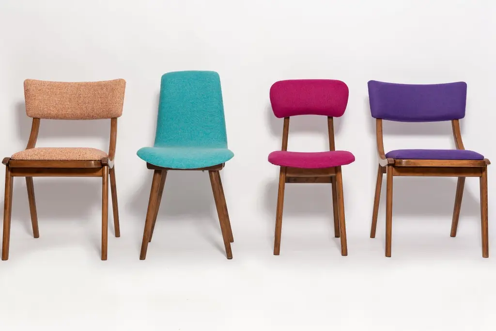 Set Of Four Mid Century Wool Chairs, Rajmund Halas, Europe, 1960s