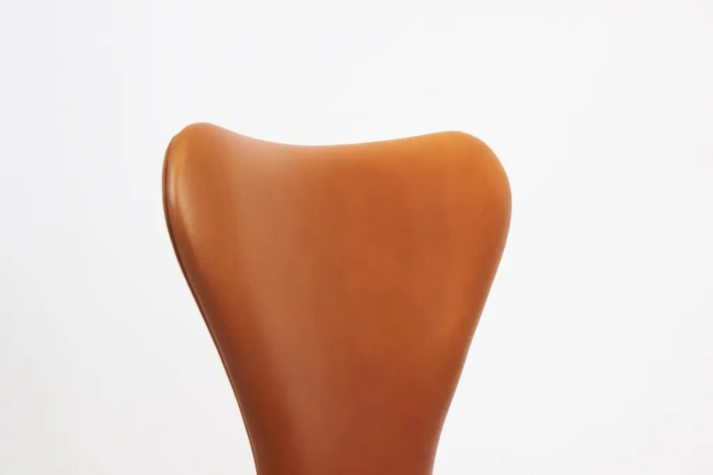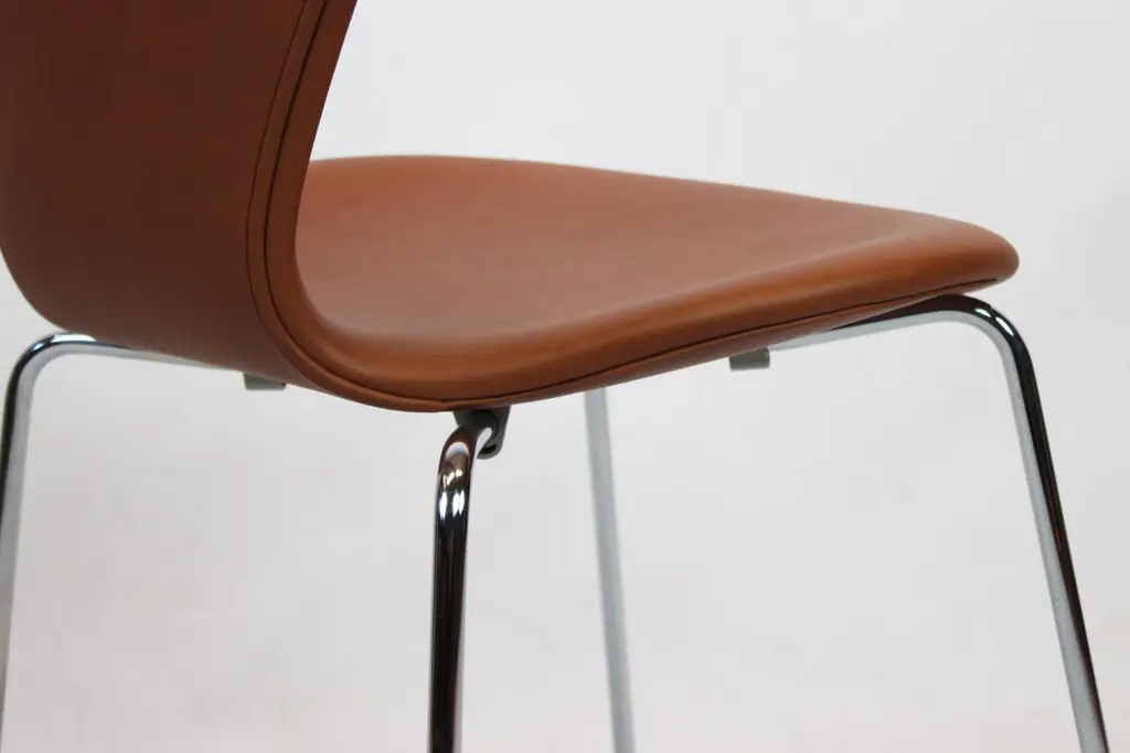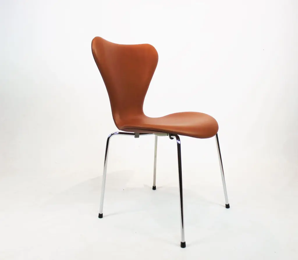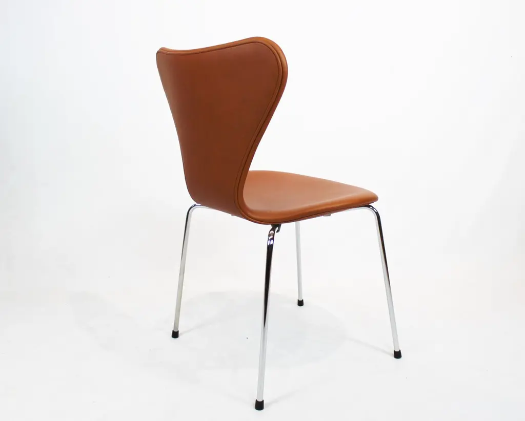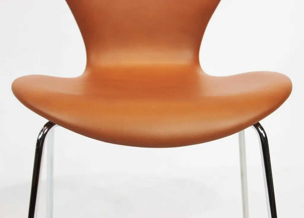 Exquisite Set of Four Series Seven Chairs, Model 3107, Wrapped in Luxurious Cognac Leather, a testament to Arne Jacobsen's visionary design.These chairs, a classic manifestation of Arne Jacobsen's iconic Series Seven design, are upholstered in sumptuous cognac leather, exuding sophistication and timeless appeal. Crafted to perfection, these chairs epitomize elegance and comfort.The warm tones of the cognac leather beautifully complement the iconic silhouette of the Model 3107 chairs, enhancing their organic form and classic lines. The chairs offer a harmonious balance between style and functionality, embodying Jacobsen's innovative approach to design.The supple and inviting cognac leather adds a touch of richness, inviting one to experience both luxury and ergonomic seating. These chairs seamlessly blend into various interior styles, adding a touch of timeless elegance to any setting.For admirers of Jacobsen's design legacy or those seeking refined seating with a touch of vintage allure, this set of four Series Seven Chairs in cognac leather stands as a symbol of enduring craftsmanship and sophistication. Please feel free to inquire for additional details.We also sell sets of 6, 8, 10 & 12. Simply send us a private message with your questions and we can get you a quote.