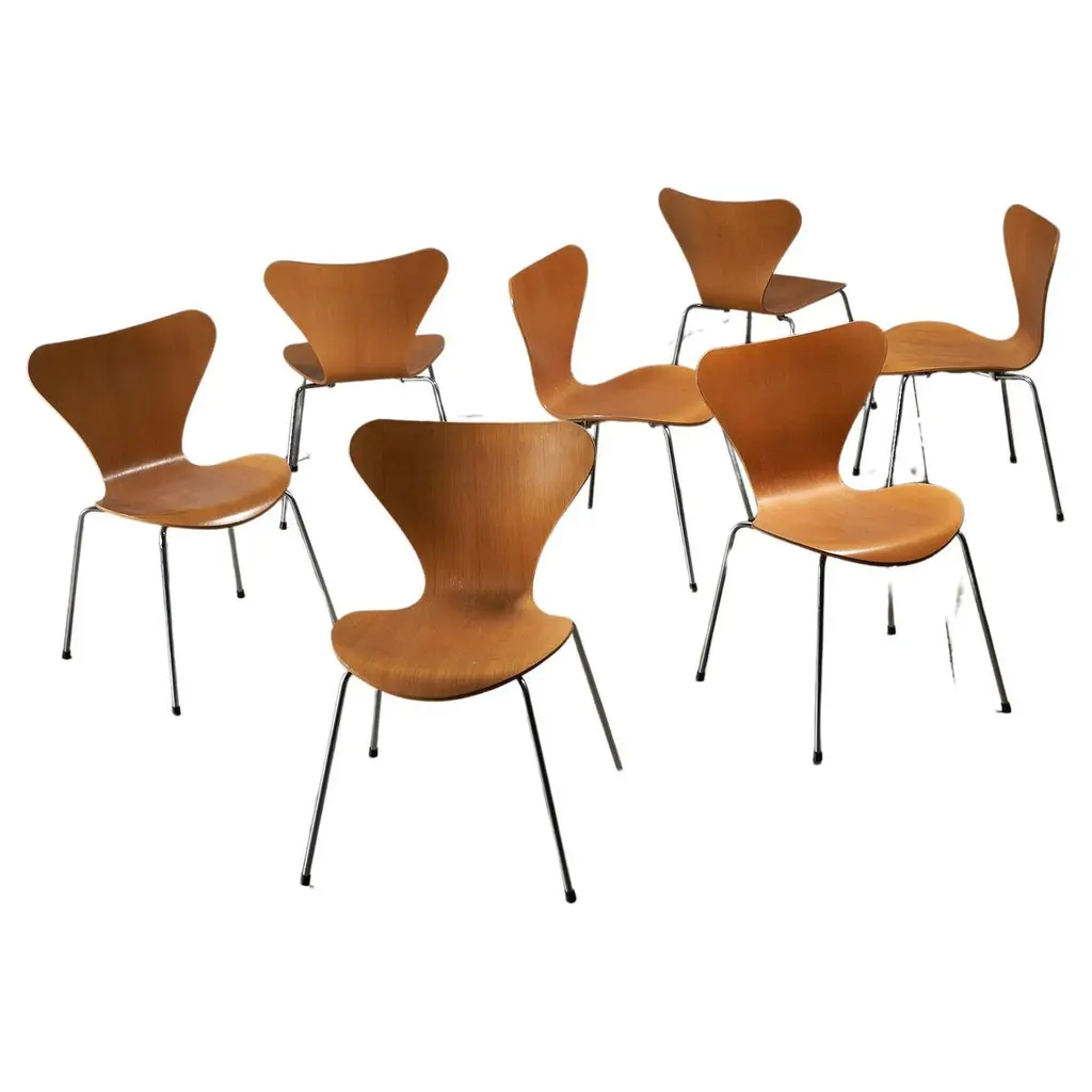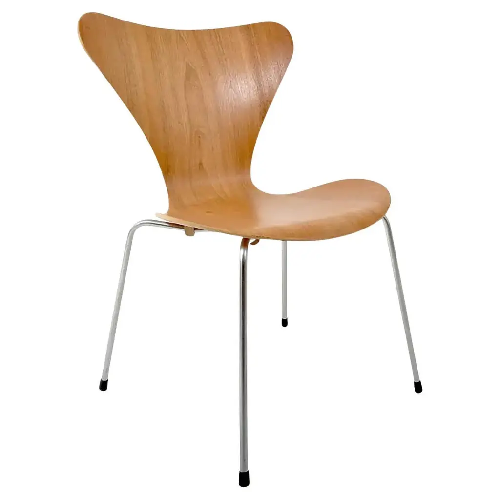 Exquisite Set of Four Model 3107 Seven Chairs, a testament to Arne Jacobsen's iconic design, meticulously crafted in teak by Fritz Hansen.These chairs stand as a pinnacle of mid-century design, showcasing the visionary elegance of Arne Jacobsen's celebrated Seven chair. Crafted with precision from teak, renowned for its durability and warm, rich tones, these chairs embody both timeless sophistication and exceptional craftsmanship.The iconic silhouette of the Model 3107 chairs, with its gracefully curved backrest and minimalist profile, merges seamlessly with the beauty of the teak wood. Each chair embodies a blend of comfort and style, a hallmark of Jacobsen's ergonomic design principles.The set of four chairs serves as a quintessential representation of Danish modernism, inviting warmth and understated elegance into any space. The teak's natural grain and luster further enhance the chairs' aesthetic appeal, making them a focal point of refined taste.For enthusiasts of mid-century design or those seeking a statement piece with an organic touch, this set of four Model 3107 Seven chairs in teak stands as a remarkable example of timeless design excellence. Please feel free to inquire for further details.Measurements H - 78 cm, W - 50 cm, D - 52 cm and SH - 42 cm.