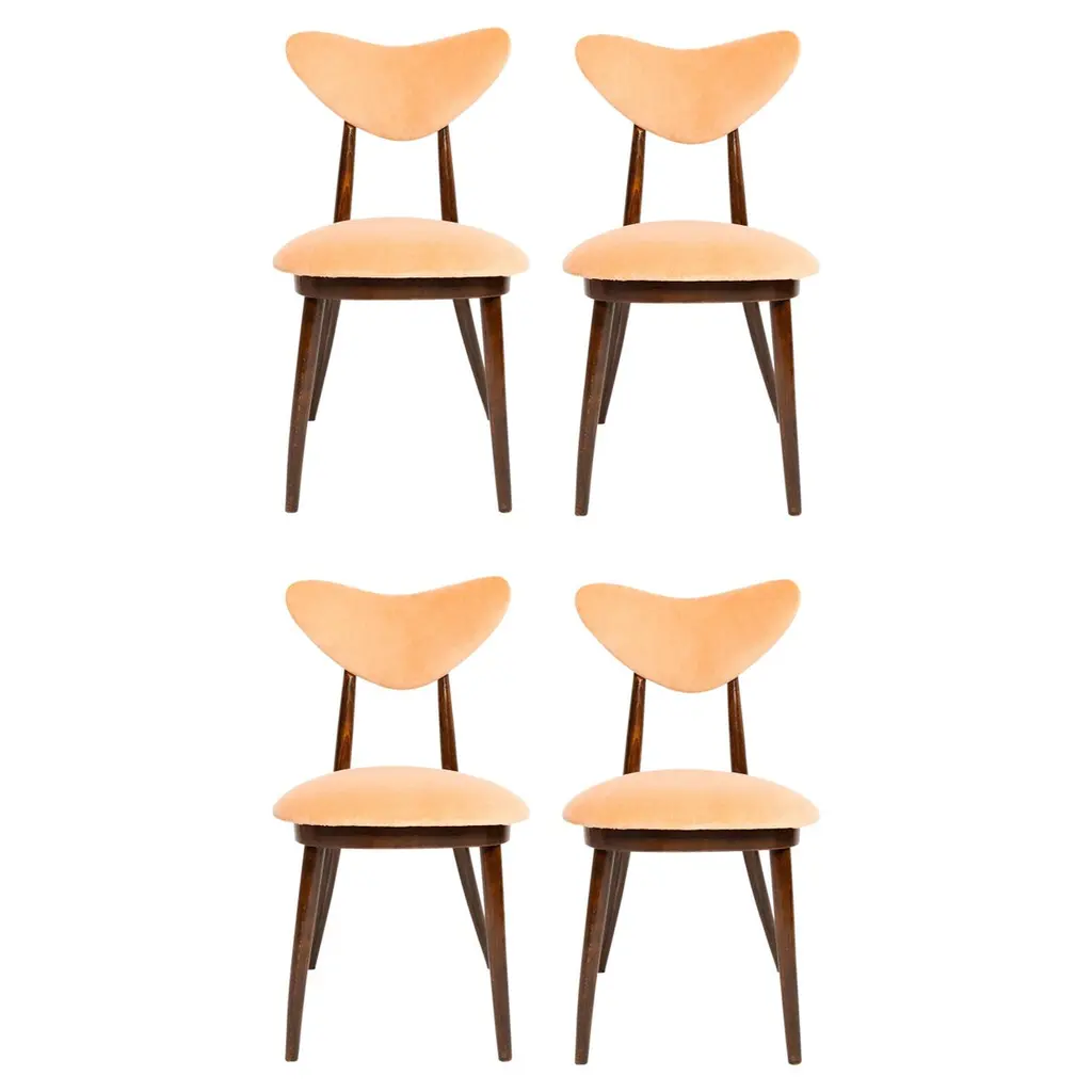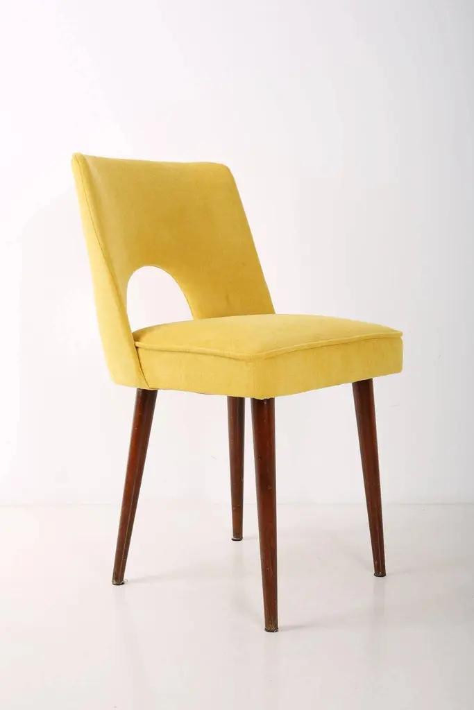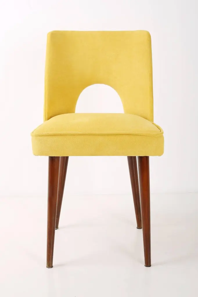 Four beautiful chairs type 1020 colloquially called "shells" produced by the Slupsk centre of Furniture Industry in the 1960s. They are after full renovation upholstery and carpentry. The chairs are covered with high-quality yellow fabric. We can prepare chairs in a different color of fabric and wood.
