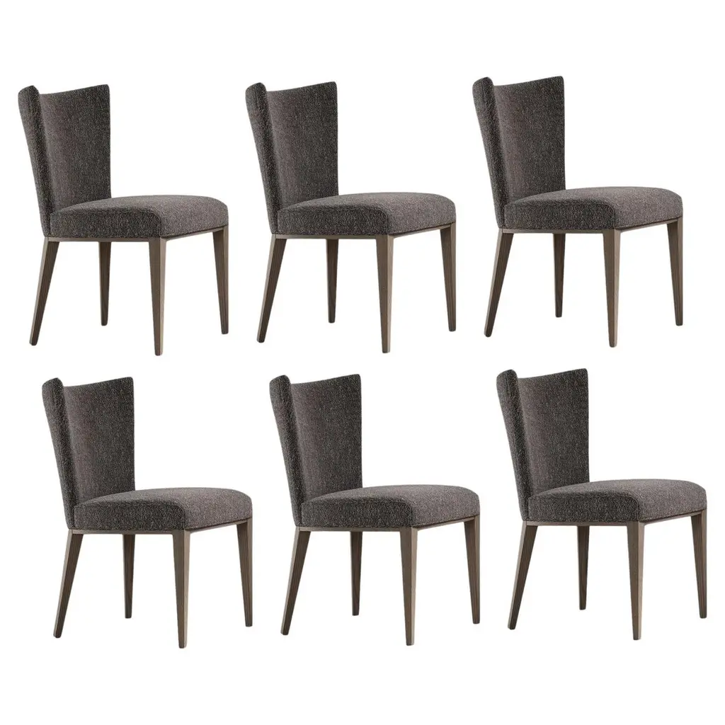 Set Of Seven Gray Boucle 'Shell' Chairs, Dark Beech Wood, Europe, 1960s