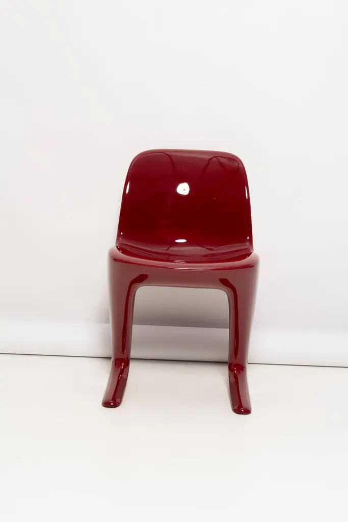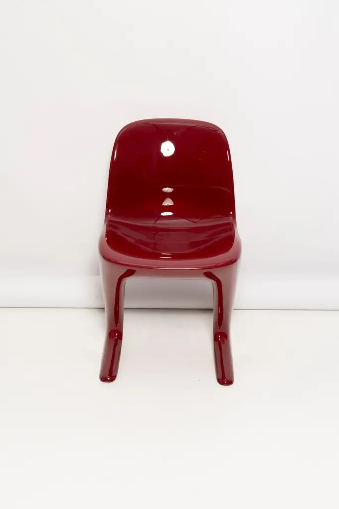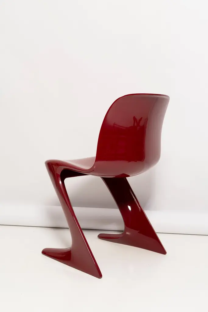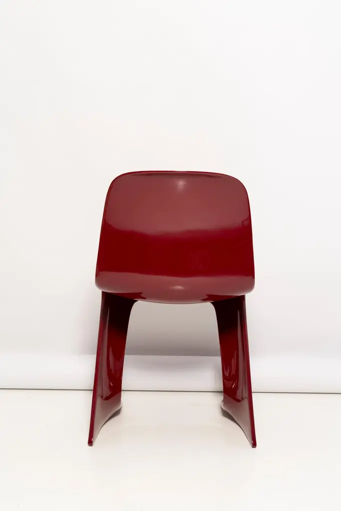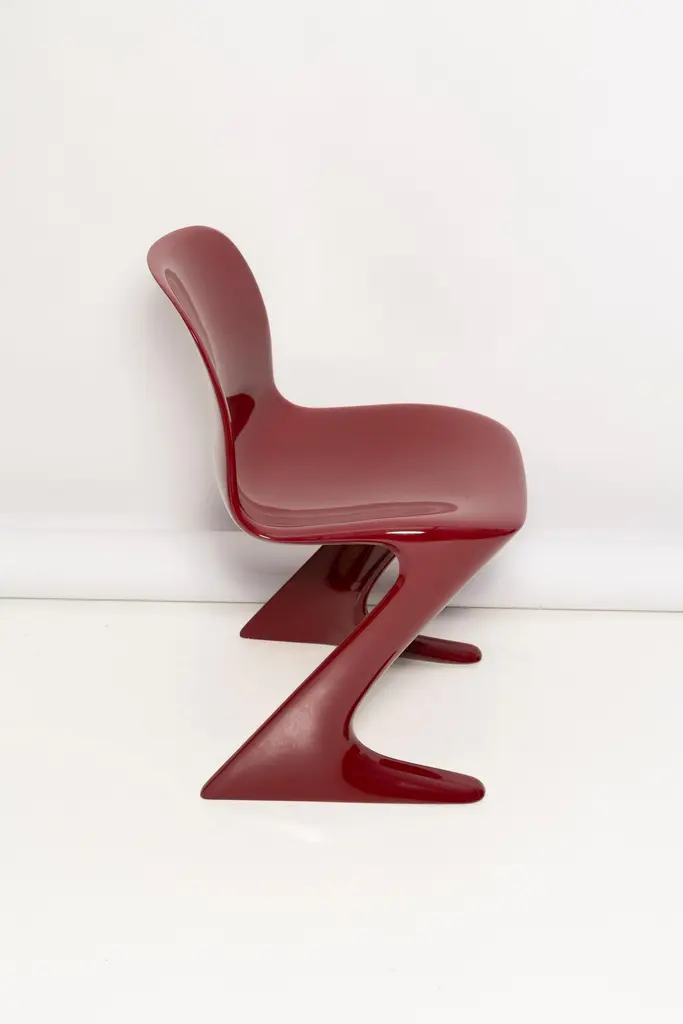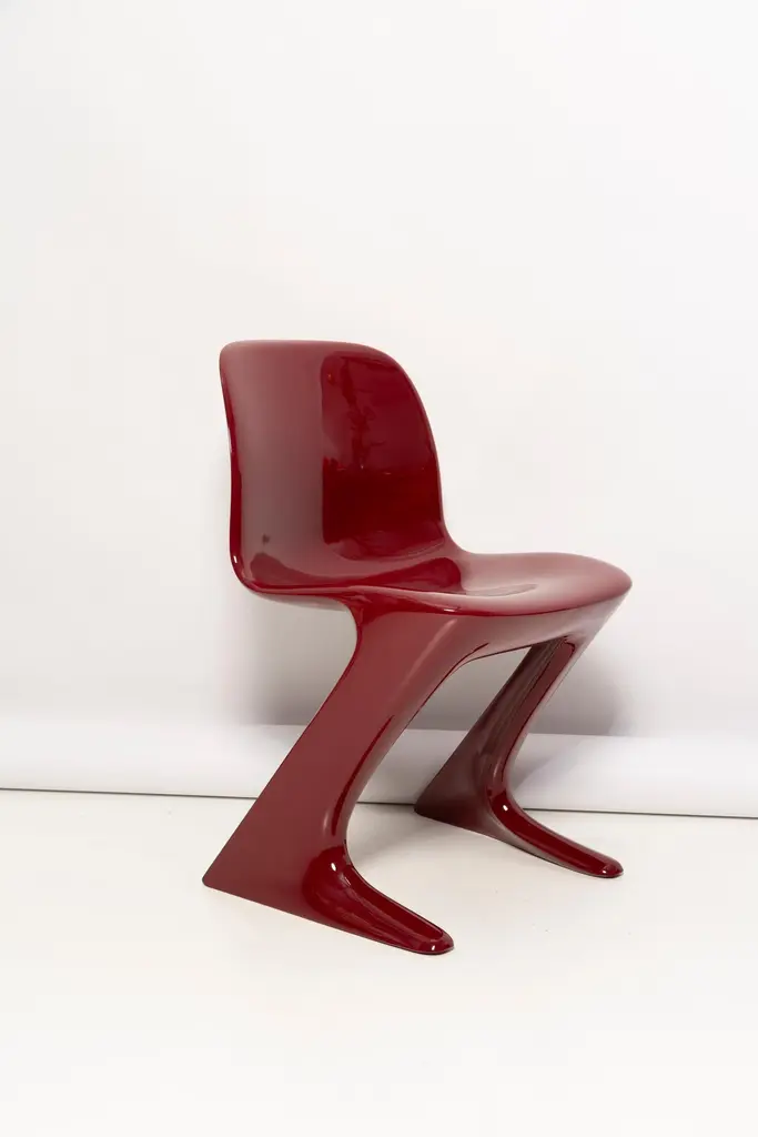This model is called Z-chair. Designed in 1968 in the GDR by Ernst Moeckl and Siegfried Mehl, German Version of the Panton chair. Also called kangaroo chair or variopur chair. Produced in eastern Germany.Chair is after full renovation, glossy red wine color lacquer (RAL 3005). The chair is extremely comfortable! Beautiful organic shape make them timeless and fits to every interior. We can prepare also set of 4 or 8 or more, also in another RAL/Pantone color.