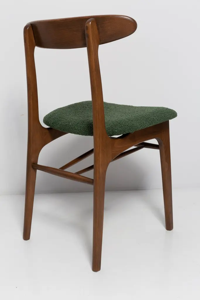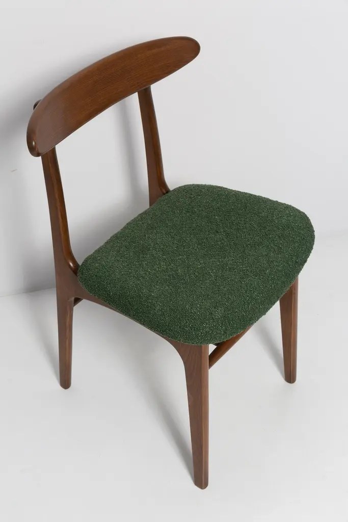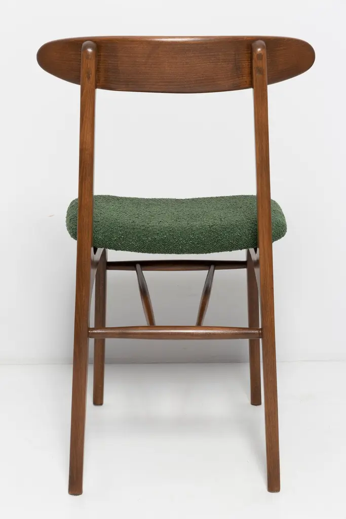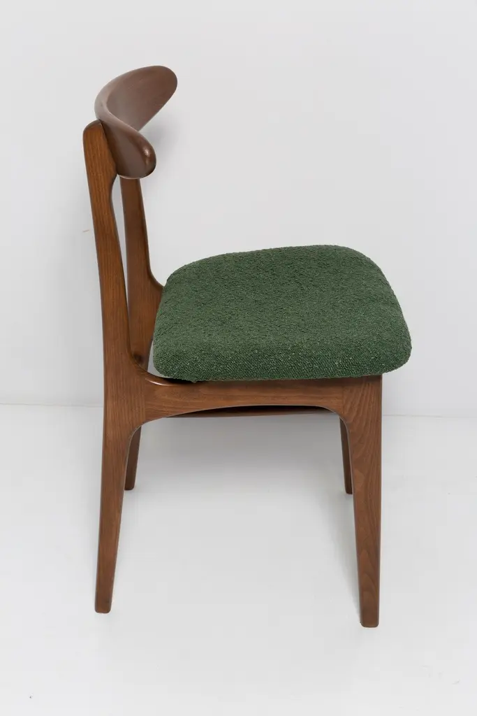 Set Of Six Mid Century Chairs Green Boucle, Walnut, Rajmund Halas, Poland, 1960s