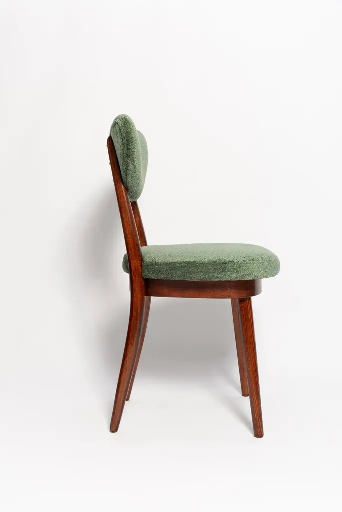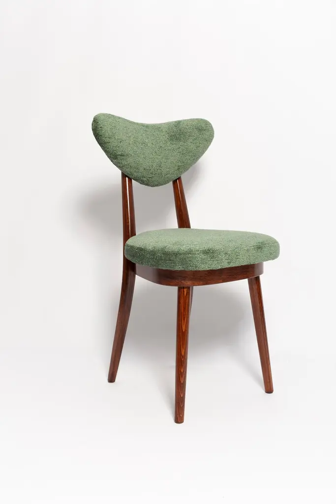 Dining chair called "Heart" with dark brown walnut stained beech legs and fully upholstered seat and back in beautiful velvet italian fabric.This chair can be customized to your specifications or COM. Wood, stain, finish, fabric and custom dimensions options are available. Check the last picture with color samples. This is vintage chair after professional renovation. Designed in 1960s in Poland.