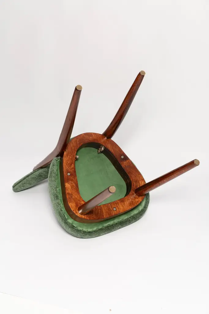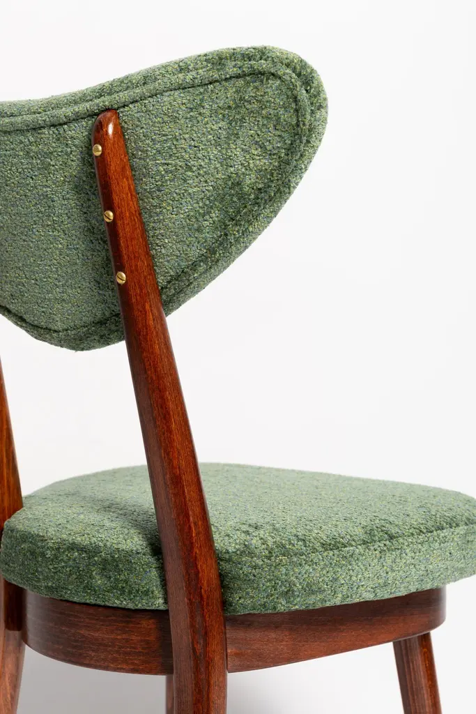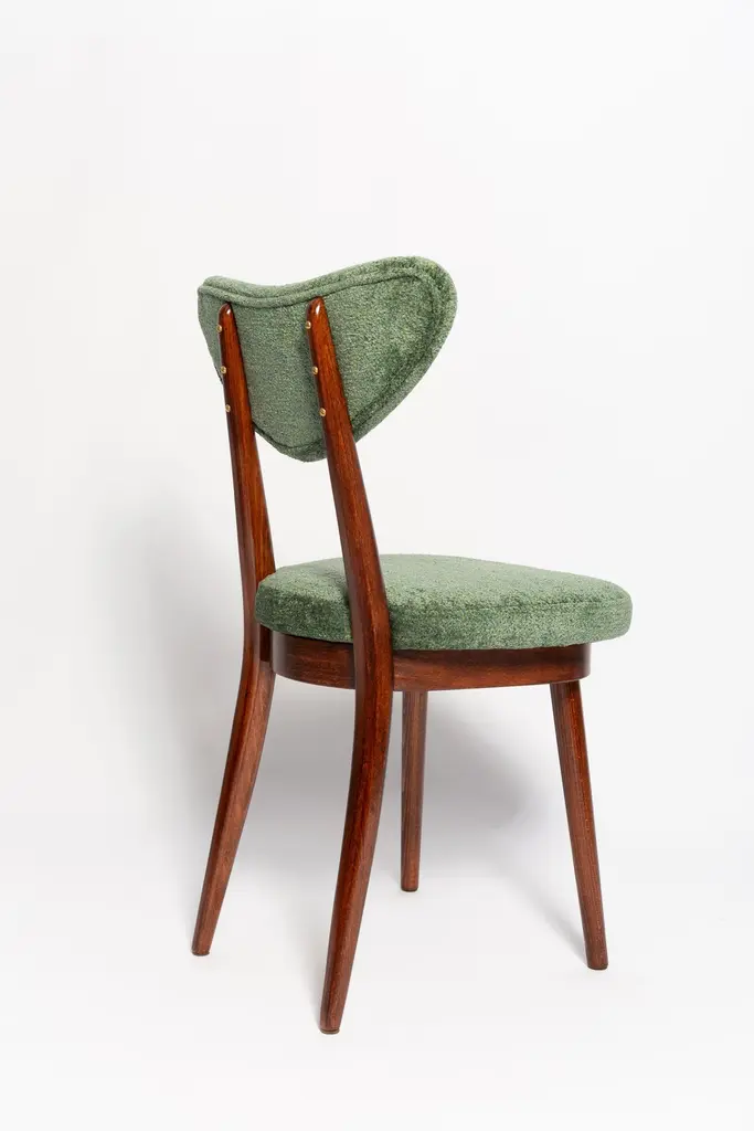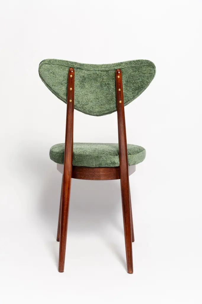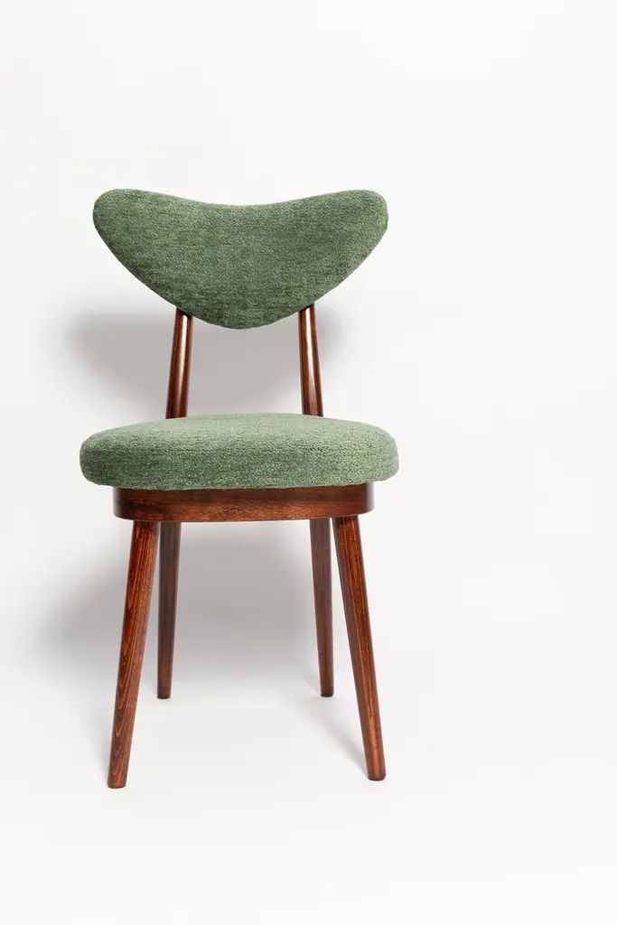 Set Of Six Mid Century Heart Chairs, Green Velvet, Dark Wood, Europe 1960s