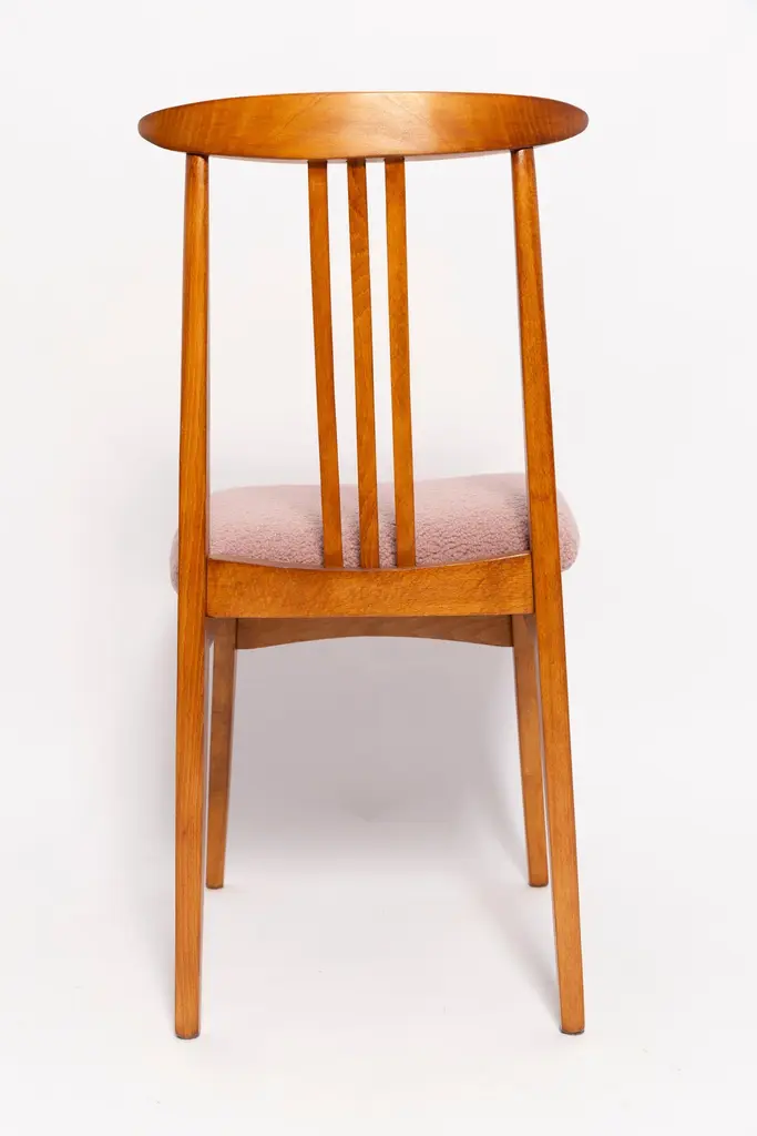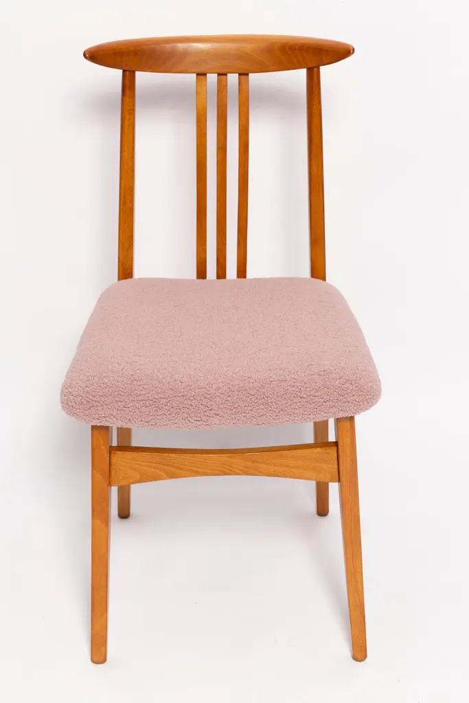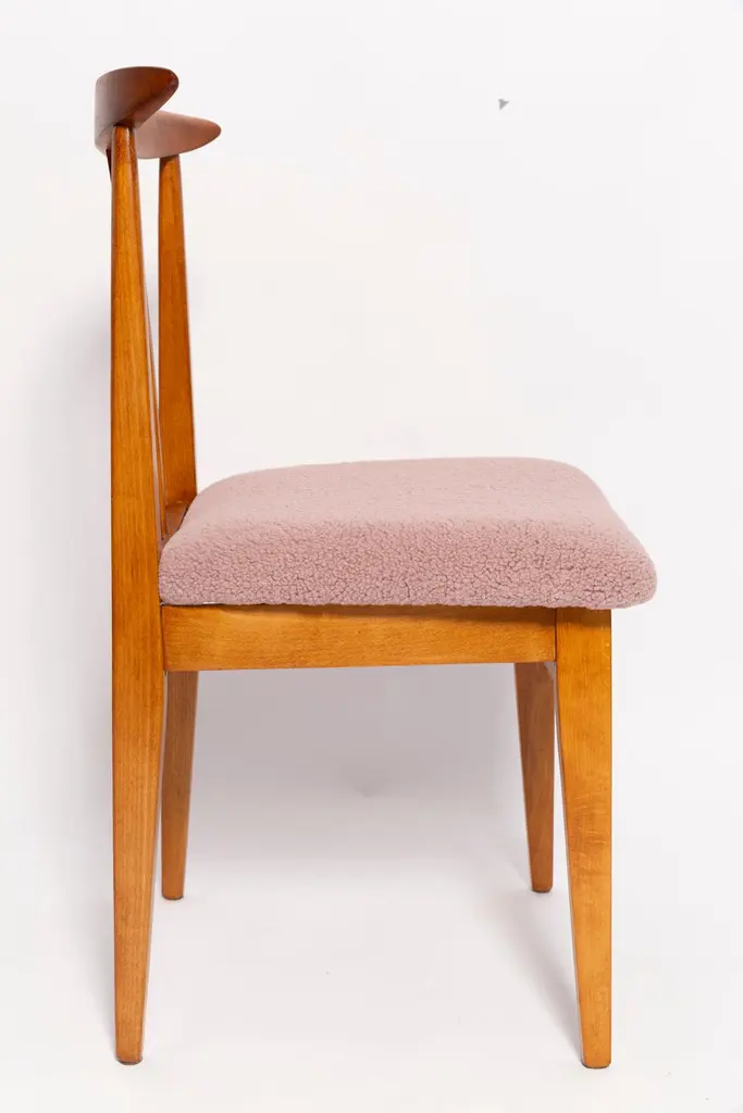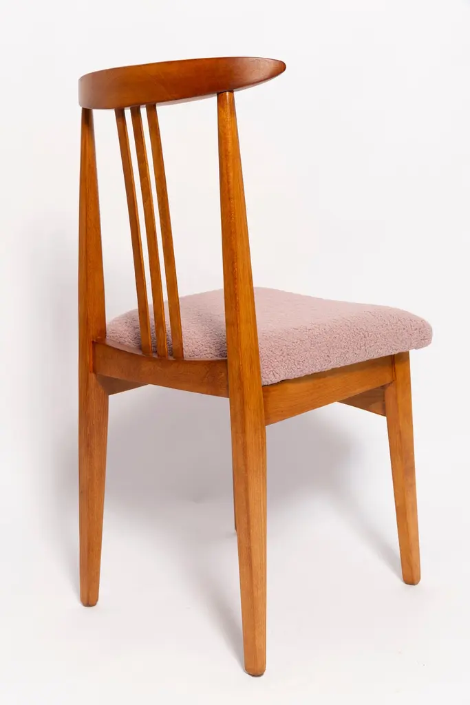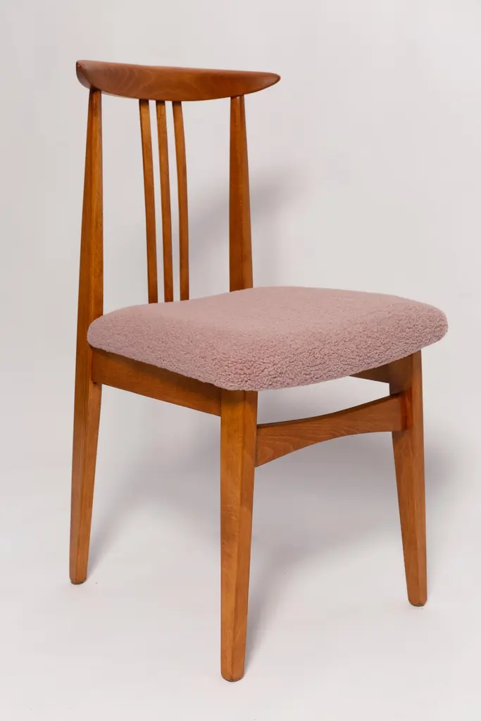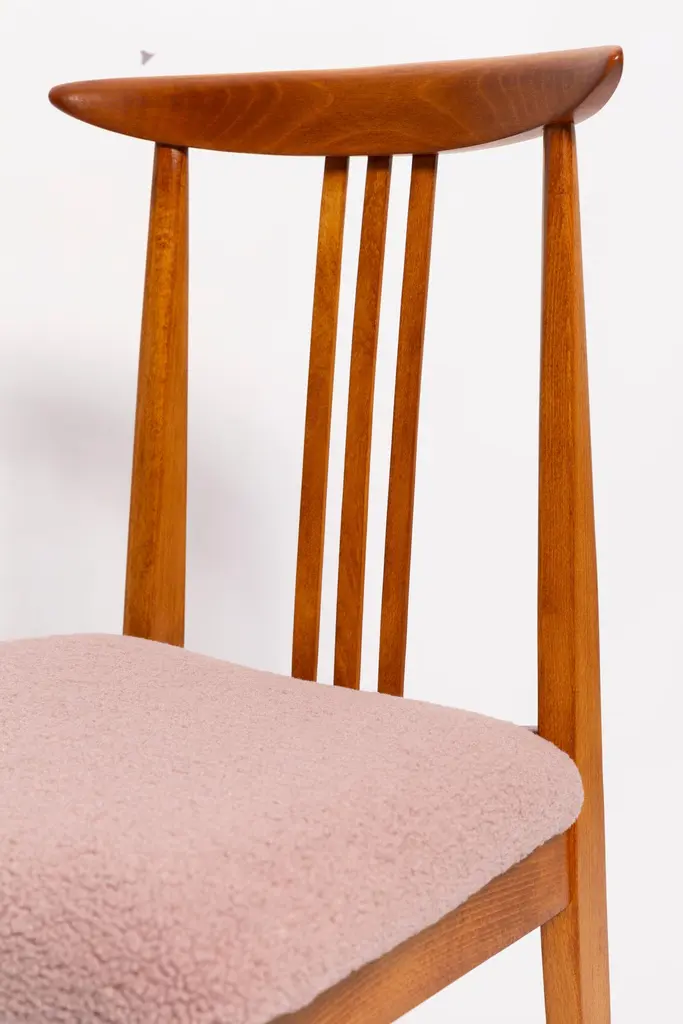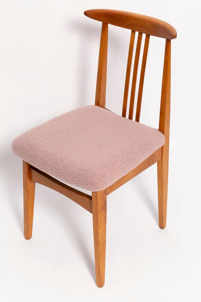 A beautiful beech chair designed by M. Zielinski, type 200 / 100B. Manufactured by the Opole Furniture Industry Center at the end of the 1960s in Poland. The chair is after undergone a complete carpentry and upholstery renovation. Seats covered with high-quality italian pink blush boucle fabric (color 03). Beech wood is after full refreshing, varnished in dark brown walnut color lacquer. This model of chair have very nice and organic shape. They have amazing form. Even in small size the Zielinski's chair is very comfortable. We highly recommend them to every type of interior. ecommend them to every type of interior. We can prepare also bigger sets in every color of wood and boucle. Please have a look on the last picture. Waiting time up to 3 weeks. Cheap delivery guaranteed.Here set of six is available.
