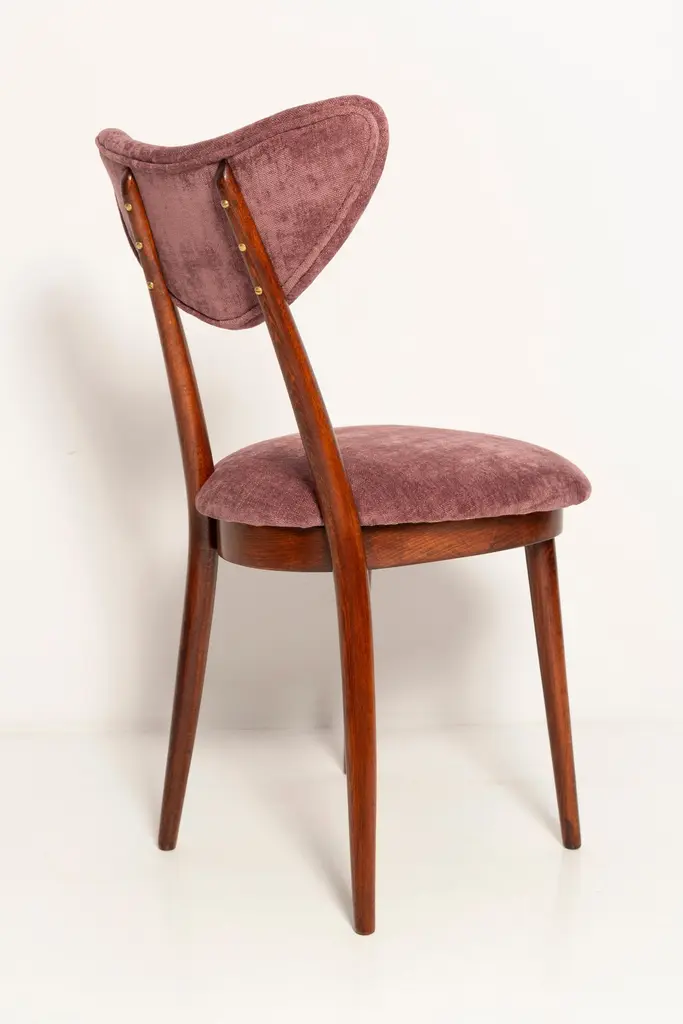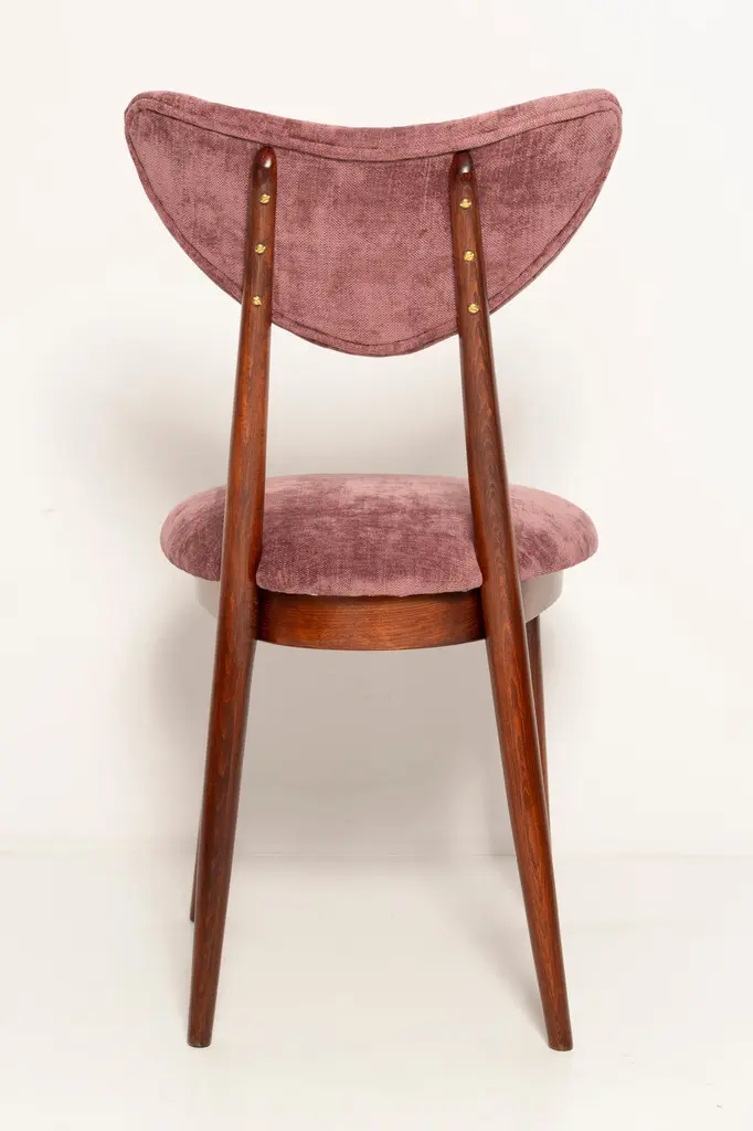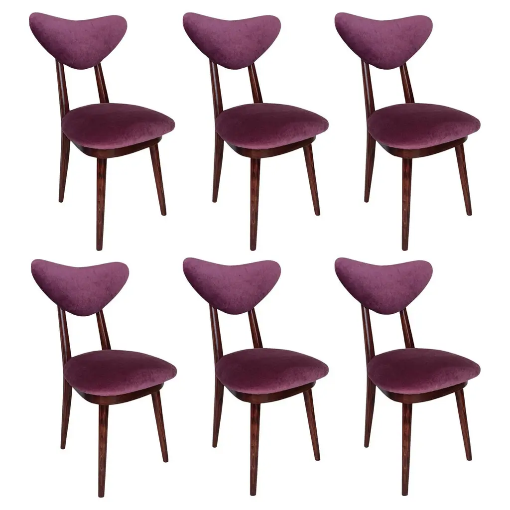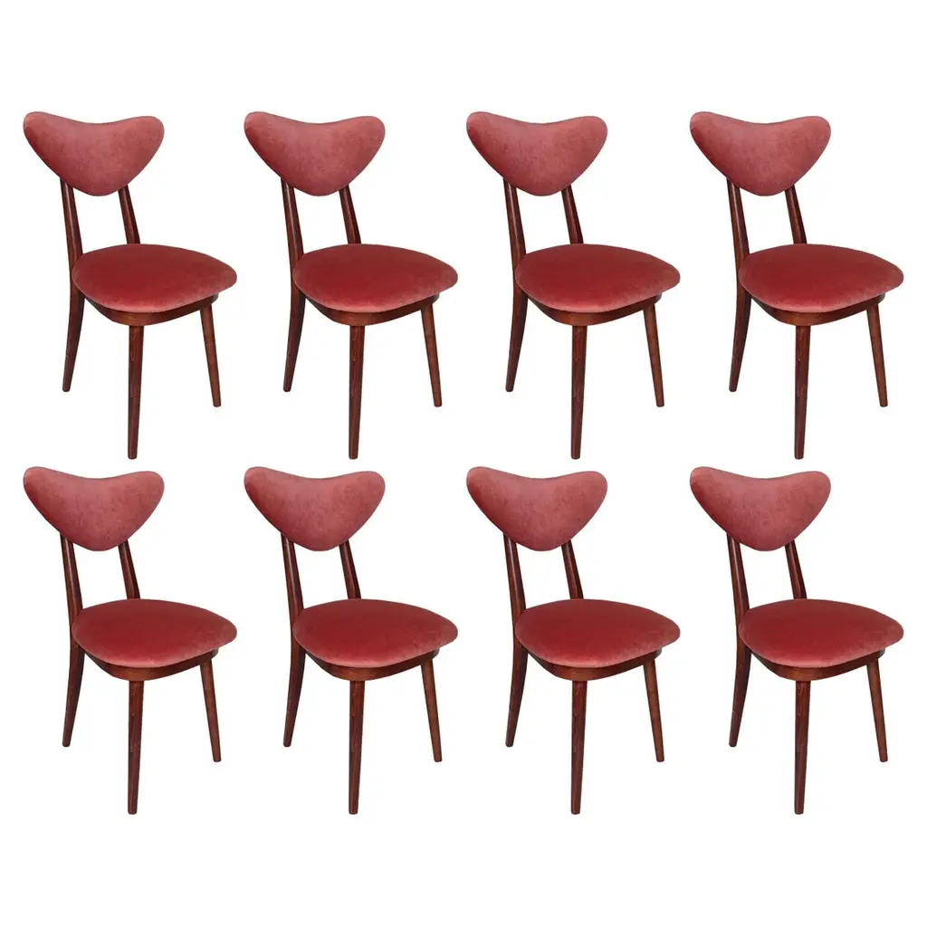 Set Of Six Midcentury Burgundy Pink Velvet Heart Chairs, Europe, 1960s