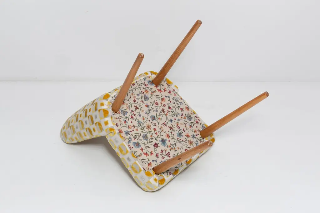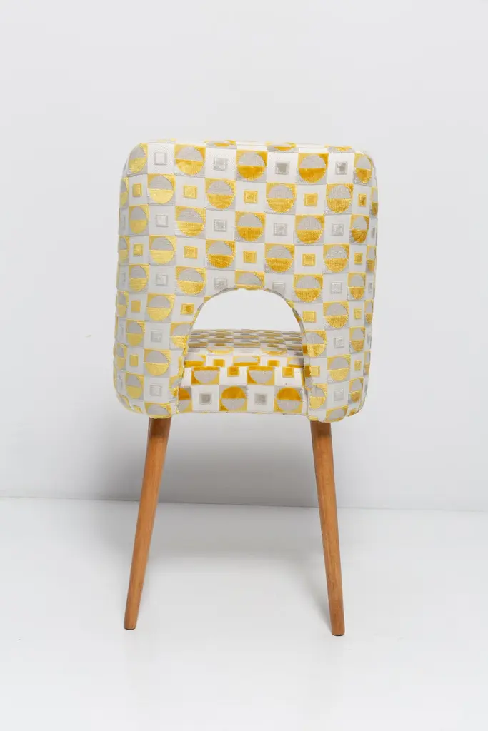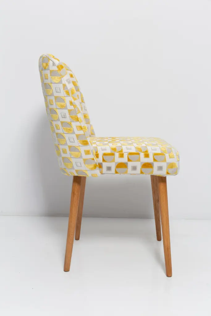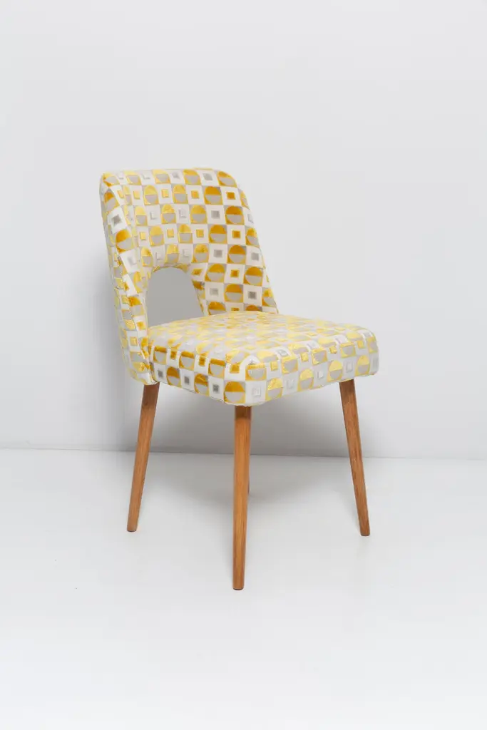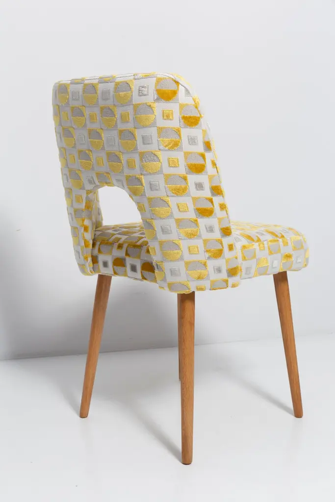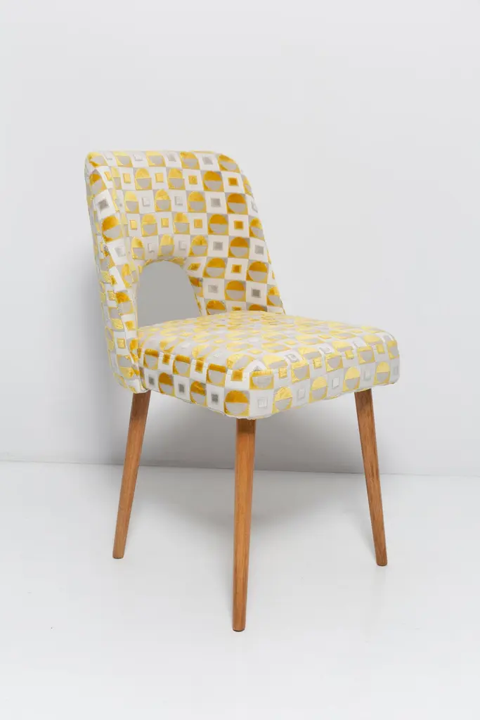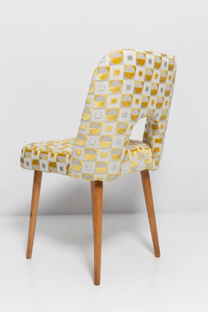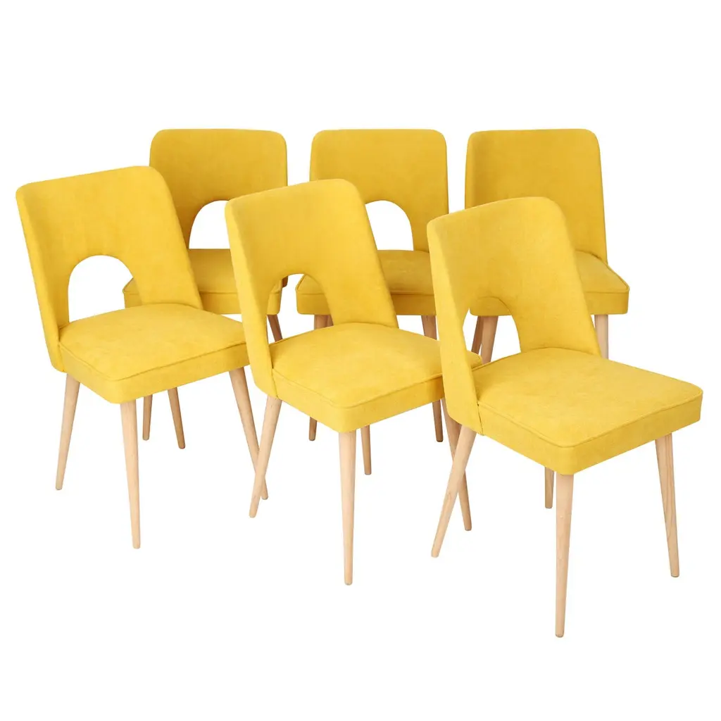 Six beautiful chairs type 1020 colloquially called "shells" produced by the Slupsk centre of Furniture Industry in the 1960s. They are after full renovation upholstery and carpentry. The chairs are covered with high-quality yellow spanish fabric. We can prepare chairs in a different color of fabric and wood. Please check the last pictures with color samples.