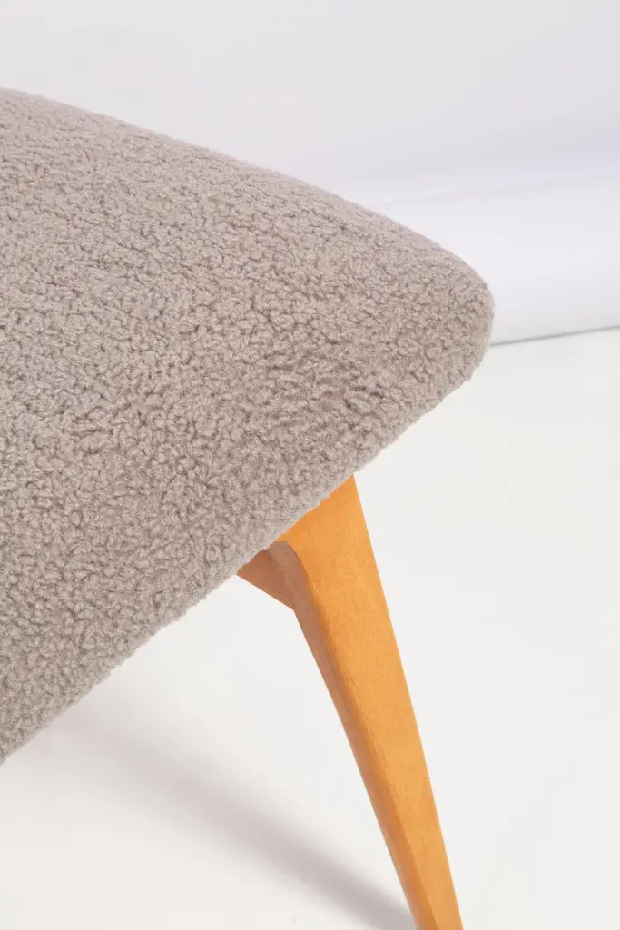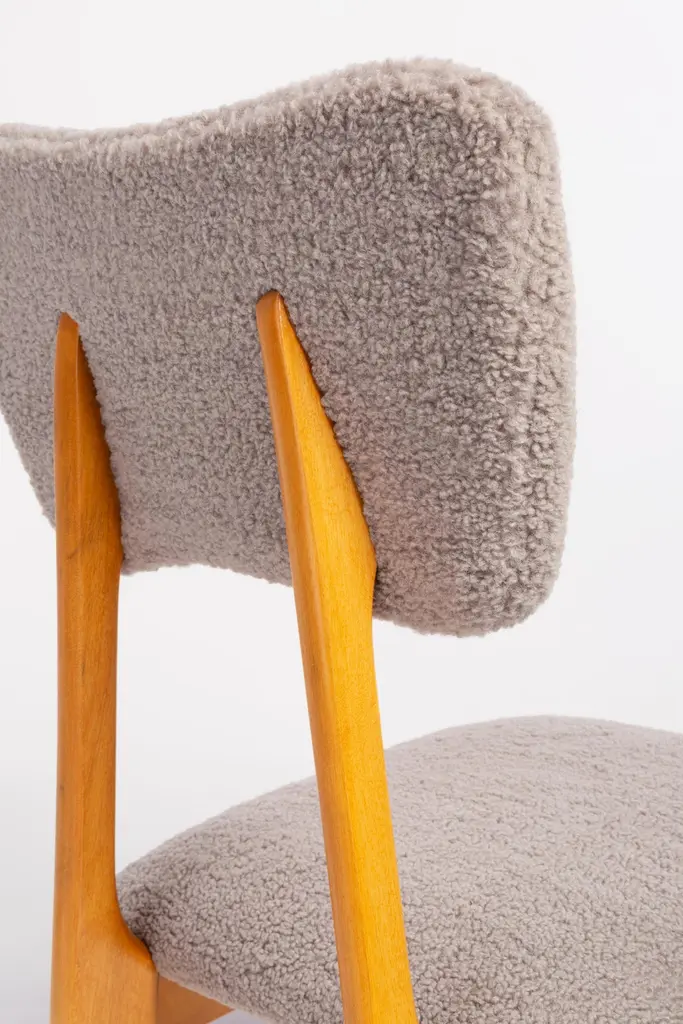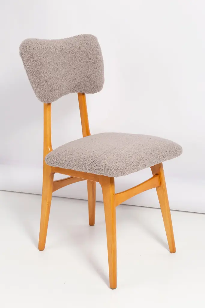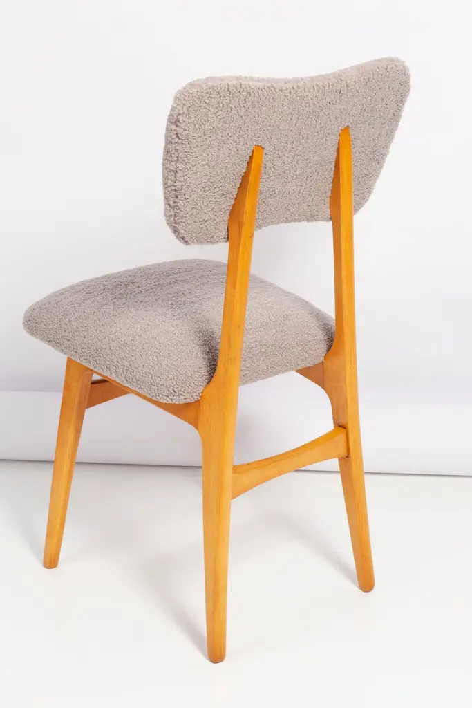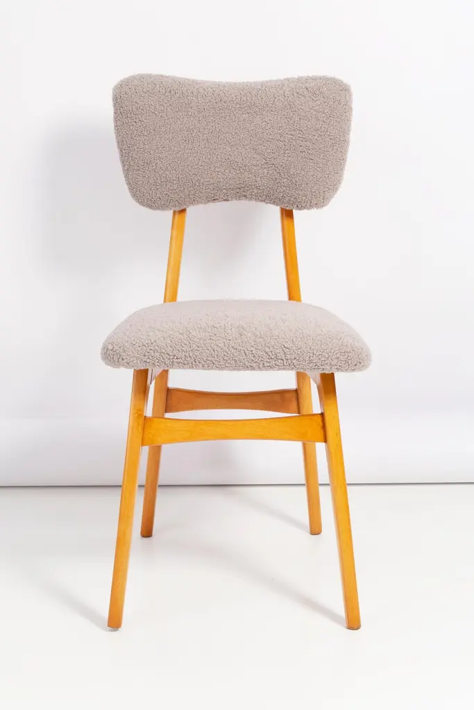Chairs designed by Prof. Rajmund Halas. Made of beechwood. Chairs are after a complete upholstery renovation, the woodwork has been refreshed. Seat and back is dressed in gray, durable and pleasant to the touch boucle fabric. Chairs are stable and very shapely. They was produced in former furniture factory in Goleniów in the 1960s. We can prepare this set in every color of wood and fabric also in bigger sets. Please check the last picture with boucle color samples.