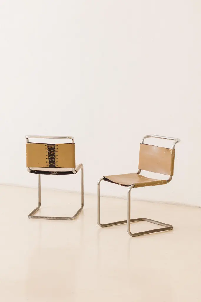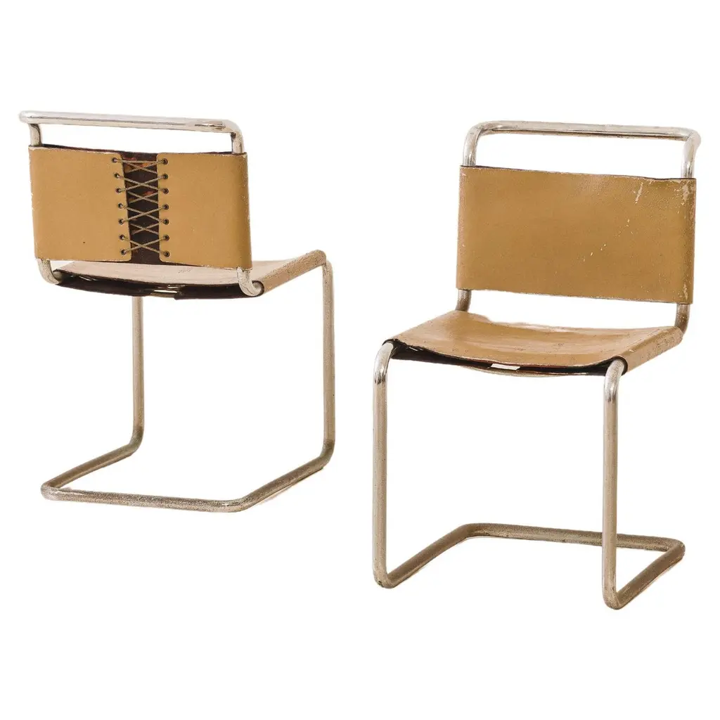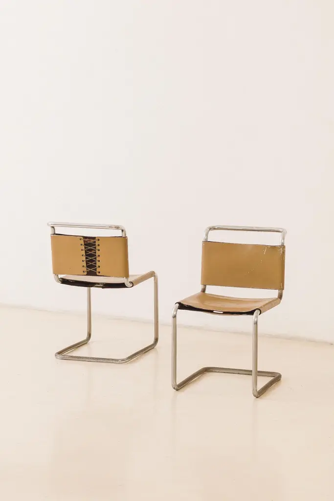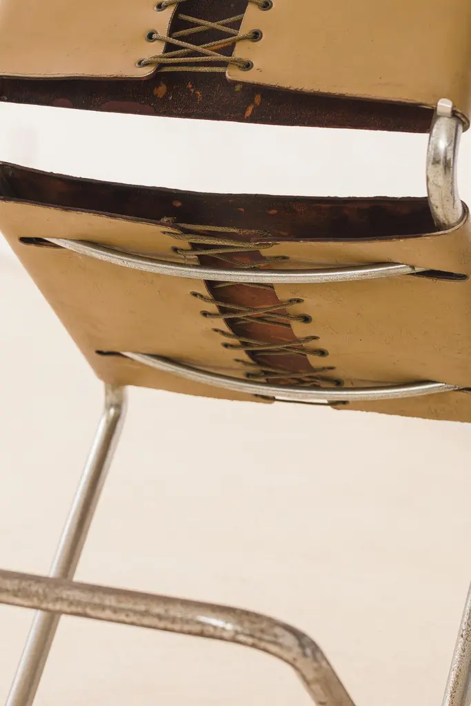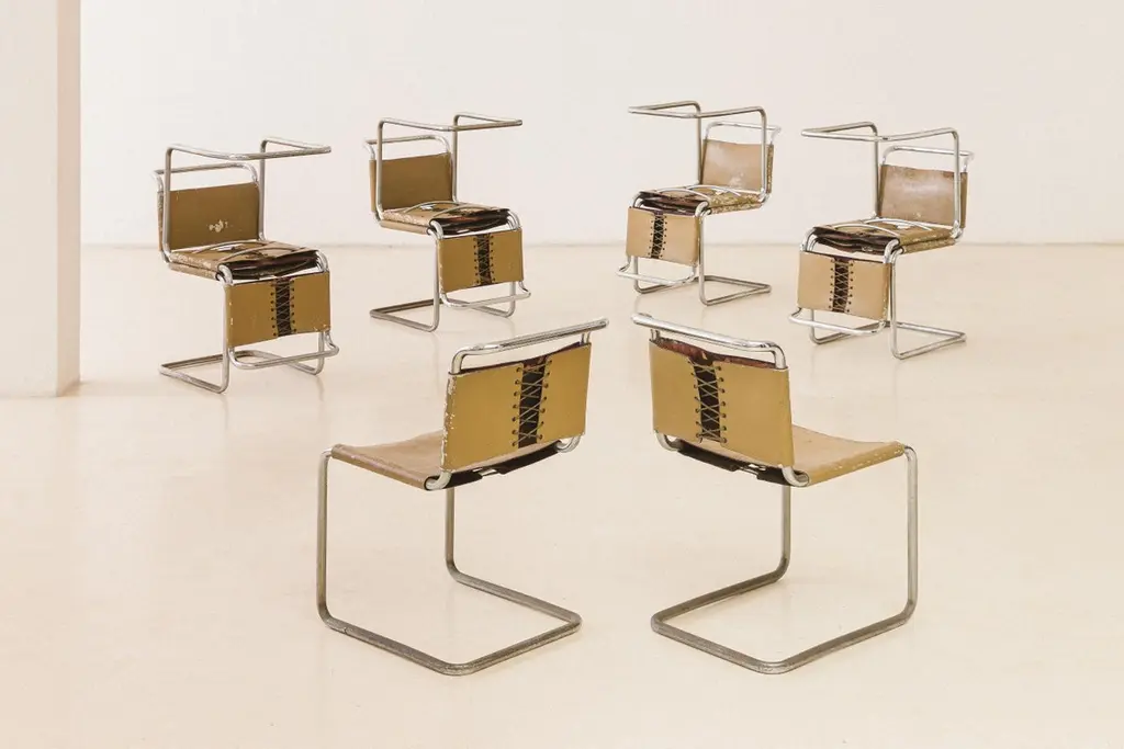 Set Of Ten B33 Chairs Design By Marcel Breuer, Iron And Leather, Brazil, 1980