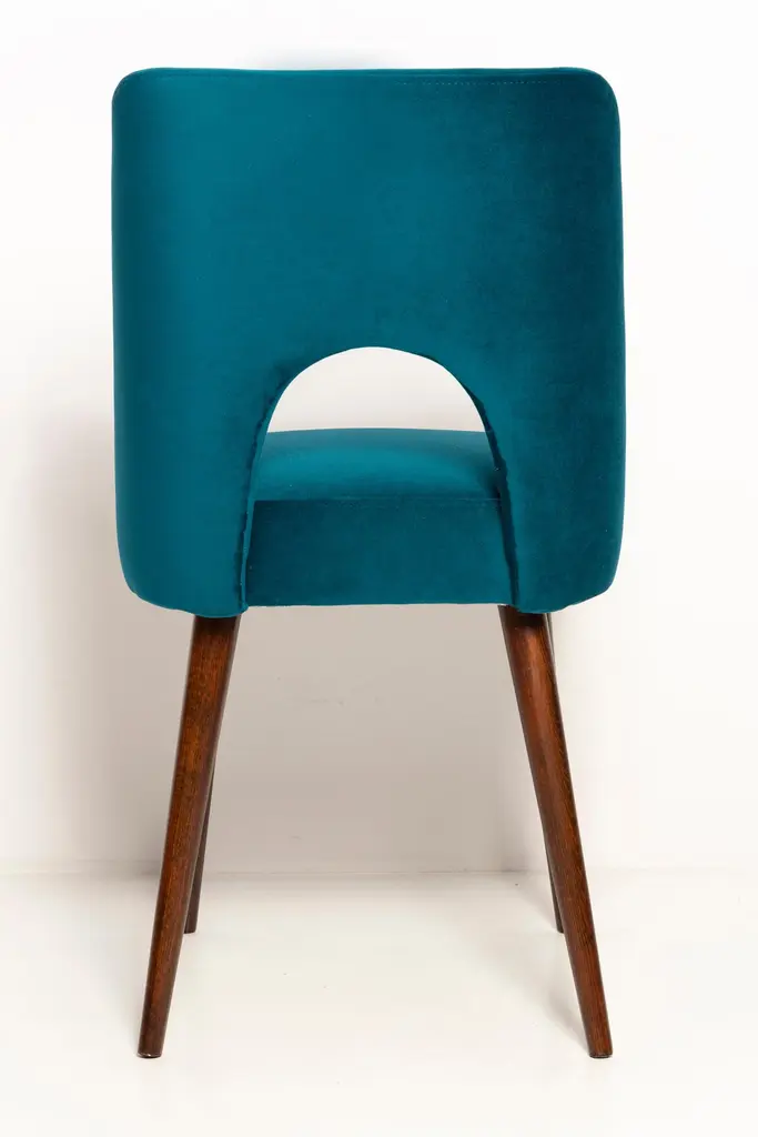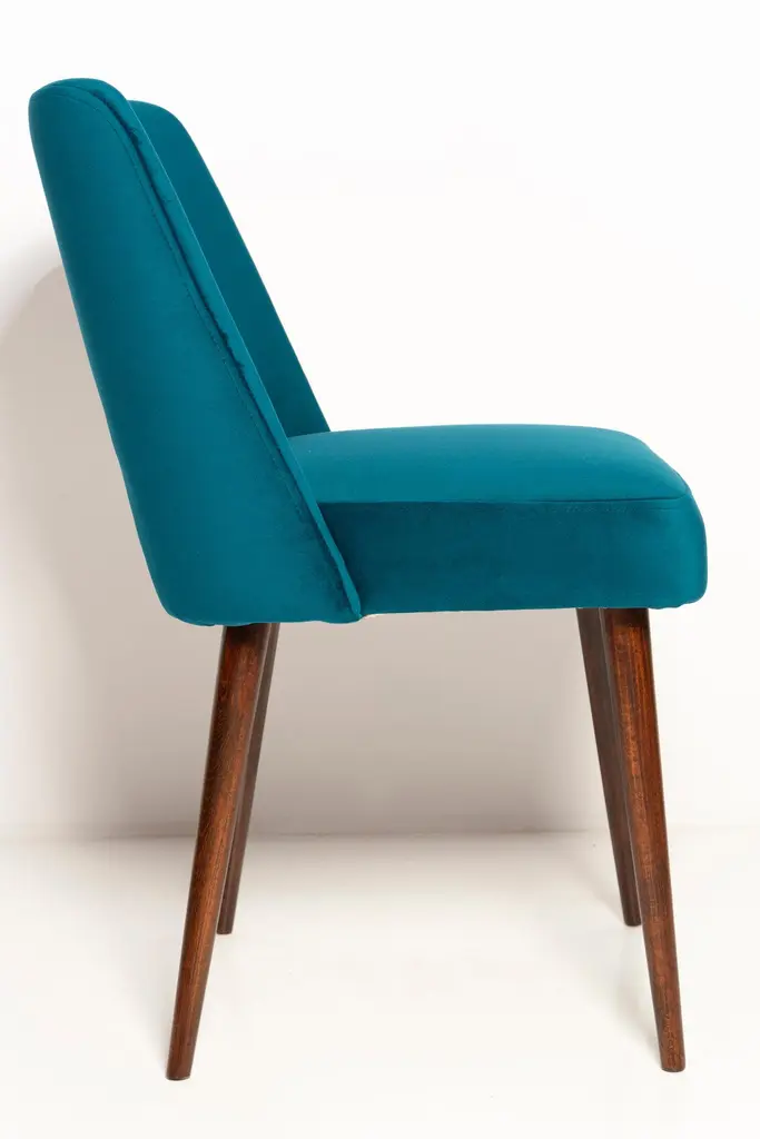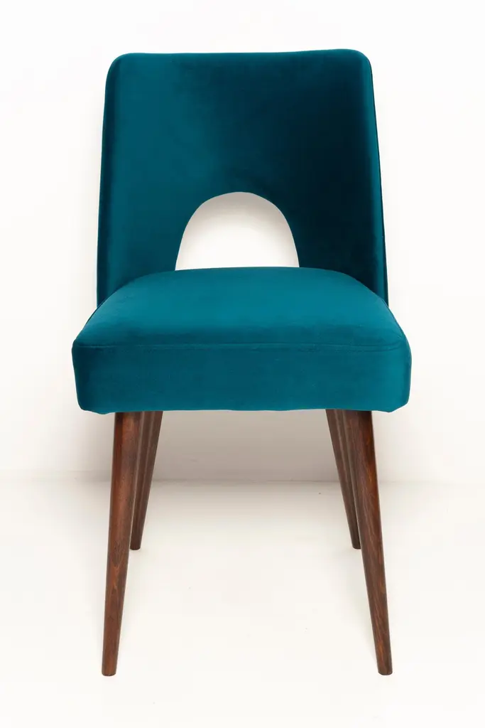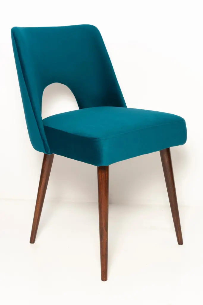 Beautiful chairs type 1020 colloquially called "shell" produced by the Slupsk centre of furniture industry in the 1960s in Poland. They are after full renovation upholstery and carpentry. Seat and back is dressed in blue/green, durable and pleasant to the touch velvet fabric. We can prepare this chair in every color of wood and fabric also in bigger sets. Please check the last picture with velvet color samples.About the fabric:This is a fluffy upholstery fabric, very soft and pleasant to the touch. The fabric is resistant to abrasion, very durable, strong, and at the same time very soft and pleasant to the touch. The fabric is perfect for modern and classic arrangements. Perfect for upholstered furniture, headboards, recesses or accessories for a stylish and elegant interior. Fabric with Cleanboo technology - Limits the absorption of liquids by creating droplets that do not penetrate the fabric. Pet resistant fabric.