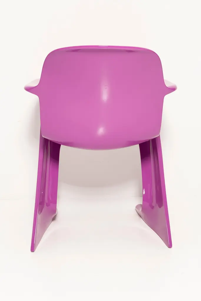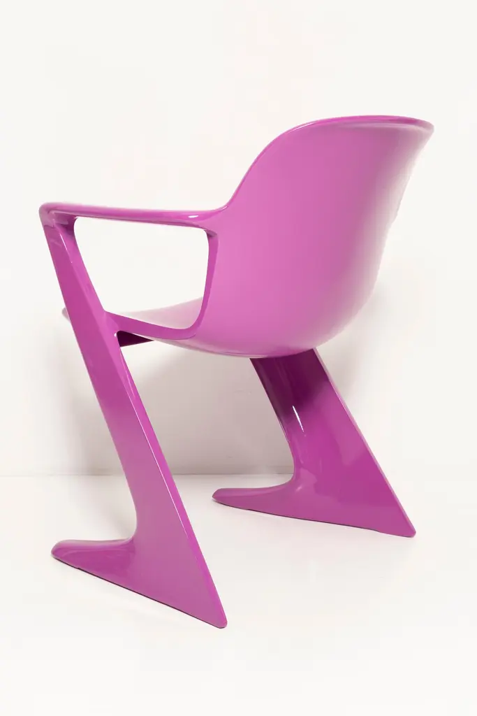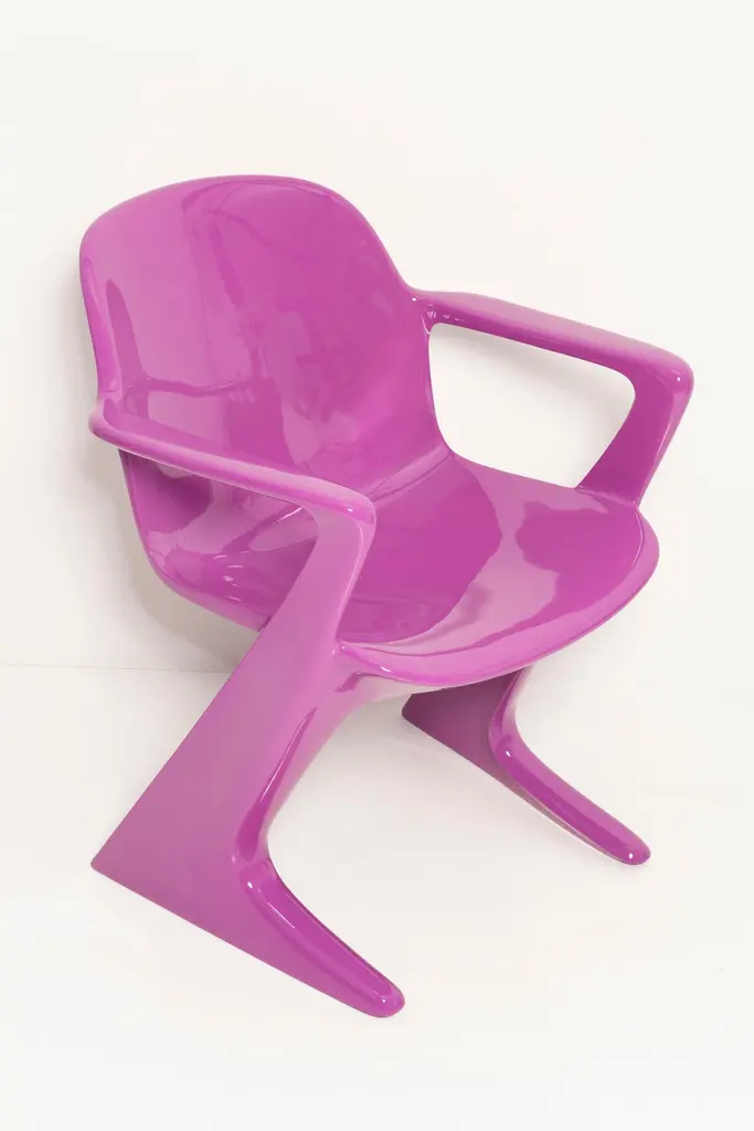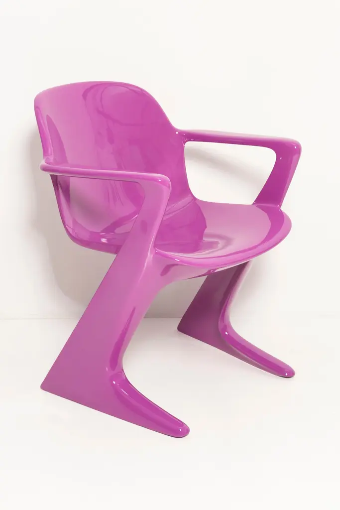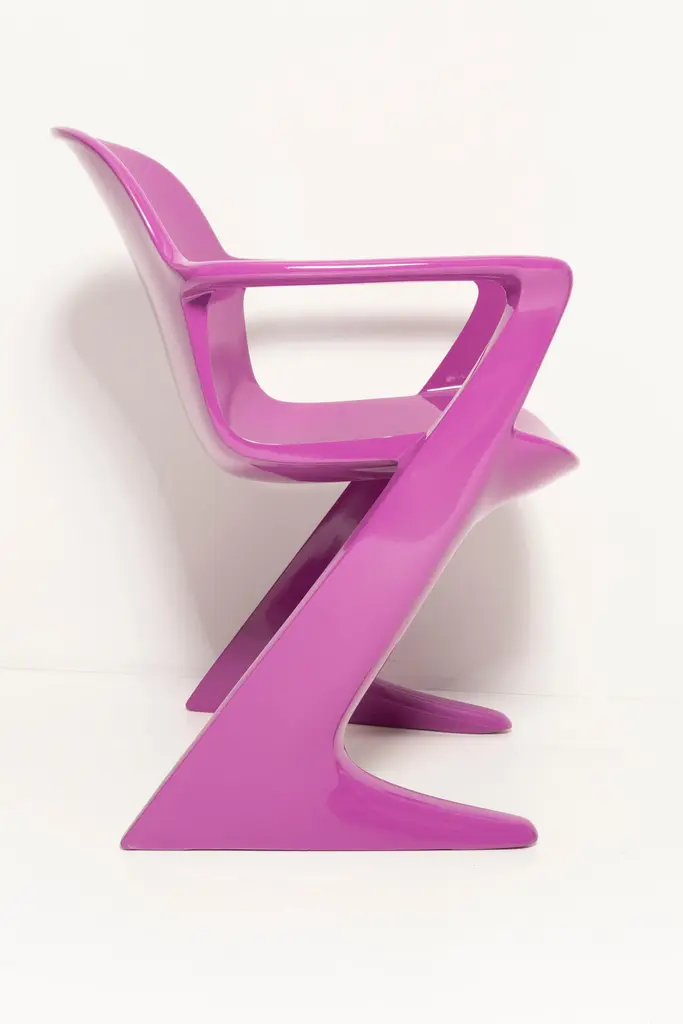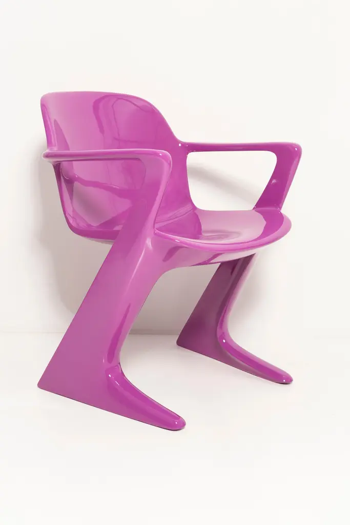 The z.stuhl chair, designed by Ernst Moeckl (1931-2013) in the 1970s, is a cantilever chair made of polyurethane, which is available with and without armrests. In the vernacular, the chair is known by its geometry-related names such as "squatting man", "kangaroo" and "Z-chair". German Version of the Panton chair. Also called kangaroo chair or variopur chair. Produced in eastern Germany.Chair is after full renovation, new glossy lacquer. For this chair we used purple violett color. This model is extremely comfortable! Beautiful organic shape make them timeless and fits to every interior. We can prepare also set of 4 or 6 or more, also in another RAL/Pantone color.Please ask for more information and available options. Waiting time is 2-3 weeks.