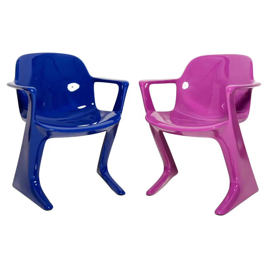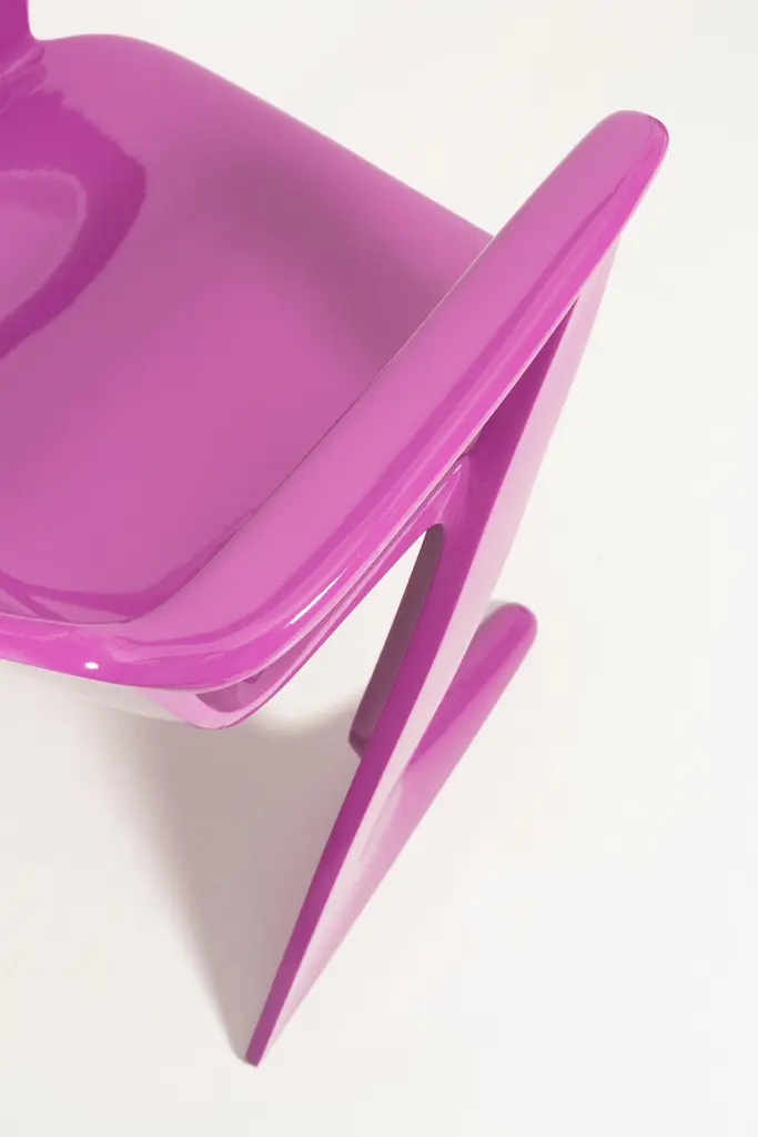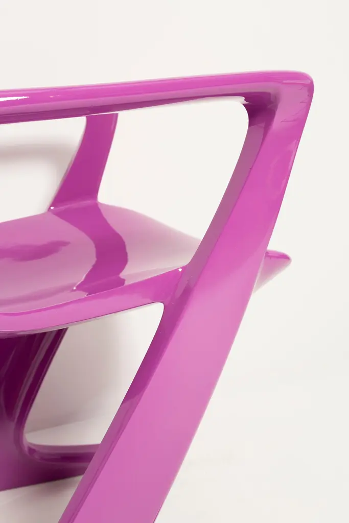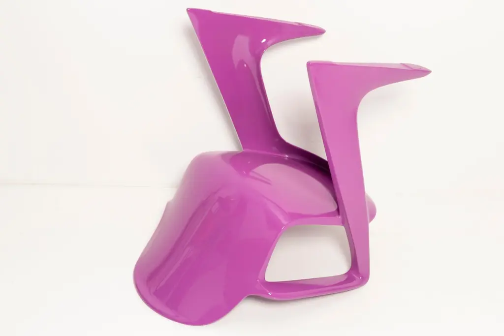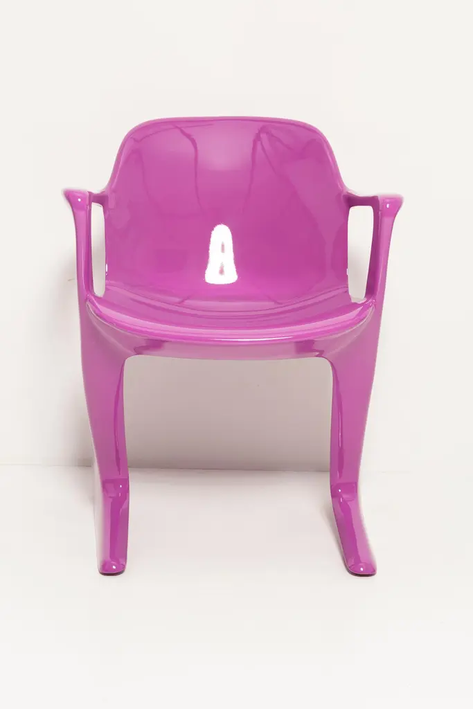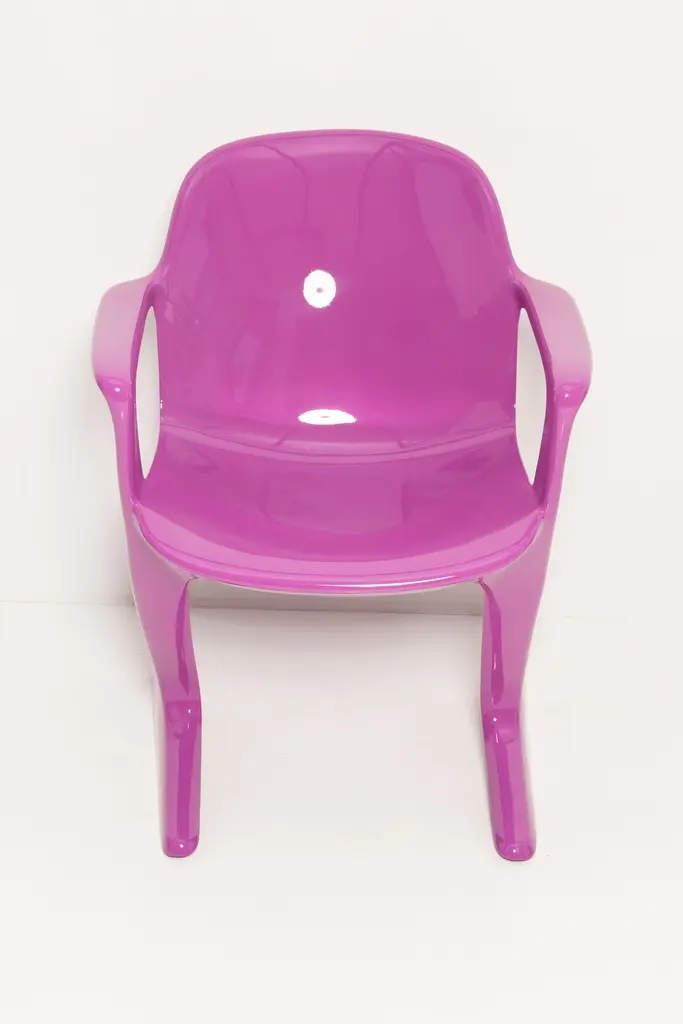 The z.stuhl chair, designed by Ernst Moeckl (1931-2013) in the 1970s, is a cantilever chair made of polyurethane, which is available with and without armrests. In the vernacular, the chair is known by its geometry-related names such as "squatting man", "kangaroo" and "Z-chair". German Version of the Panton chair. Also called kangaroo chair or variopur chair. Produced in eastern Germany.Chair is after full renovation, new glossy lacquer. For this chair we used purple violett color. This model is extremely comfortable! Beautiful organic shape make them timeless and fits to every interior. We can prepare also set of 4 or 6 or more, also in another RAL/Pantone color.Please ask for more information and available options. Waiting time is 2-3 weeks.