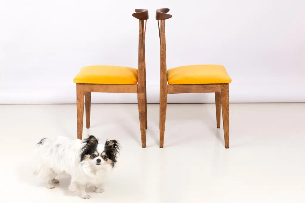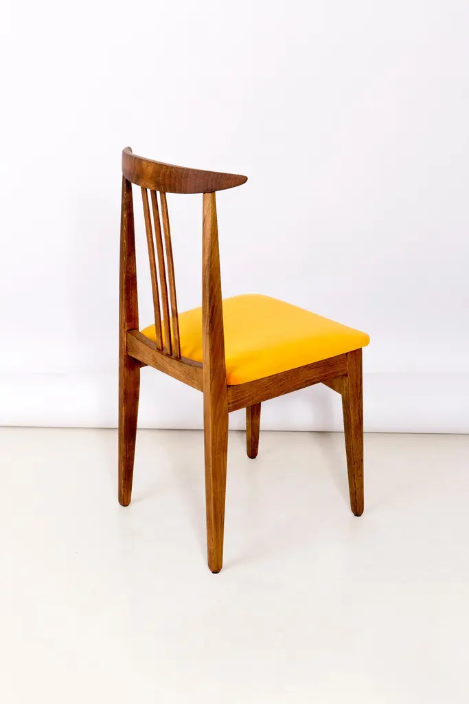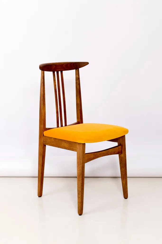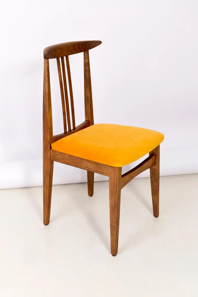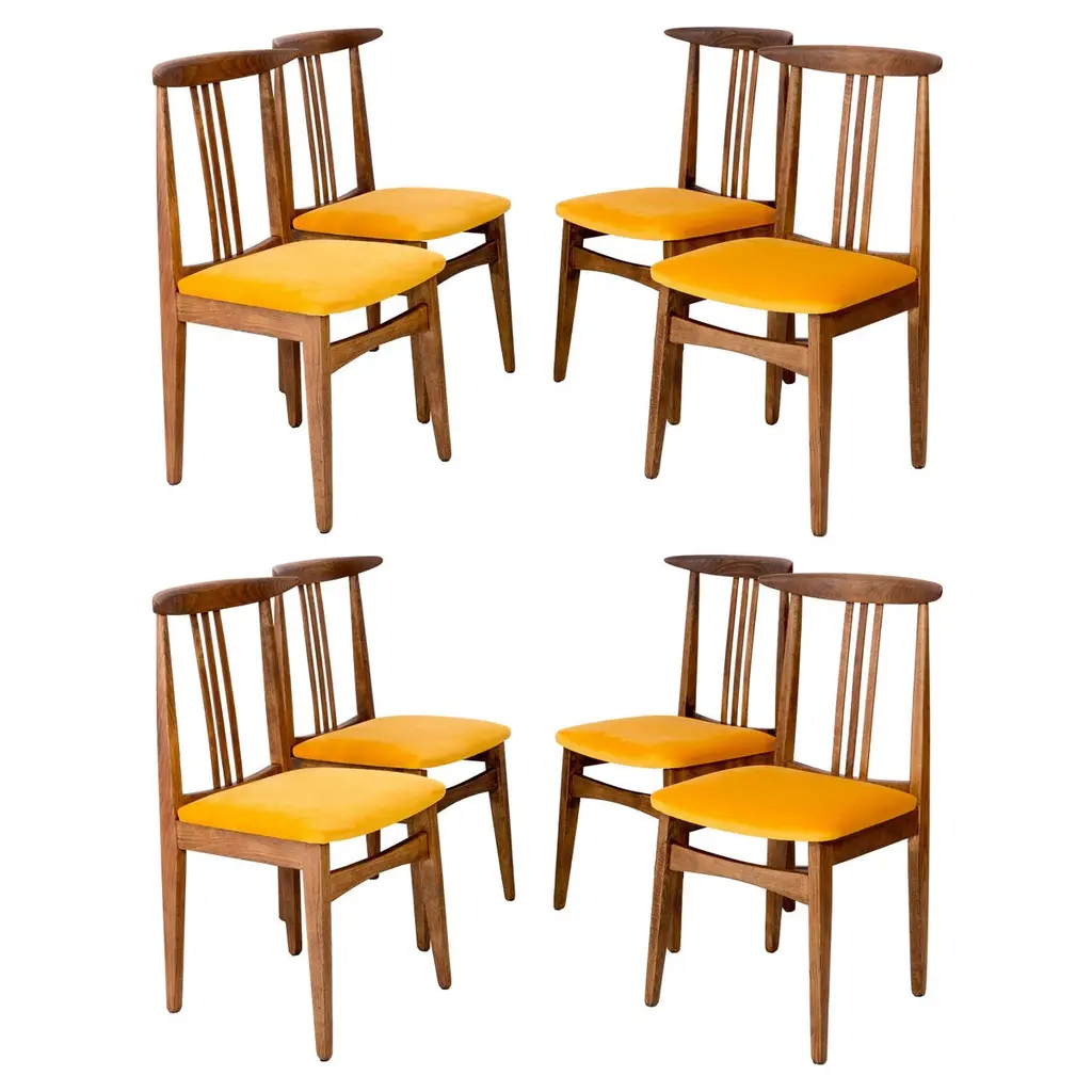 Set of twelve beech chairs designed by M. Zielinski, type 200 / 100B. Manufactured by the Opole Furniture Industry Center at the end of the 1960s in Poland. The chairs have undergone a complete carpentry and upholstery renovation. Seats covered with high-quality yellow velvet (color 2212). If you want this set in another wood or fabric color please check the last picture. We can prepare also smaller and bigger sets.