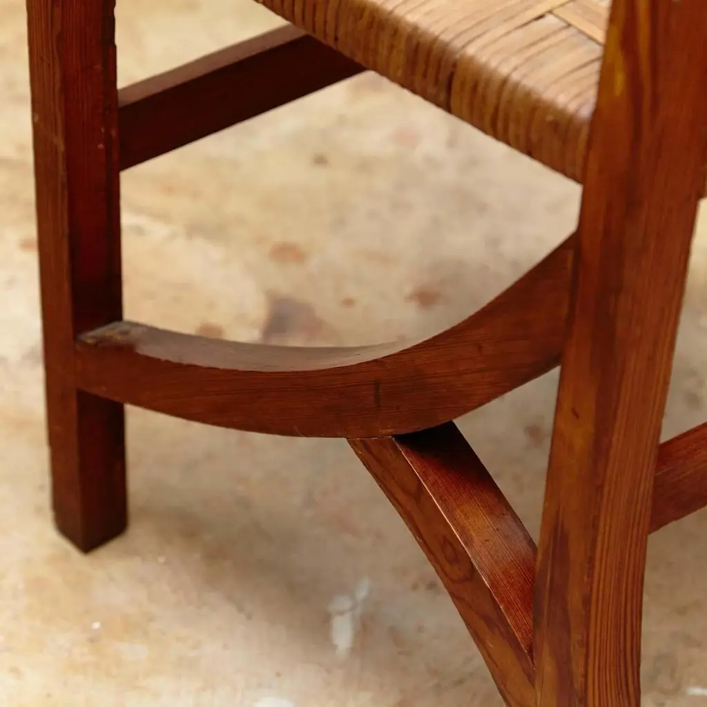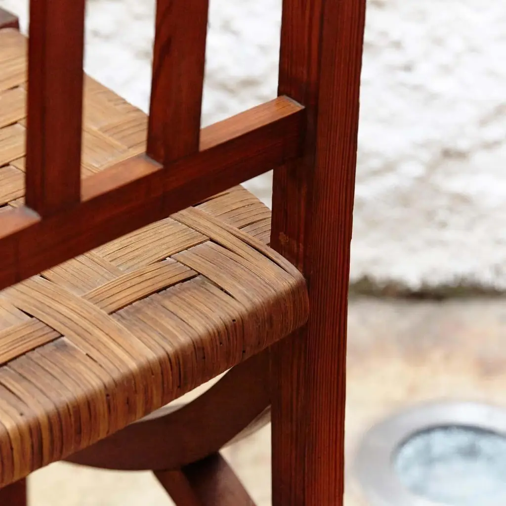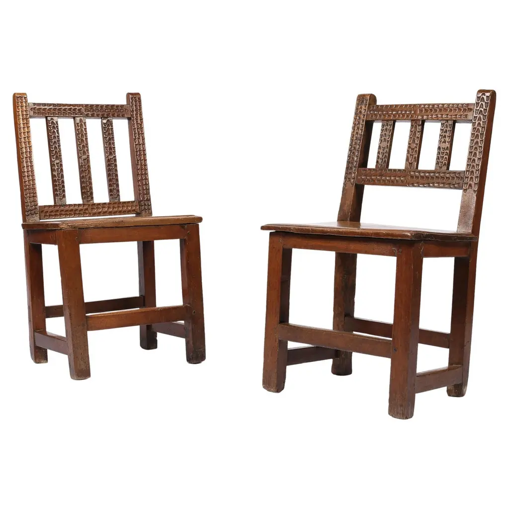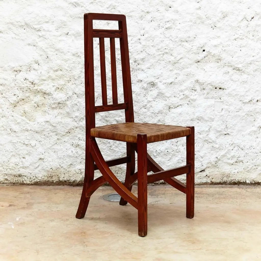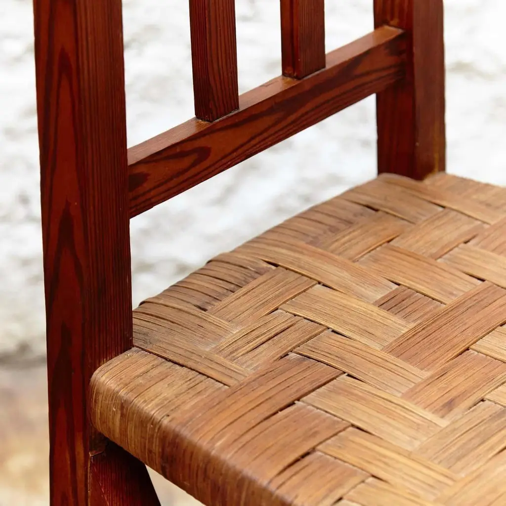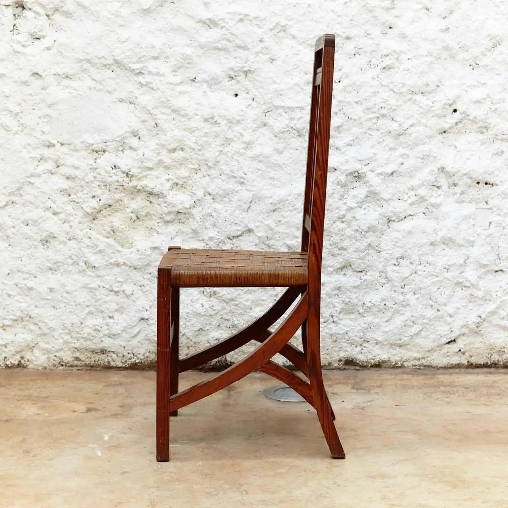 Set of two Arts & Crafts chairs in wood and rattan, circa 1910 By unknown designer and manufacturer. Manufactured in Spain, circa 1910. Wood and rattan. In original condition with minor wear consistent of age and use, preserving a beautiful patina.