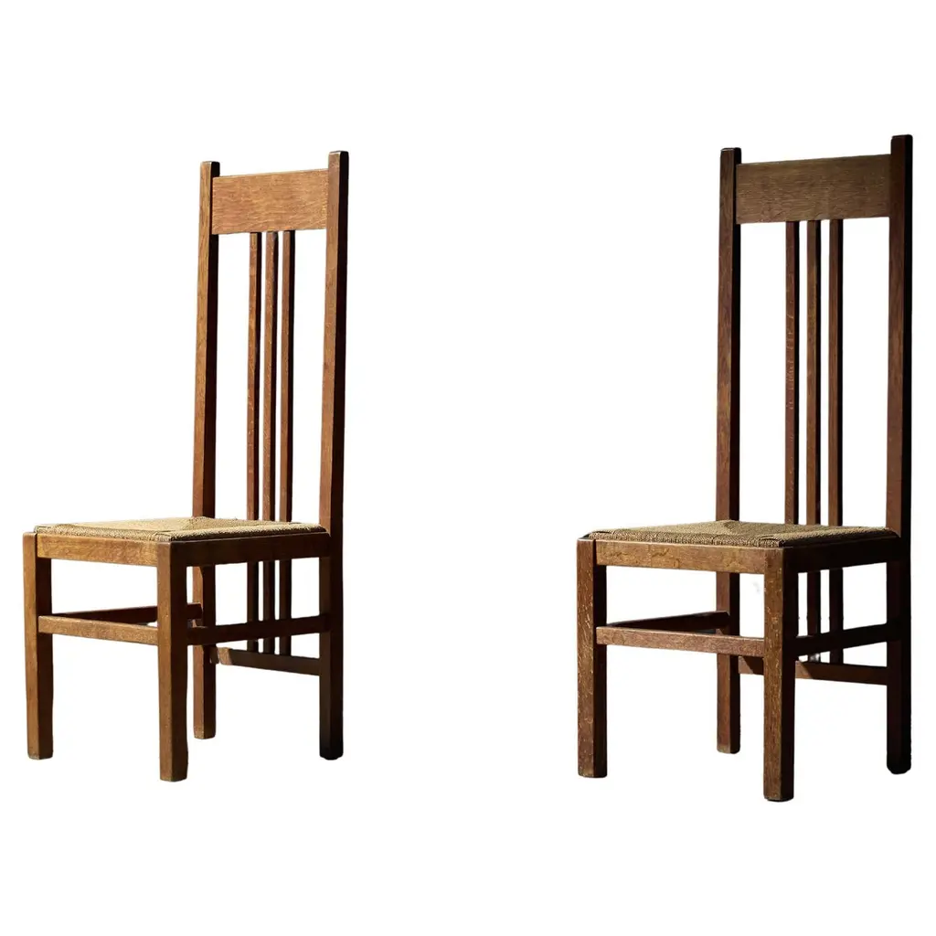 Set Of Two Arts & Crafts Chairs In Wood And Rattan, Circa 1910