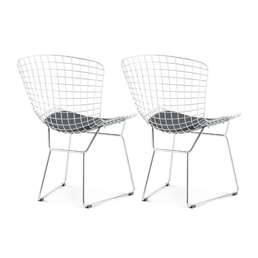 In the 1950s, Harry Bertoia began experimenting with bending metal rods into practical art. This resulted in his now infamous seating collection, including his wire chair. The Bertoia Side Chair is a high-quality reproduction of Bertoia's original design in 1952, offered at a price that makes it an affordable addition to your home.One of the most intriguing things about the Bertoia Side Chair is the disparity between its delicate, airy appearance and its actual strength and remarkable durability. This statuesque chair will also surprise you with its comfort. The Bertoia Side Chair makes an excellent addition to any room of your home, with a timeless look that has already proven to have remarkable staying power.