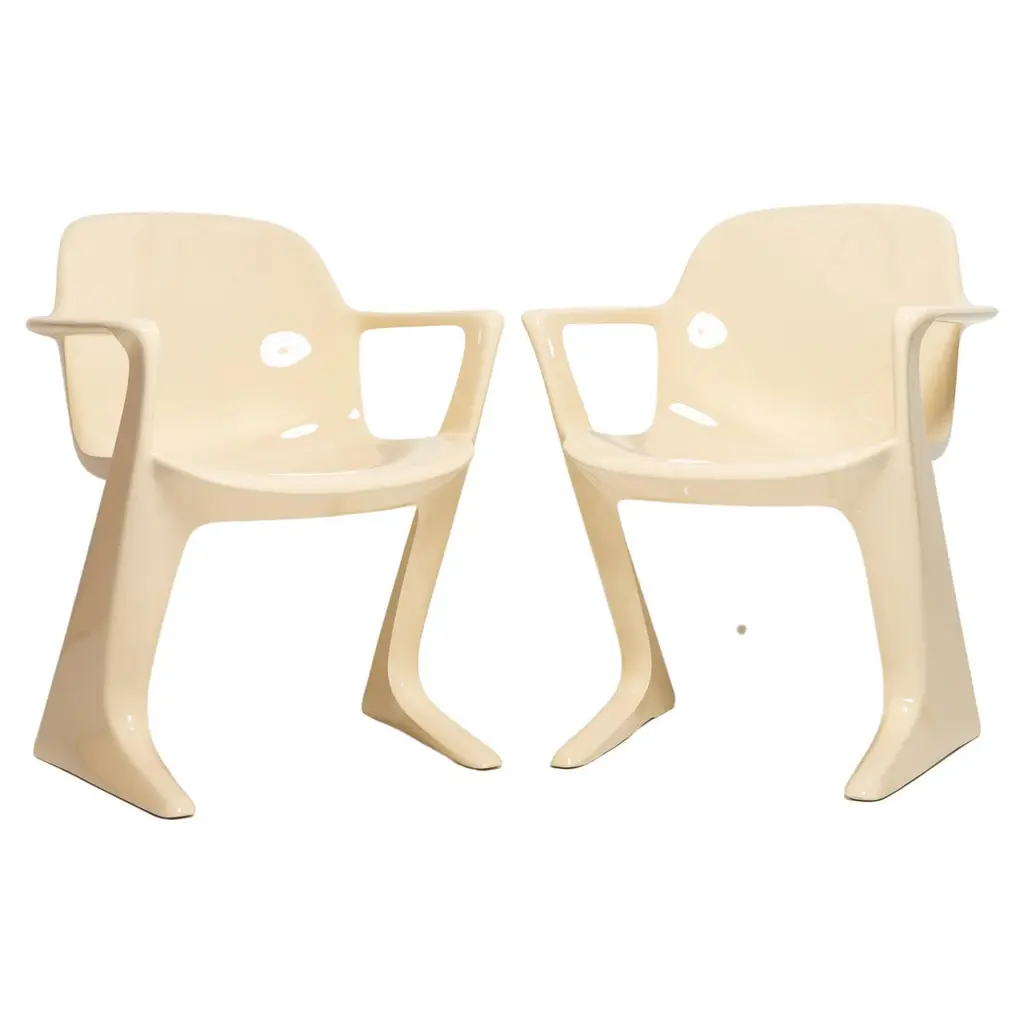 This set is called Z-chair. Designed in 1968 in the GDR by Ernst Moeckl and Siegfried Mehl, German Version of the Panton chair. Also called kangaroo chair or variopur chair. Produced in eastern Germany.Chairs are after full renovation, new matte lacquer. Extremely comfortable! We can prepare also set of 4 or 6 or more, also in another color. Ask for more informations.