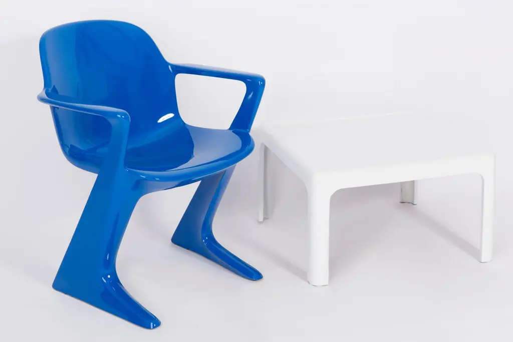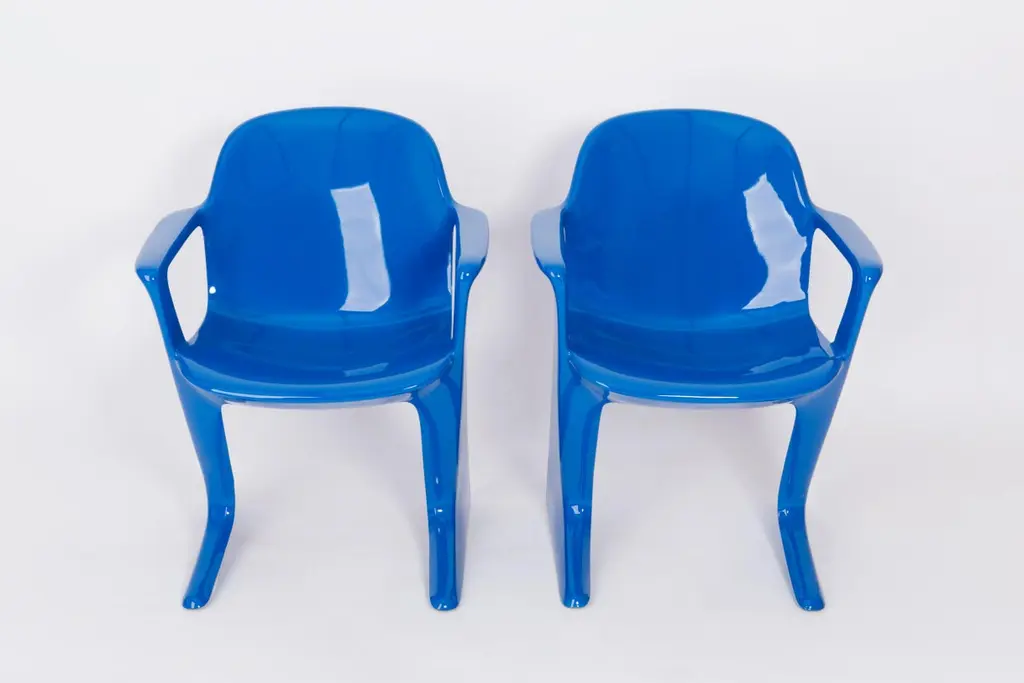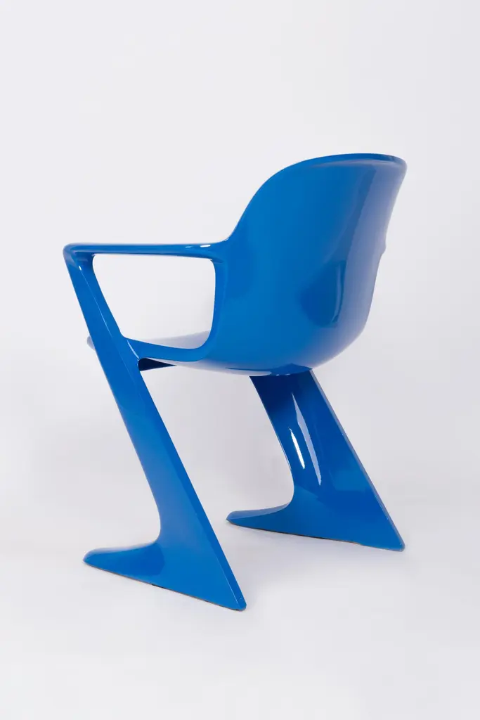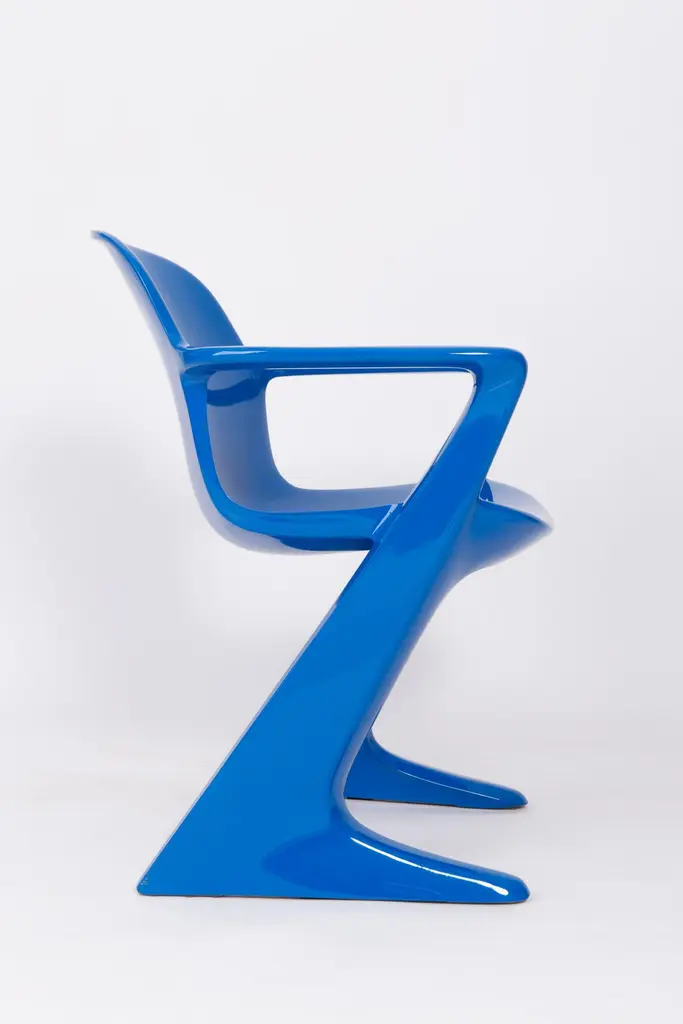 This set is called Z-chair. Designed in 1968 in the GDR by Ernst Moeckl and Siegfried Mehl, German Version of the Panton chair. Also called kangaroo chair or various chair. Produced in eastern Germany.Chairs are after full renovation, new glossy Classic blue lacquer. One of them has been fixed, see on the last pictures. This set is extremely comfortable! We can prepare also set of 4 or 6 or more, also in another color.