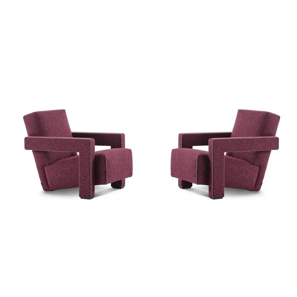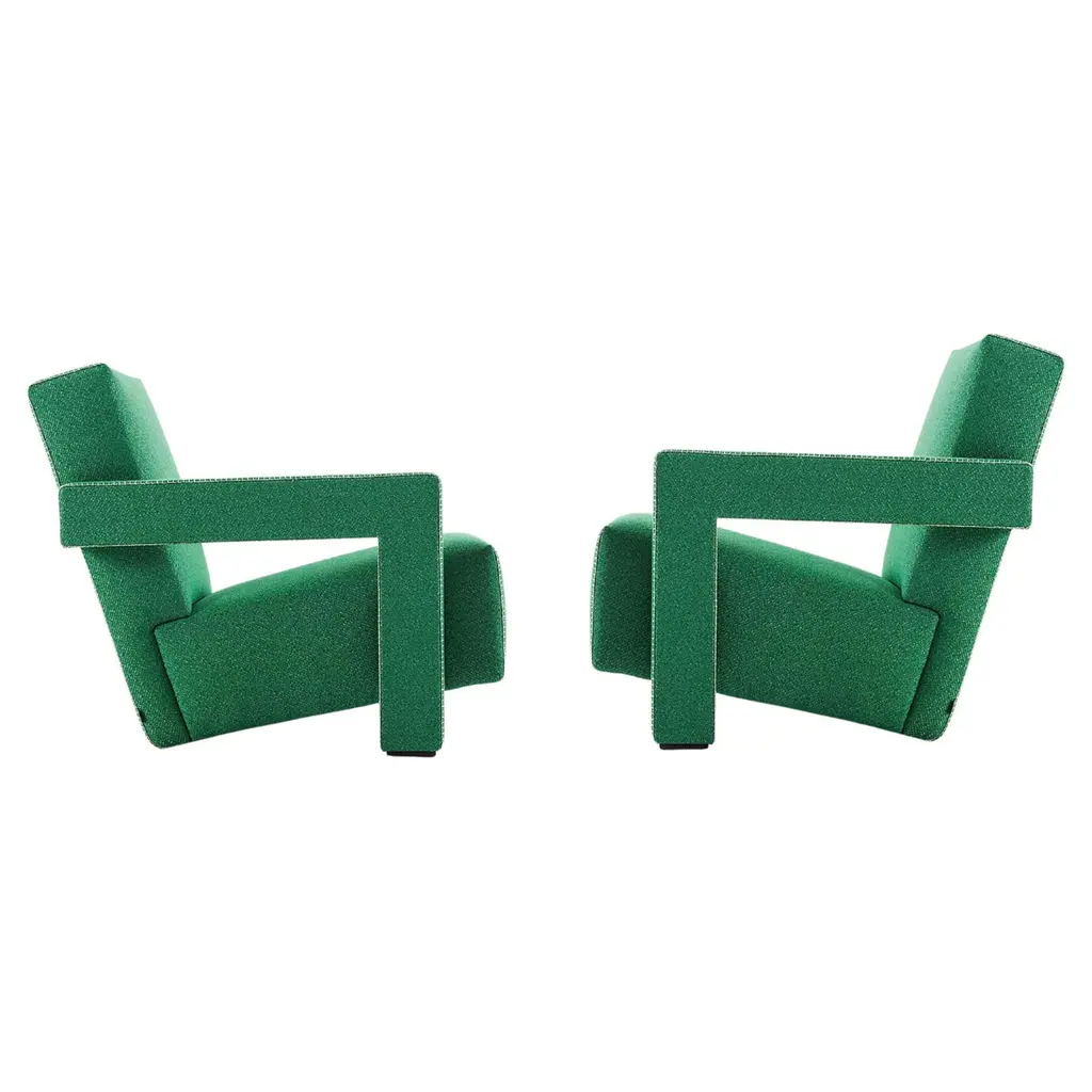 Armchair designed by Gerrit Thomas Rietveld in 1935. Relaunched in 2015.Manufactured by Cassina in Italy.Gerrit T. Rietveld came up with the design for the Utrecht armchair in 1935 while working for the Metz & Co. department store in Amsterdam, where his brief was to make a chair for serial production. Taking market needs into account, while privileging a comfortable and relaxing experience, led to the elements of the chair being treated as separate units. As a consequence, the chair became an icon of both the Neoplastic movement, and of Rietveld’s experimental vision.Combining experimentation and comfort, Gerrit Thomas Rietveld signs this renowned design armchair in 1935 for the Metz & Co department store in Amsterdam.The juxtaposition of right angles ? backrest and seat that meet at the floor and armrests that morph into support pieces ? are hallmark features of the Utrecht armchair, which became a symbol of the Neoplastic movement.Important information regarding images of products:Please note that some of the images show other colors and variations of the model, these images are only to present interior design proposals. The item that is selling is on the first image. Important information regarding color(s) of products:Actual colors may vary. This is due to the fact that every computer monitor, laptop, tablet and phone screen has a different capability to display colors and that everyone sees these colors differently. We try to edit our photos to show all of our products as life-like as possible, but please understand the actual color may vary slightly from your monitorAbout the designer:Gerrit Thomas Rietveld (24 June 1888–25 June 1964) was a Dutch furniture designer and architect. One of the principal members of the Dutch artistic movement called De Stijl, Rietveld is famous for his red and blue chair and for the Rietveld Schro¨der House, which is a UNESCO World Heritage site.In 1934 Rietveld designed a first series of crate furniture, consisting of an armchair, a small bookcase and a small table. These were items for which the appearance was largely dictated by the application of standard lumber size planks for different parts of the furniture. The choice of using standardized Industrial products was motivated by Rietveld’s aim to make furniture production more efficient. The furniture is almost completely built from firewood planks with a width of, circa 15 cm. A constantly recurring, distinctive wide chink is left between the planks. Dry joints connect the components with brass screws, which are left visible. At this time this type of wood and construction method was used for packing crates, hence the name of the series.The radically simple crate furniture was heavily criticized by some contemporaries, because of the lack of traditional workmanship. Rietveld defended his designs by saying that traditionally produced furniture was transported in crates to avoid being damaged. It was obvious to him that the packing material was stronger, and therefore better, than its content. After 1935 much more crate furniture followed, including various chairs, tables and stools. After producing them in his own name for a while, the crate furniture was sold by Metz and Co. under the name ‘weekend furniture.’ Because of the simple appearance and the relatively low price they were most suitable for holiday homes.About the manufacturer:In a continuing dialogue between past, present, and future, Cassina has created the I Maestri collection, revisiting furnishing designs by the twentieth century’s best-known architects, including Le Corbusier, Pierre Jeanneret, Charlotte Perriand, Charles Rennie Mackintosh, Gerrit Thomas Rietveld, Franco Albini, Frank Lloyd Wright and Marco Zanuso. While the designs and functional concepts have been precisely preserved, the models have been manufactured using evolved technology. This is also the company that has manufactured iconic pieces of contemporary design from the 50’s to the present day, ideated by some of the most important international designers. Today Cassina continues to look to the future of design with audacious, passionate curiosity and an open, holistic approach. It affirms its exclusive ability to furnish a home’s living and dining spaces completely and iconically with The Cassina Perspective: a concept, a philosophy, an informed, futuristic thought. A detailed, expansive horizon of combinations; when placed together, the products have an innovative soul and the modern icons create authentic, welcoming, personal atmospheres involved in a conversation dominated by a code of design excellence, formal sensitive awareness, solidity and cultural authority.