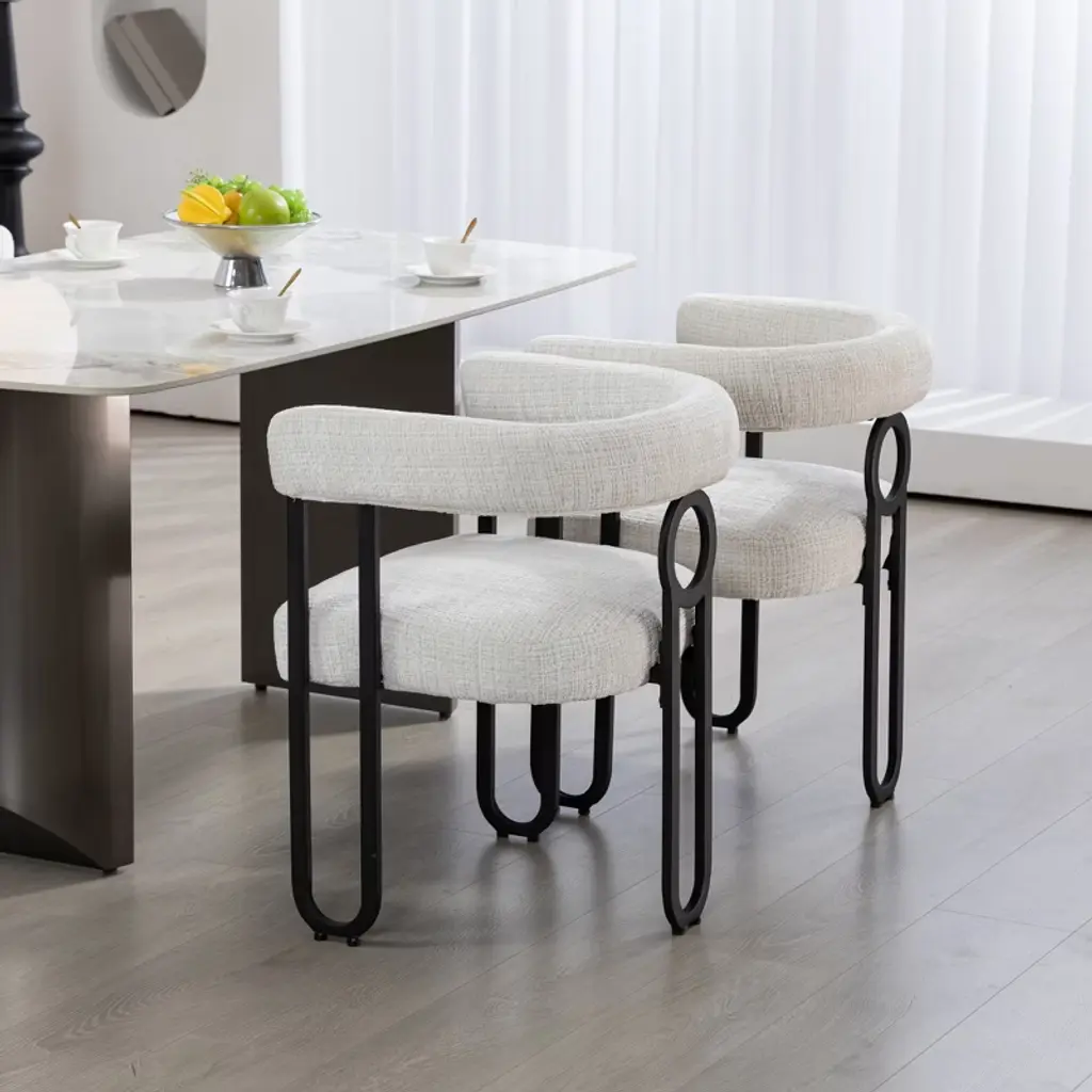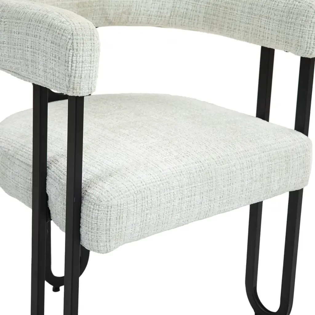 Add a touch of modern elegance to your dining area with this stunning chenille fabric upholstered dining chair. Featuring a unique open-back design, this chair blends style and comfort seamlessly. The open-back design not only provides an airy, sophisticated look but also enhances breathability, making it a perfect choice for long dining sessions. The chair is supported by sleek black metal legs that offer sturdy and reliable support, ensuring stability and durability. The legs’ minimalist design complements the luxurious texture of the chenille fabric, creating a chic contrast that fits into a variety of interior styles, from contemporary to classic. Sink into the thick, plush cushion that provides a comfortable seating experience. The high-quality chenille fabric upholstery adds a soft, tactile feel, inviting you to relax and enjoy your meals in comfort. Whether used in a dining room, kitchen, or as an accent chair in any space, this chair is sure to become a stylish and functional addition to your home.